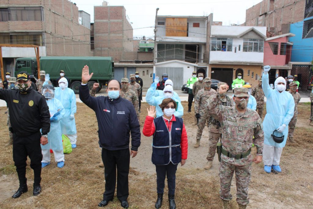 En San Juan de Lurigancho, el ministro de Defensa, Walter Martos Ruiz, y el alcalde Alex Gonzáles supervisaron la operación en el asentamiento Humano UPIS Huáscar, donde se tomó la prueba de descarte a 413 personas, de los cuales, 210 resultaron positivas al coronavirus, más del 50%.