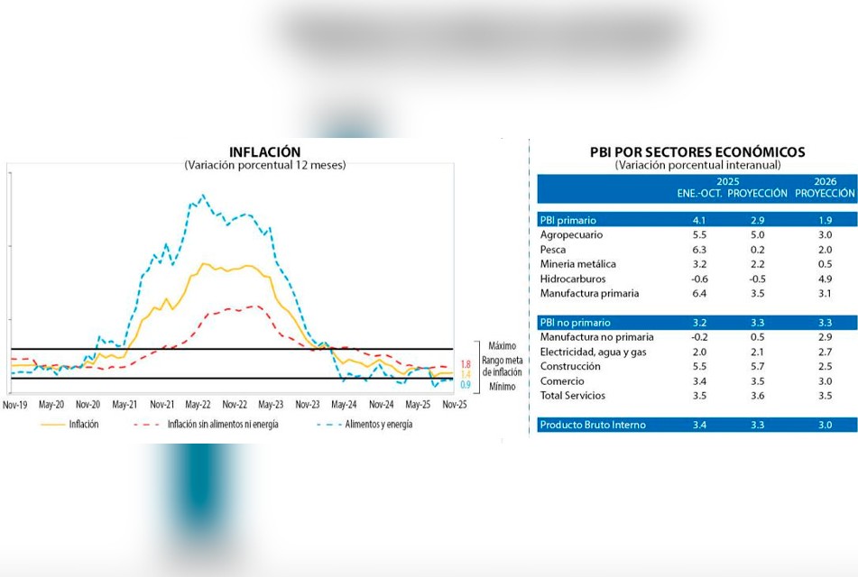 Lima, 26 de diciembre de 2025.- La economía peruana inició 2025 con expectativas de crecimiento del 3% e incluso cifras menores para los analistas más prudentes. Sin embargo, a octubre, último dato disponible del año, el PBI ha alcanzado una tasa interanual de 3.7%, lo que obligó a revisar al alza todas las previsiones. Todo esto ocurre a pesar de que la crisis de inseguridad tensionó el escenario político, derivando en la destitución de Dina Boluarte y llevando al Perú a sumar su séptimo presidente en apenas nueve años.