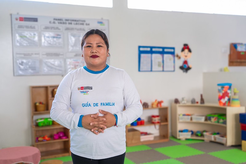 Vanessa Medina es guía de familia desde hace 10 años en el comité de gestión “Vaso de leche G4” en Villa El Salvador y su mayor satisfacción es contribuir en el desarrollo infantil temprano de los niños. “Me ha ayudado mucho los conocimientos adquiridos y esta información poder compartirla con las familias usuarias, llevar ese conocimiento para que ellas puedan practicar en casa hábitos saludables. Mi mayor satisfacción es ver a los niños que cumplen los 36 meses salir sanos y fuertes, con un buen peso, talla y sin anemia”.