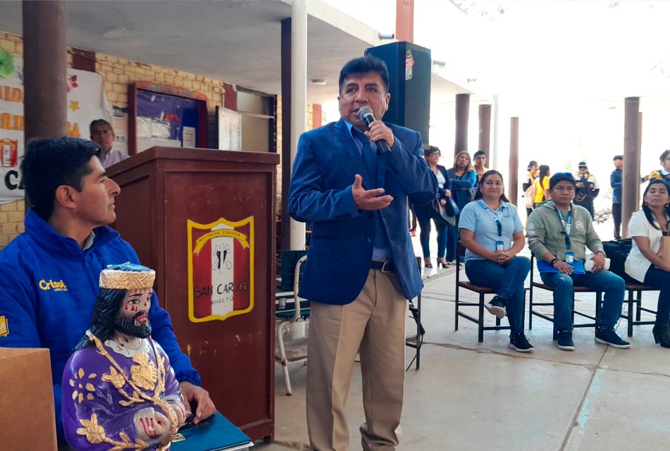 Chiclayo, 03 de octubre de 2025.- En el marco de los 63 años de creación de la I.E. San Carlos de Monsefú, en Chiclayo, región Lambayeque, se realizó el reconocimiento del docente de Comunicación, Miguel Ángel Capuñay Gonzales como el Mejor Maestro Lector de la Biblioteca Digital para Maestros (BDM) Derrama-Crisol.