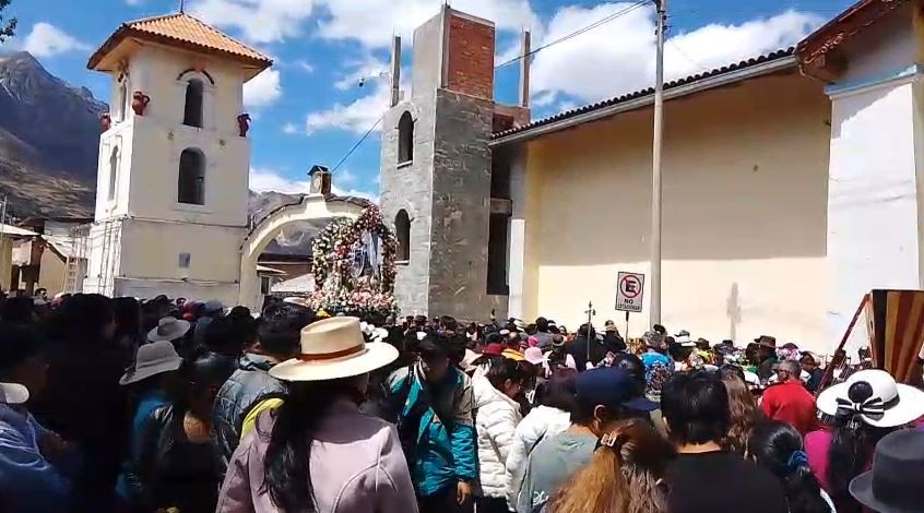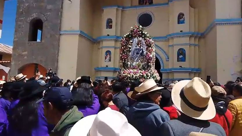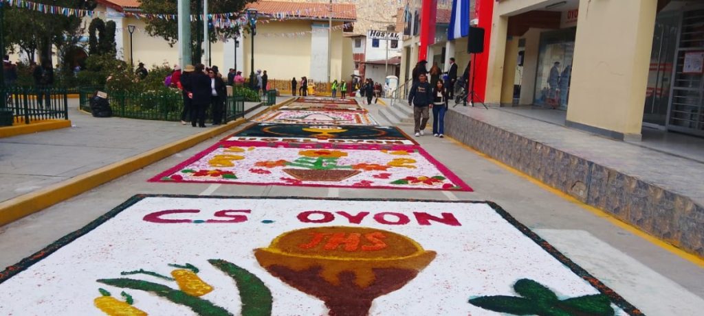 RCR, 16 de agosto de 2021.- En medio del color de las alfombras florales, con cánticos, y mucha fe, la población de la provincia de Oyón participó de la procesión en homenaje a la Santísima Virgen de Asunción, conocida como la Mama Achuquita, patrona de la localidad.