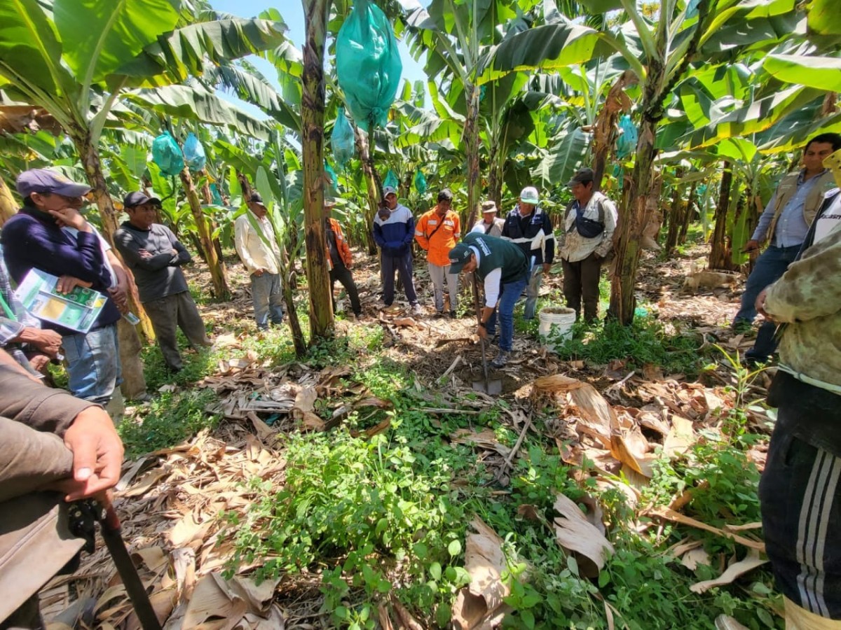 (Piura, 08 de agosto de 2024).- Como parte de la campaña “Perú 2M conoce la fertilidad de tu suelo”, el Instituto Nacional de Innovación Agraria (INIA) del Ministerio de Desarrollo Agrario y Riego (MIDAGRI), ha transferido metodologías y protocolos para un correcto muestreo de suelos, y un adecuado análisis de la calidad del suelo en banano orgánico, dirigido a productores del sector Santa Ana del distrito La Huaca en Piura.