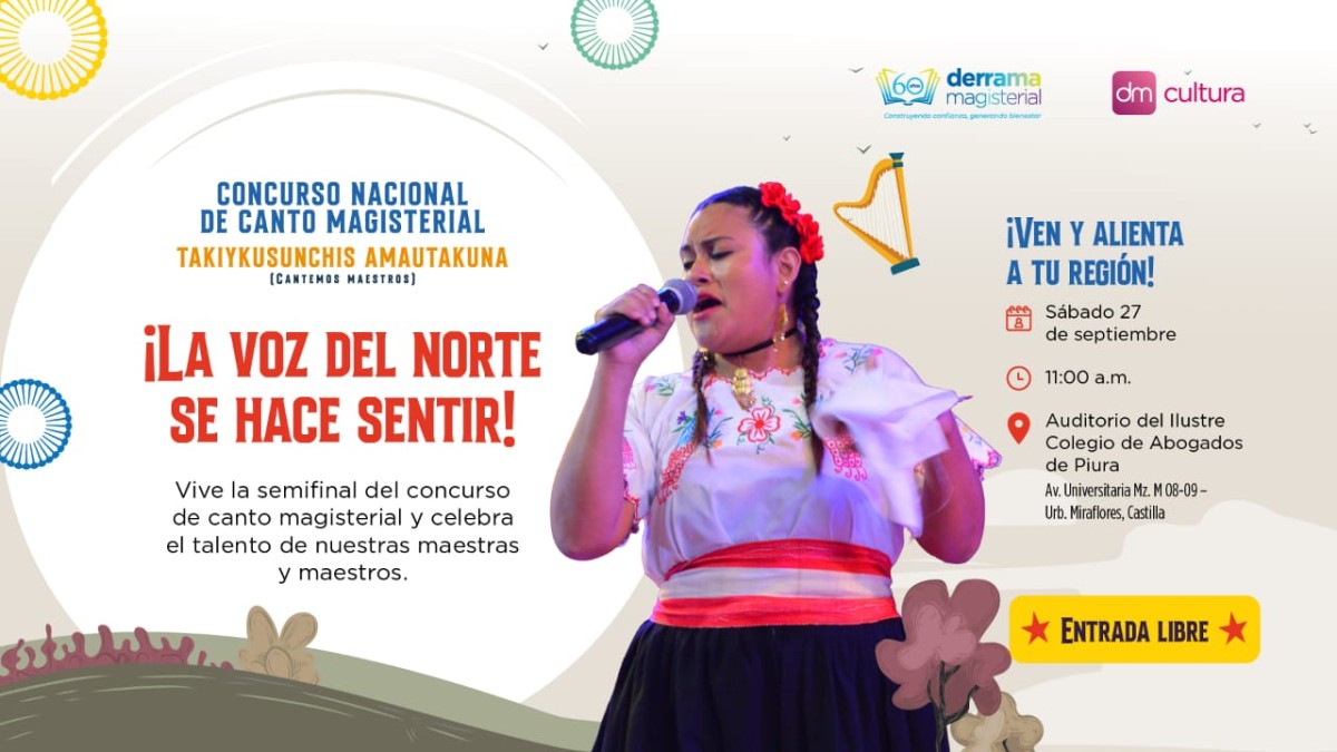 Piura, setiembre de 2025. – La ciudad de Piura se viste de gala para acoger la Primera Semifinal Macrorregional Norte del XII Concurso Nacional de Canto Magisterial “Takiykusunchis Amautakuna – Cantemos Maestros 2025”, organizado por la Derrama Magisterial. Este evento busca reconocer y celebrar el talento artístico de las maestras y maestros del Perú, quienes no solo educan, sino que también enriquecen nuestra cultura a través de la música.
