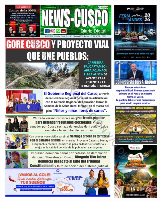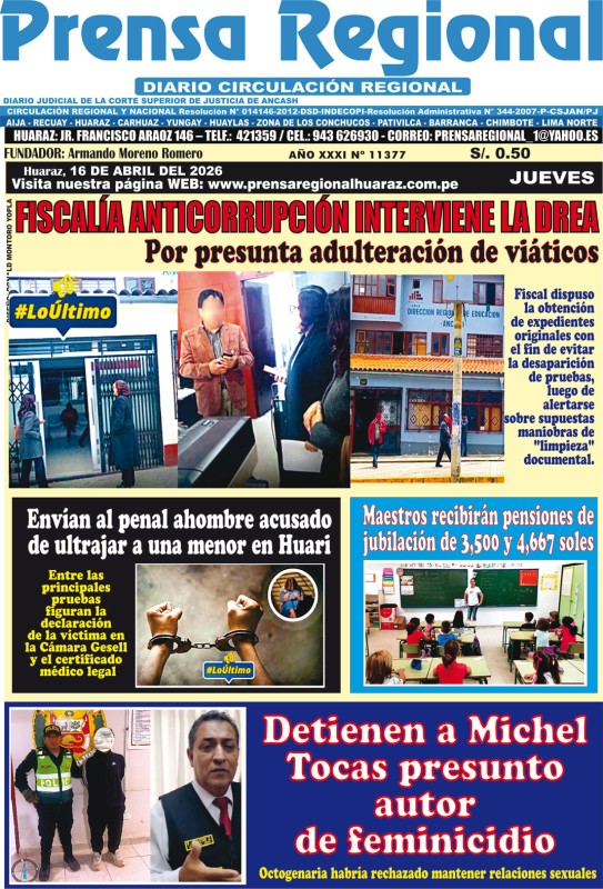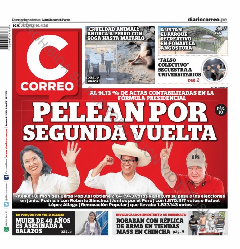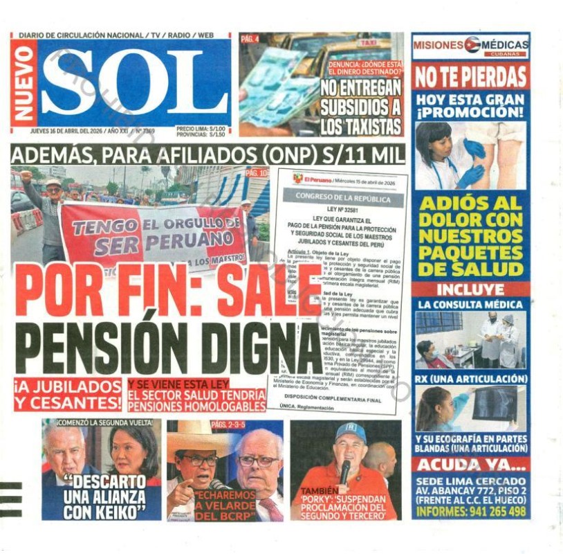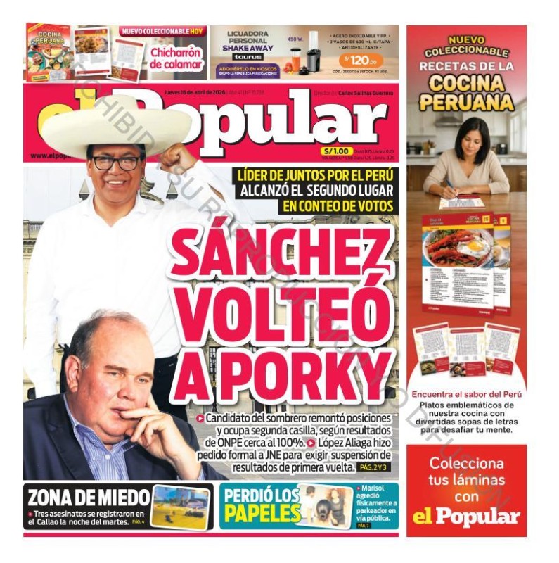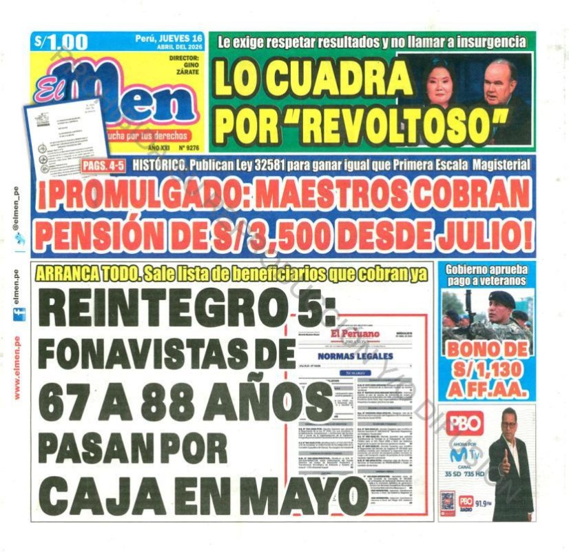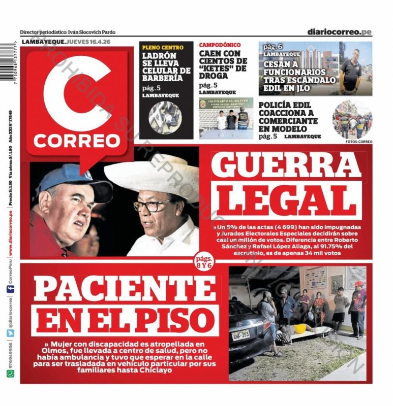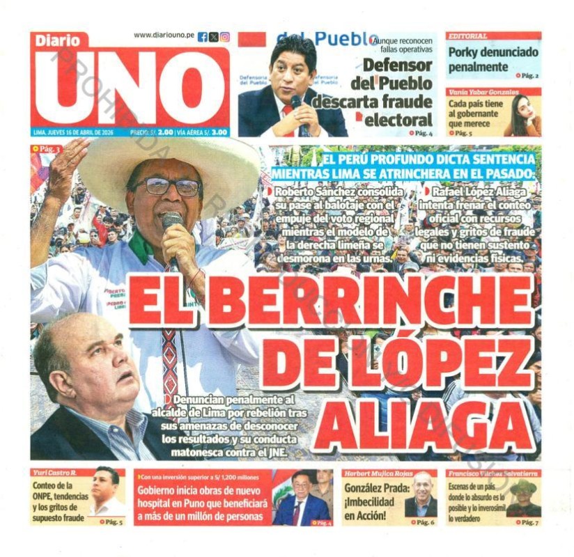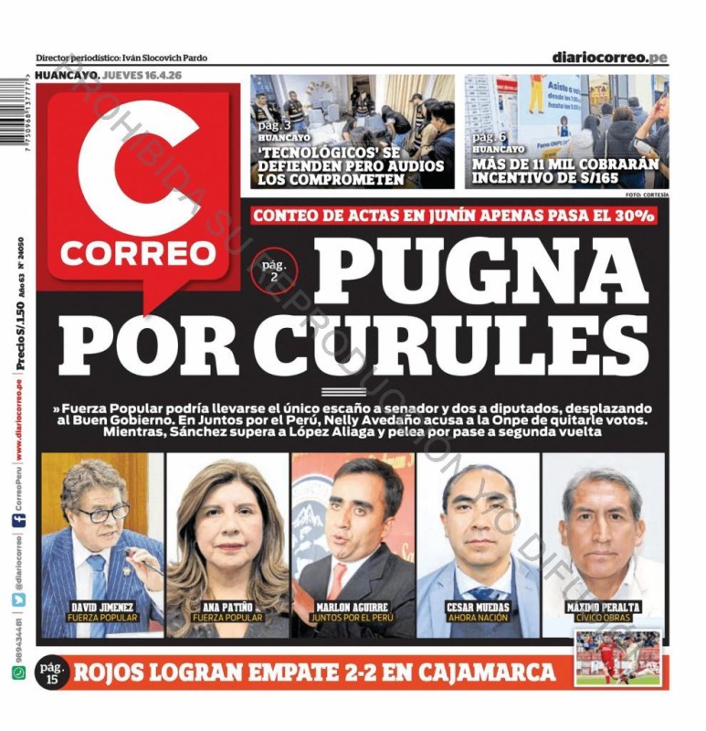 PORTADAS DE PRINCIPALES DIARIOS NACIONALES Y REGIONALES – JUEVES 16 DE ABRIL DE 2026