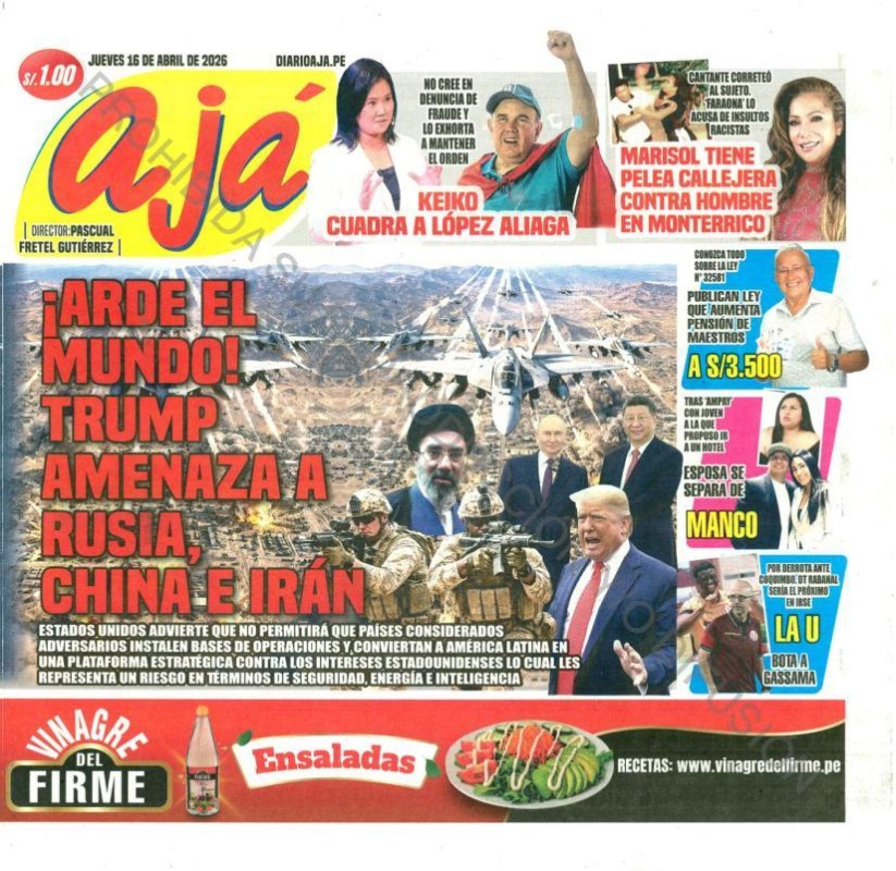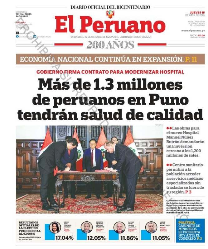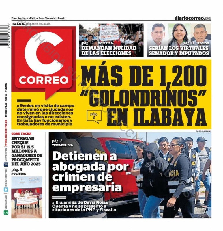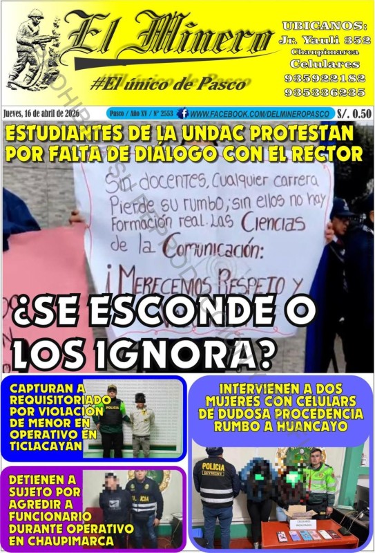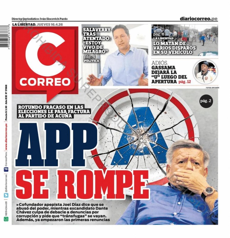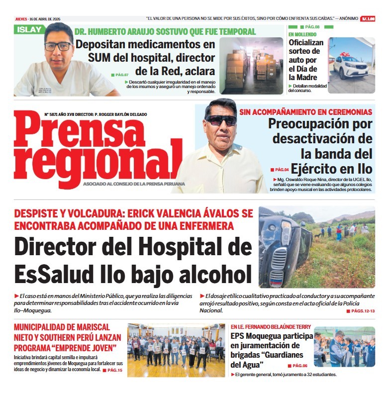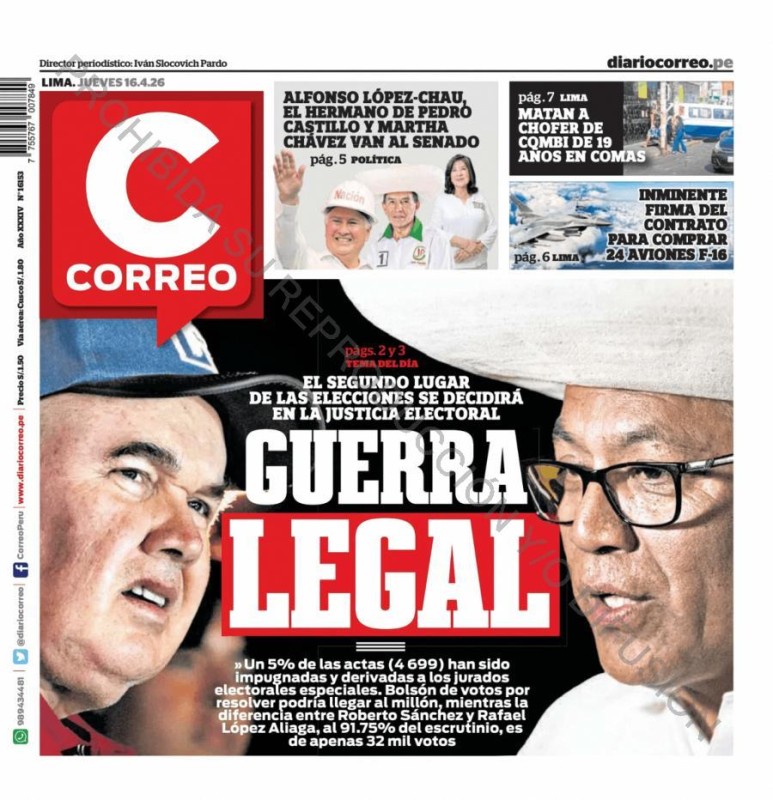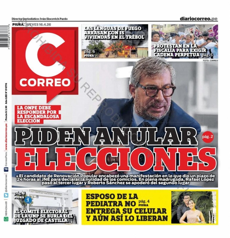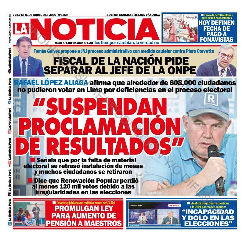PORTADAS DE PRINCIPALES DIARIOS NACIONALES Y REGIONALES – JUEVES 16 DE ABRIL DE 2026