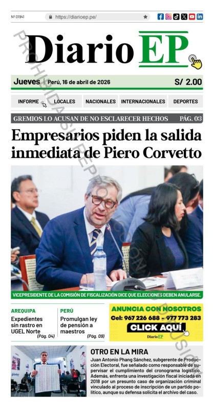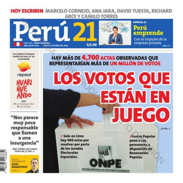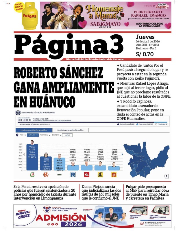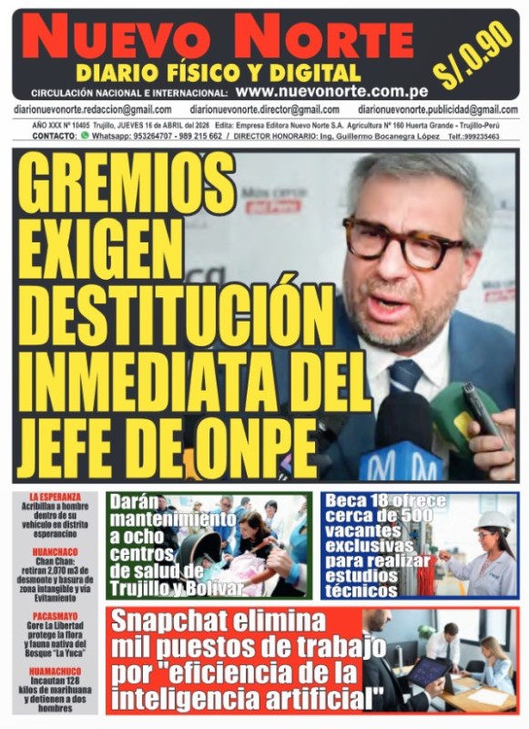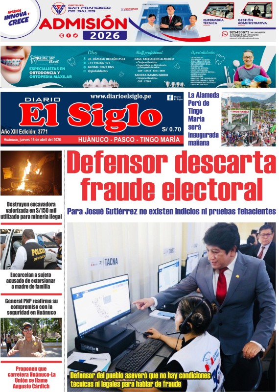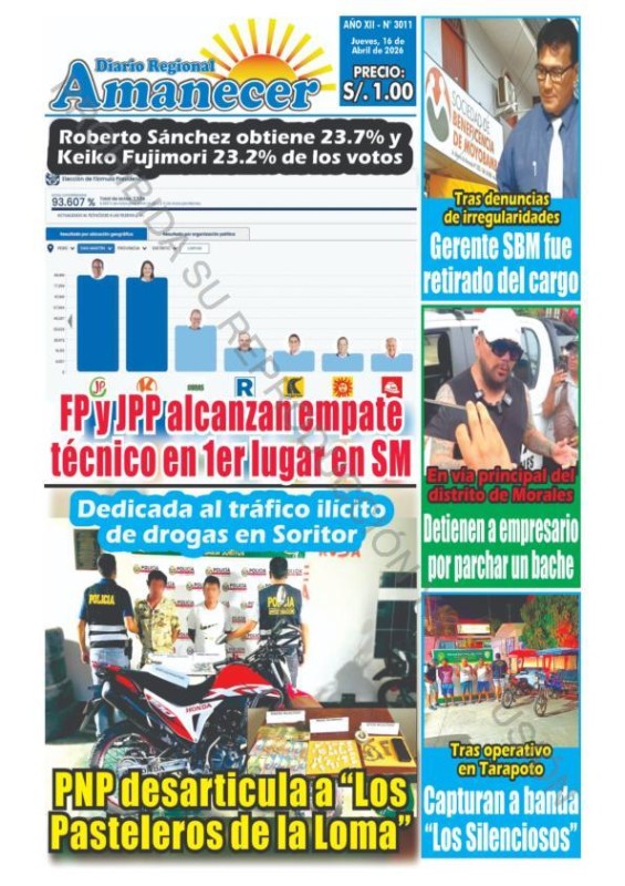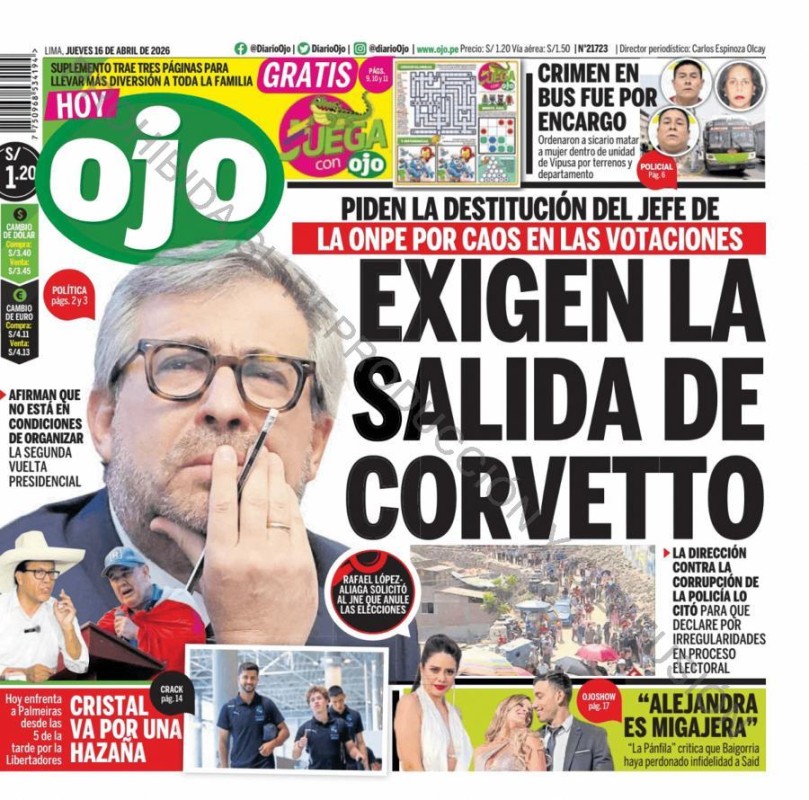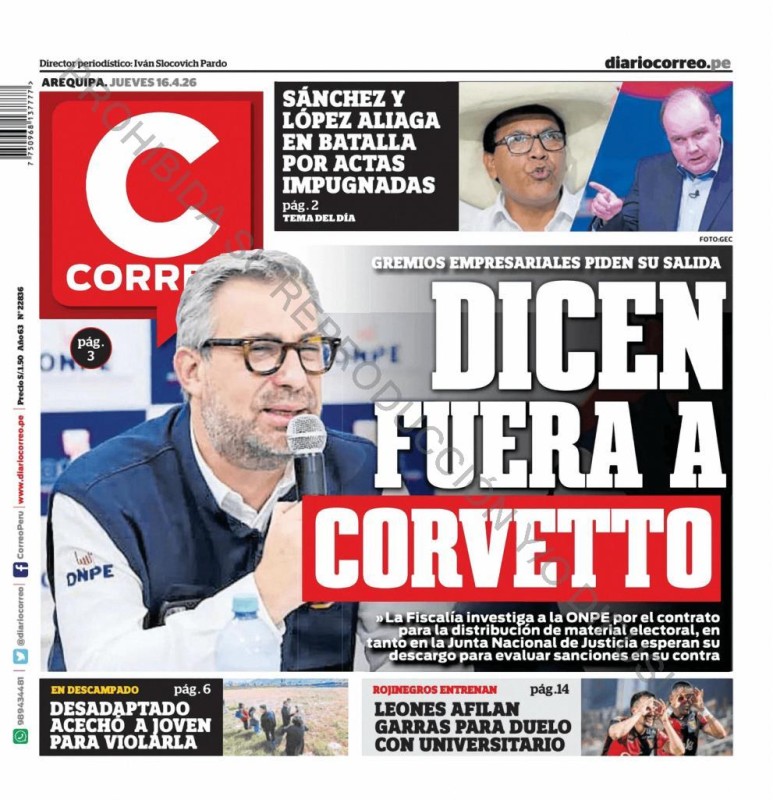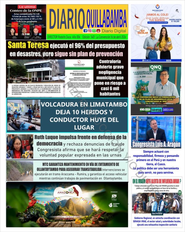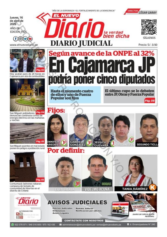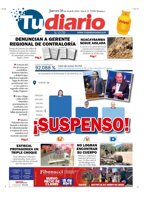 PORTADAS DE PRINCIPALES DIARIOS NACIONALES Y REGIONALES – JUEVES 16 DE ABRIL DE 2026