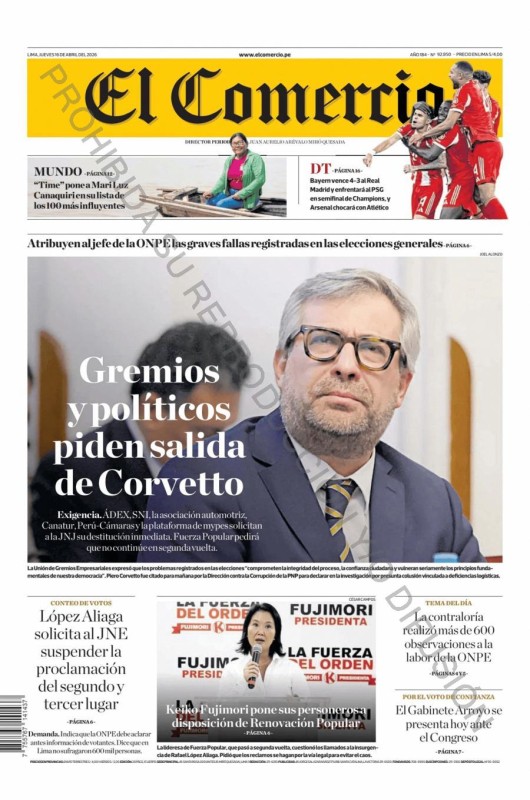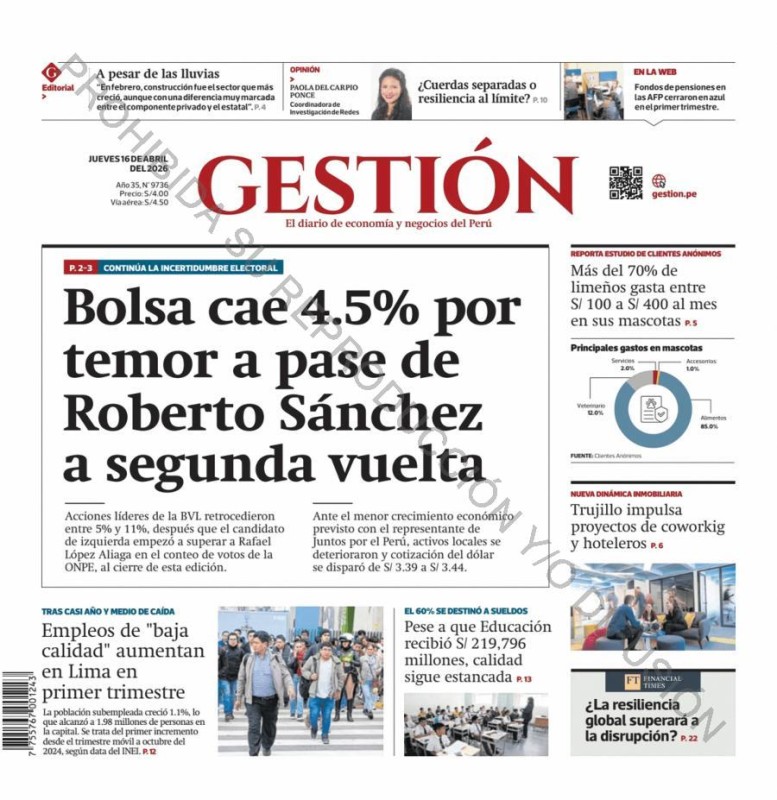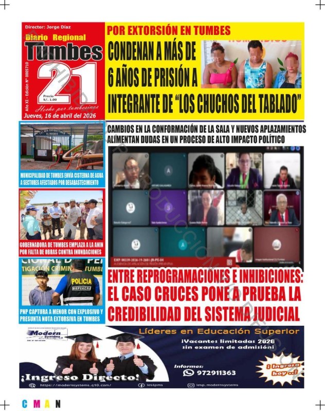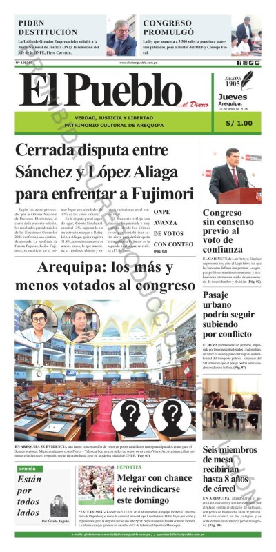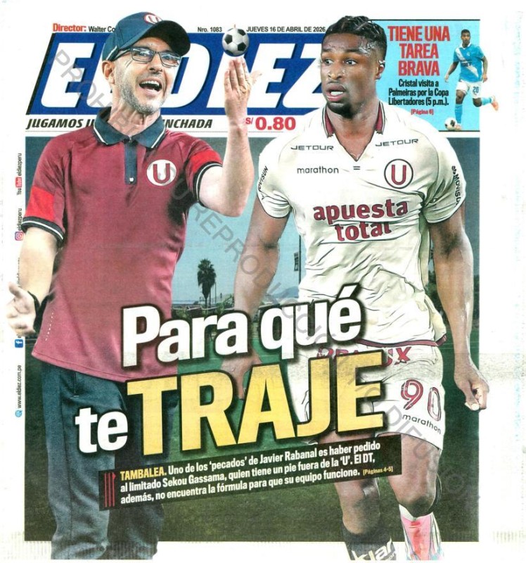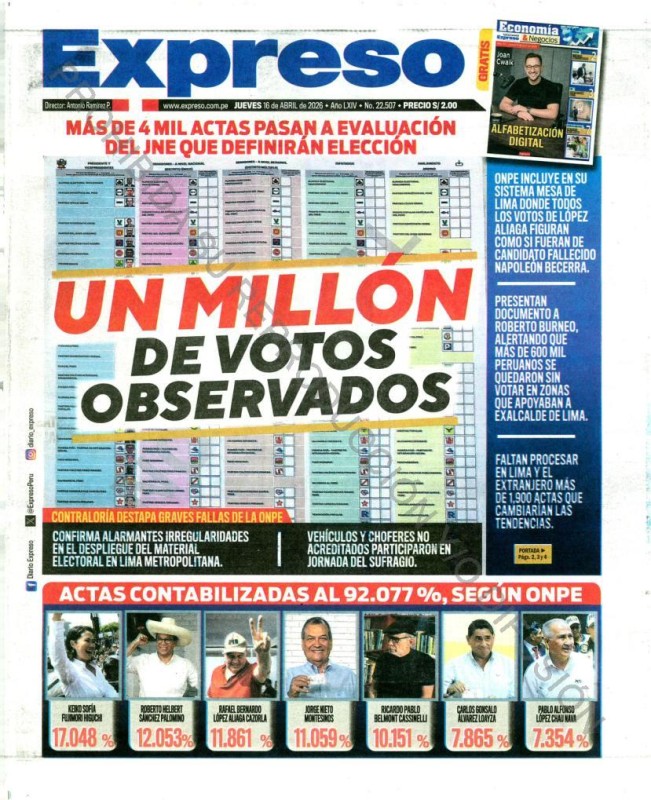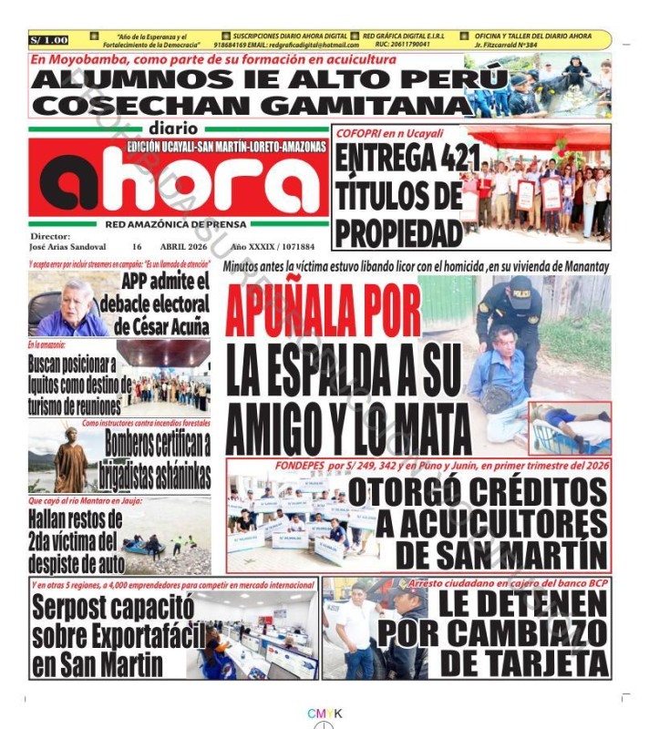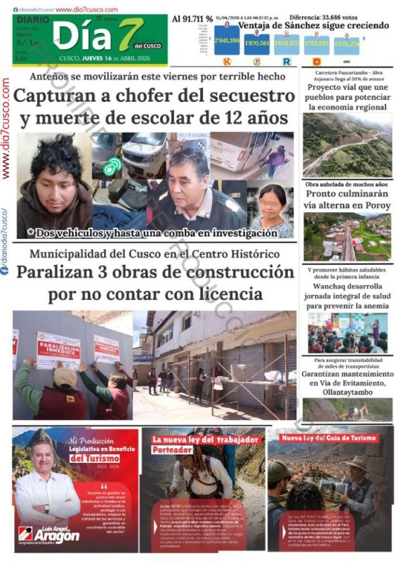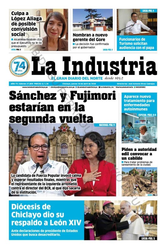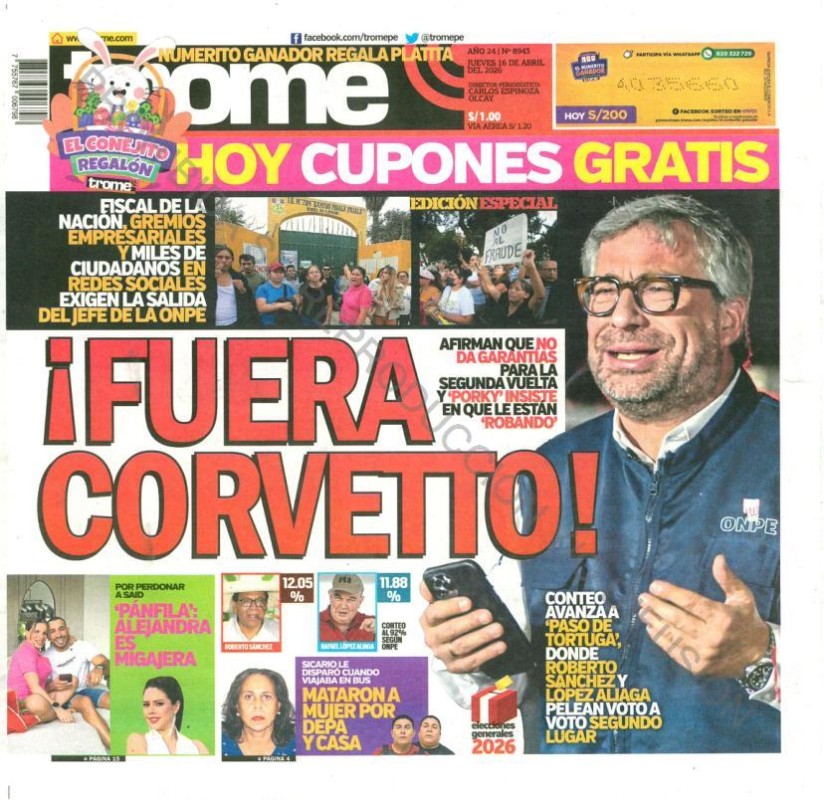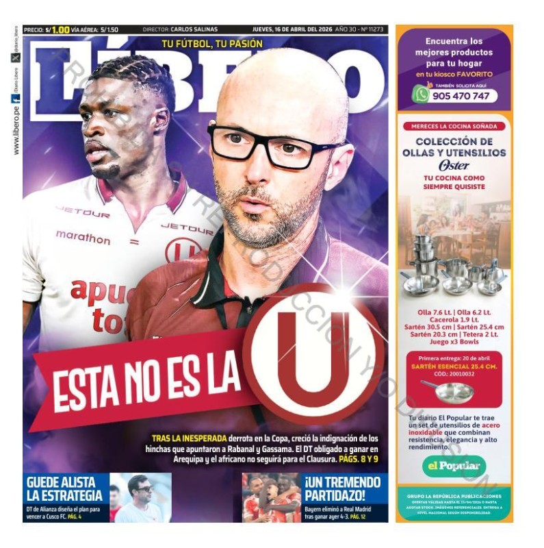PORTADAS DE PRINCIPALES DIARIOS NACIONALES Y REGIONALES – JUEVES 16 DE ABRIL DE 2026