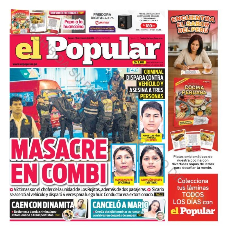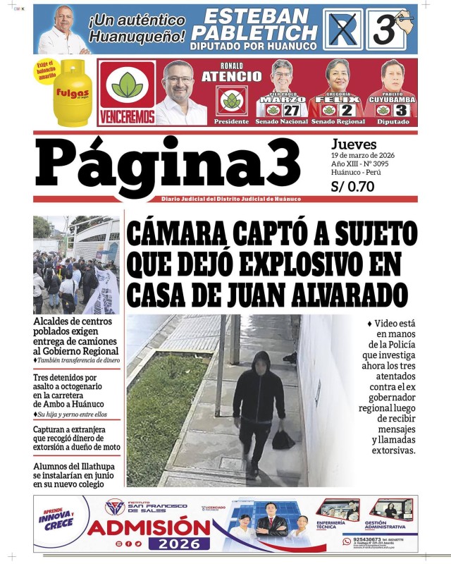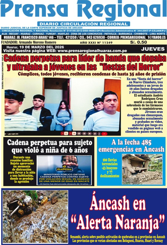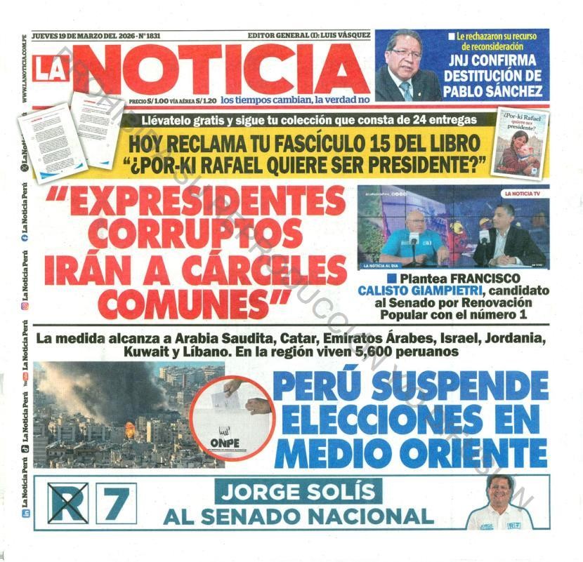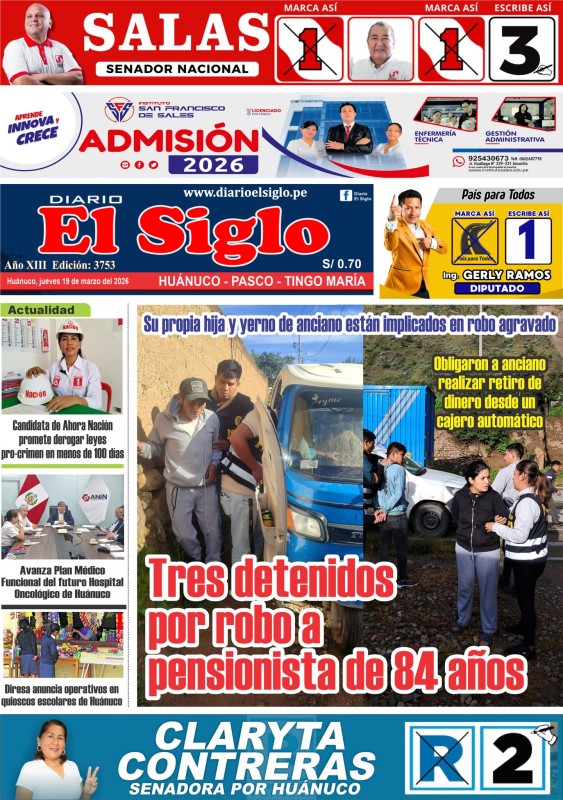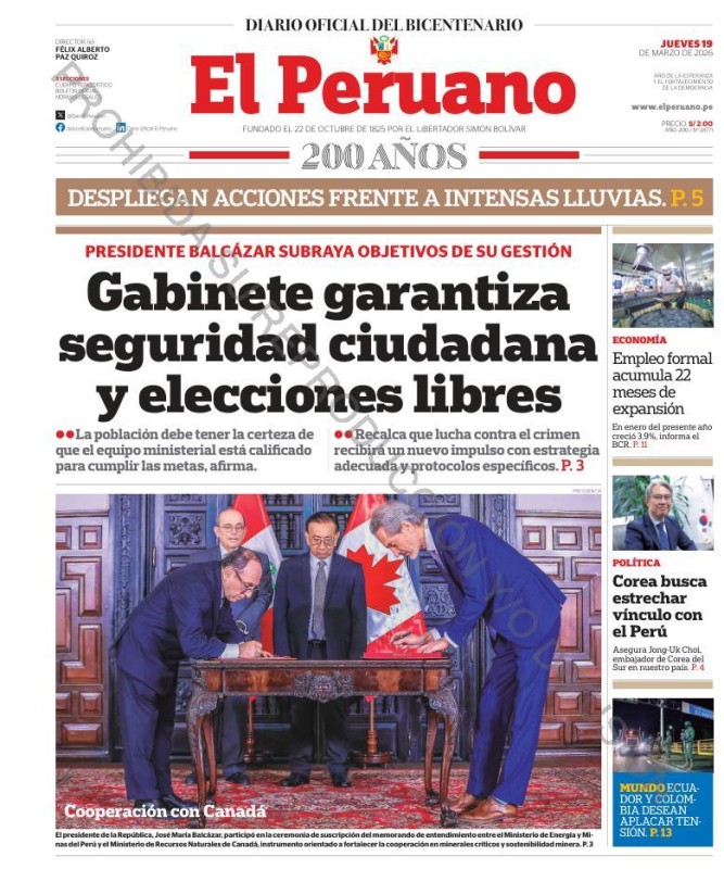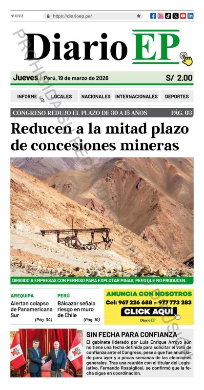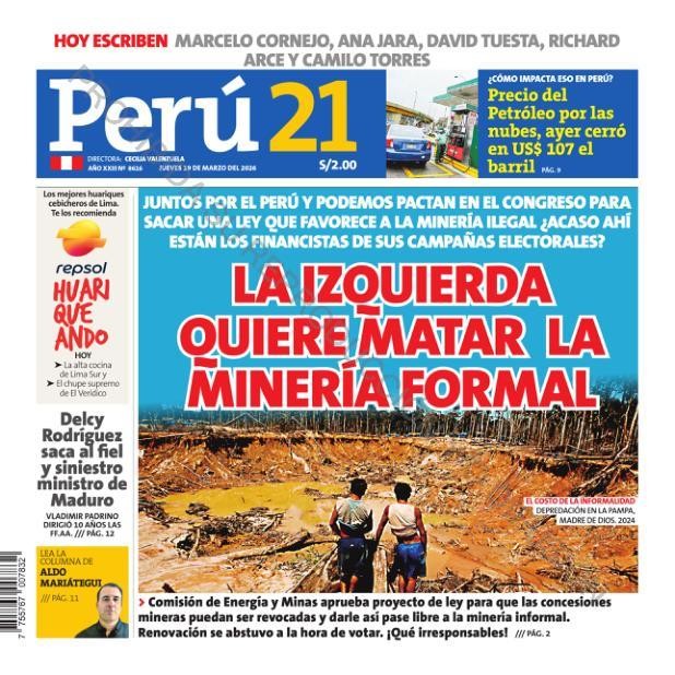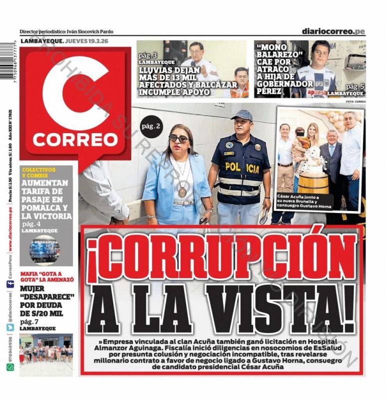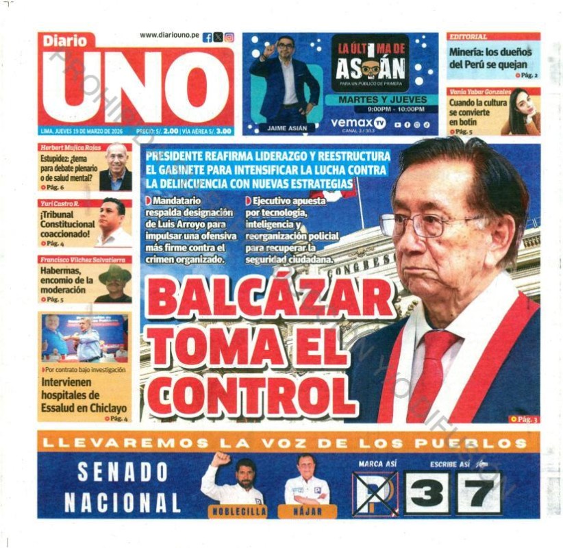 PORTADAS DE PRINCIPALES DIARIOS NACIONALES Y REGIONALES – JUEVES 19 DE MARZO DE 2026