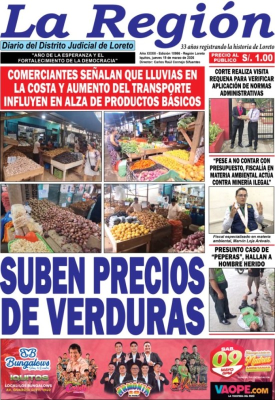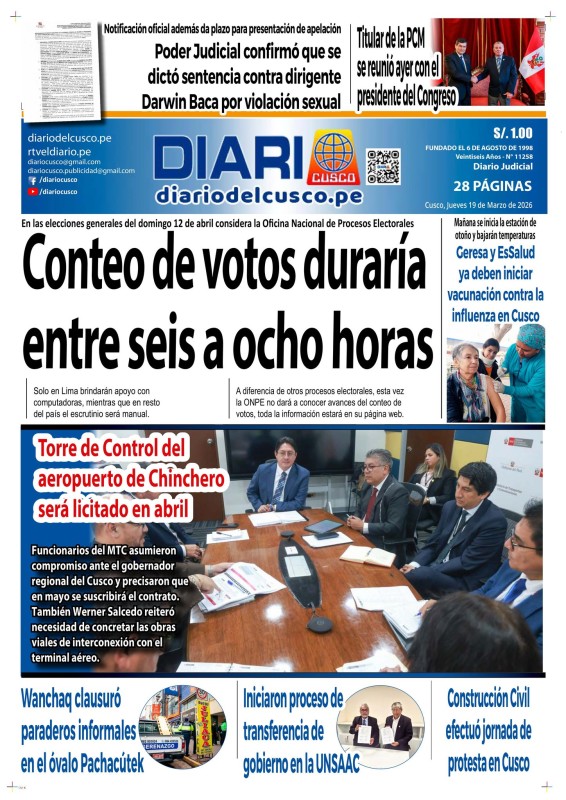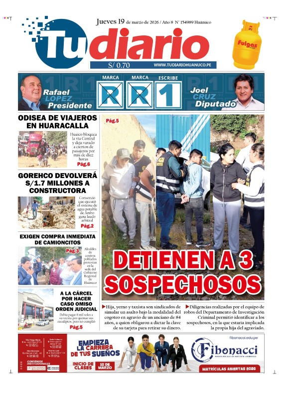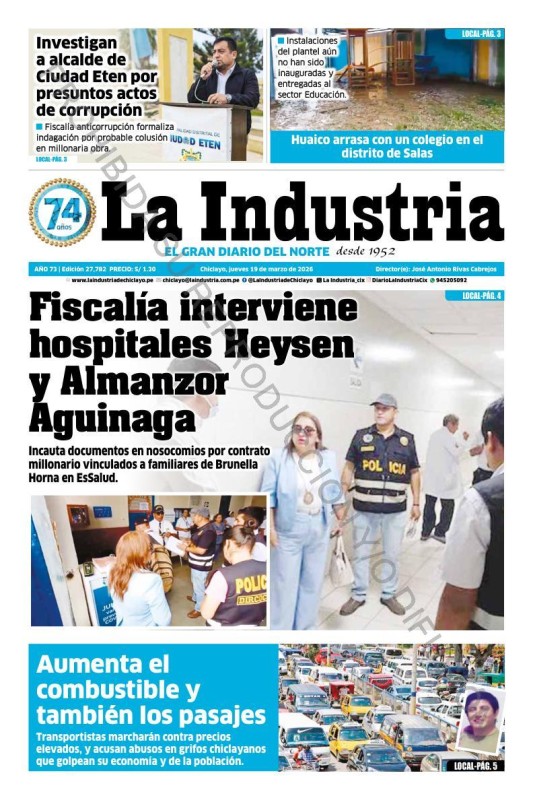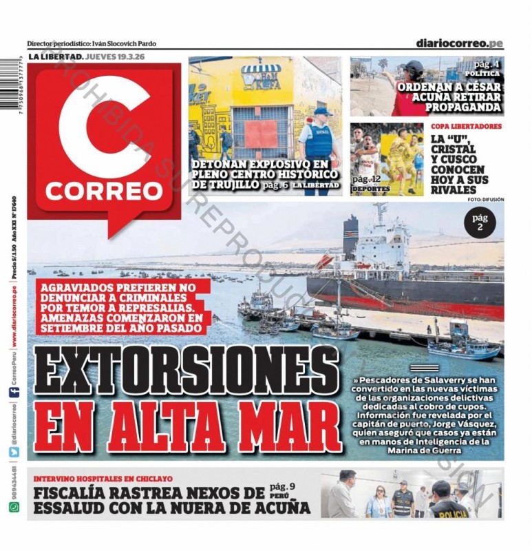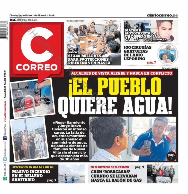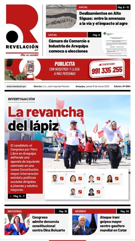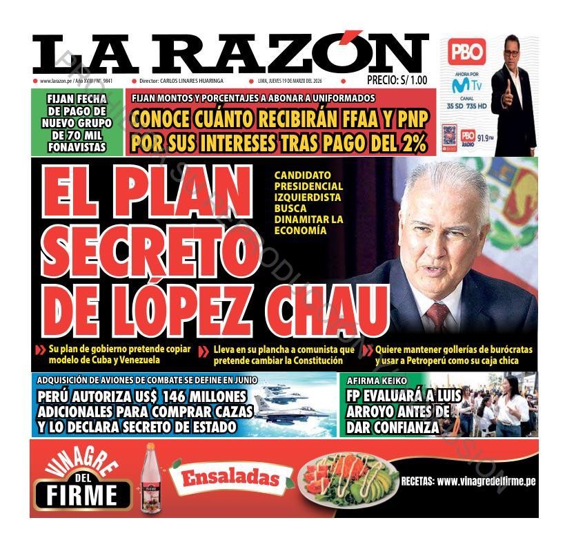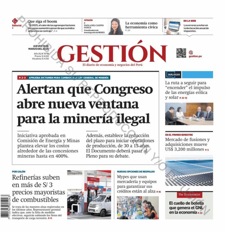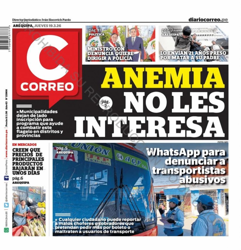 PORTADAS DE PRINCIPALES DIARIOS NACIONALES Y REGIONALES – JUEVES 19 DE MARZO DE 2026