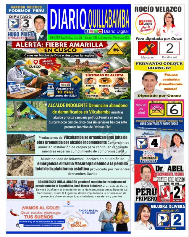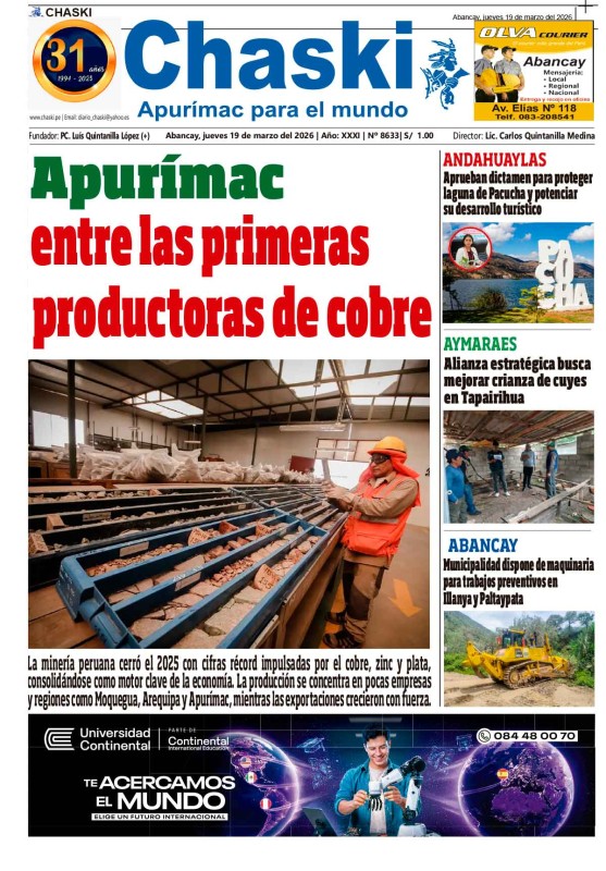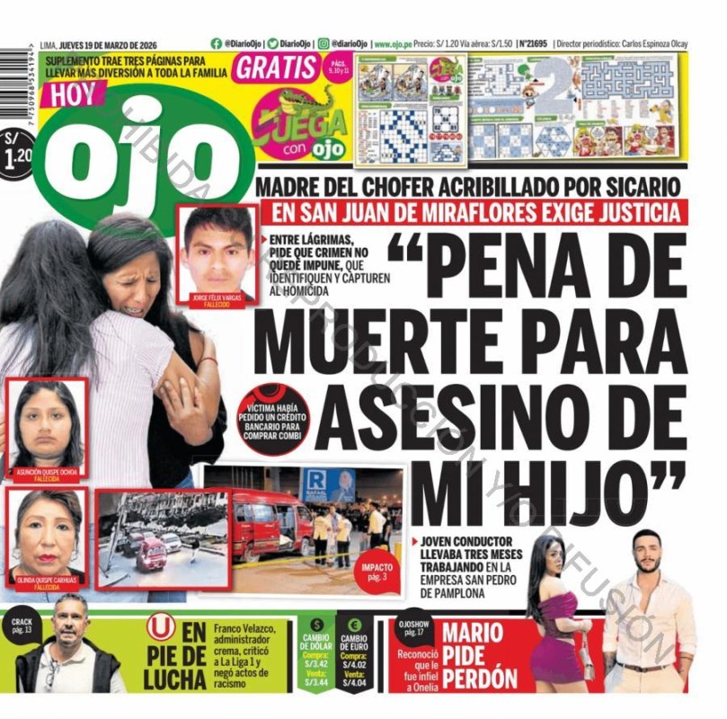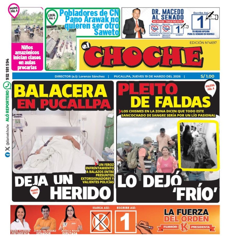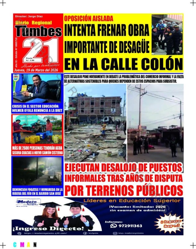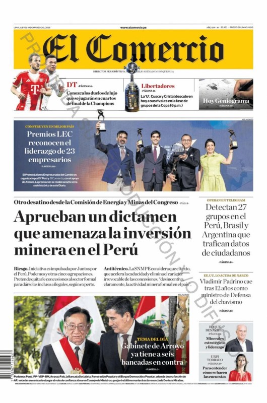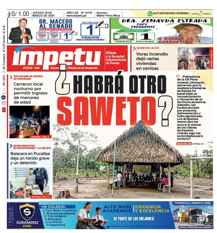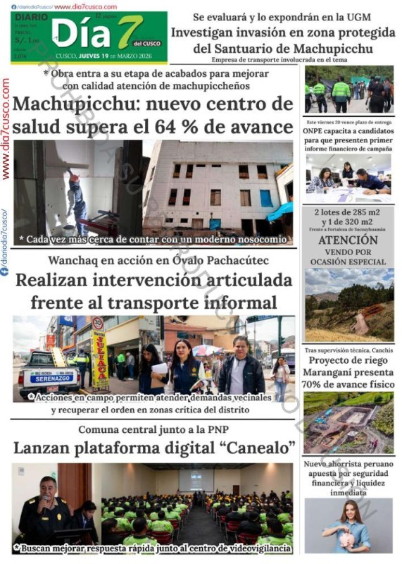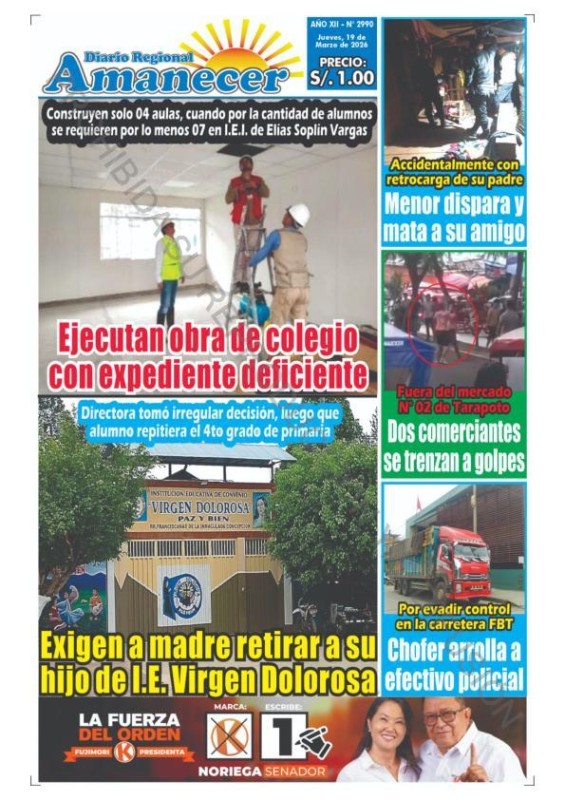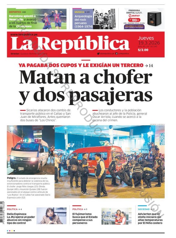 PORTADAS DE PRINCIPALES DIARIOS NACIONALES Y REGIONALES – JUEVES 19 DE MARZO DE 2026