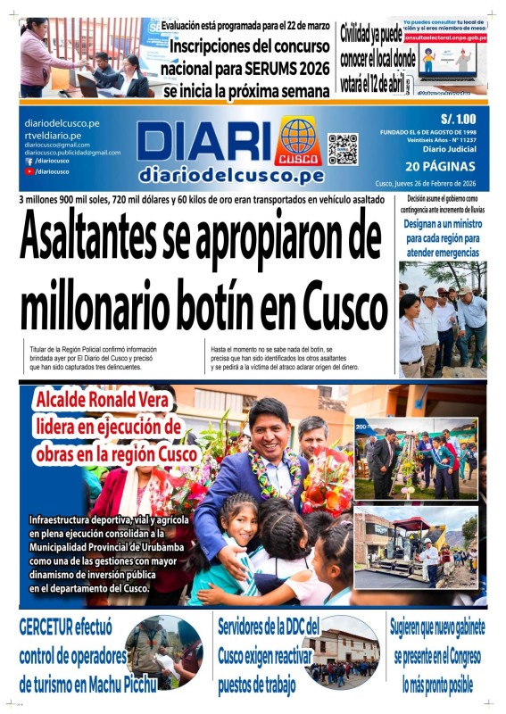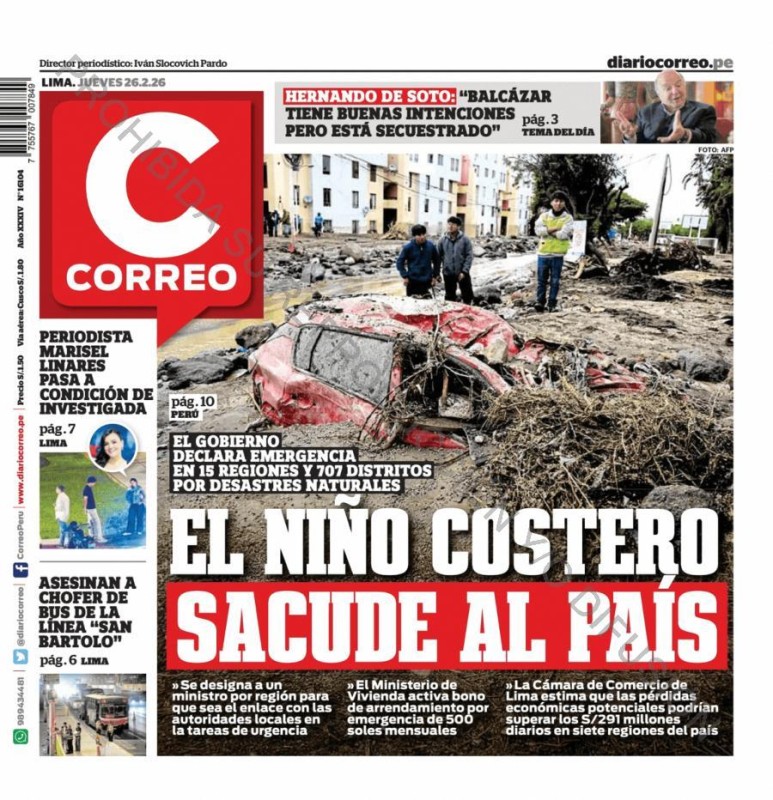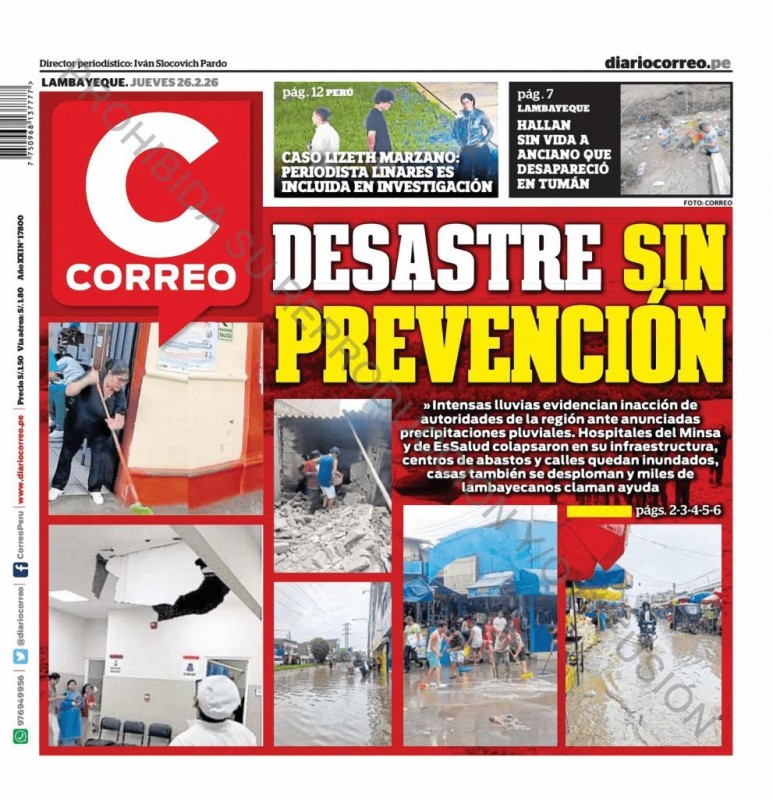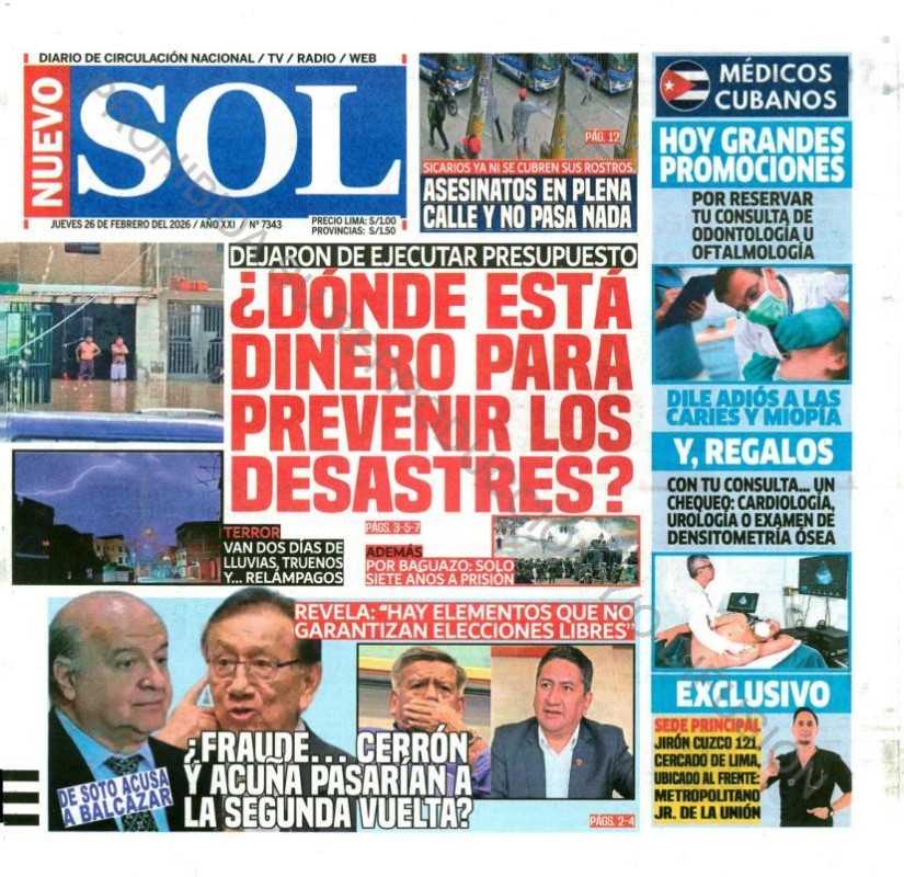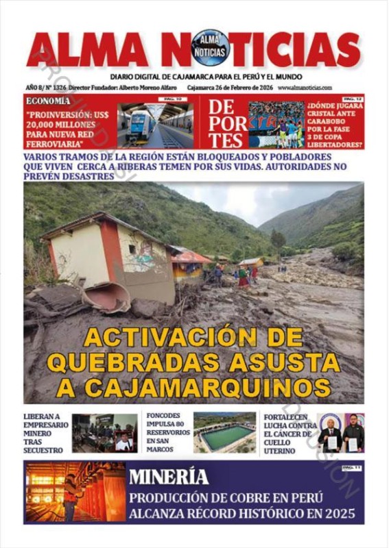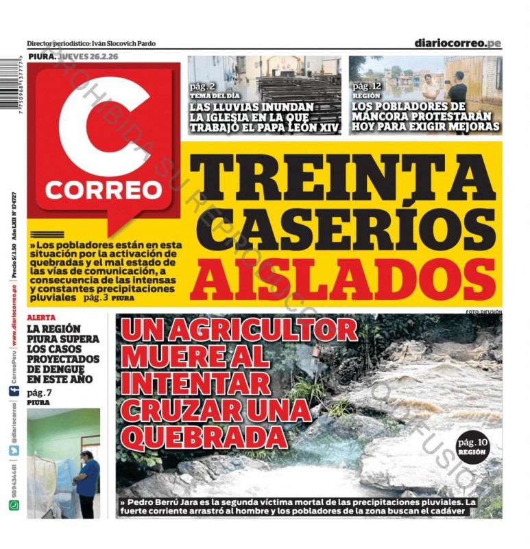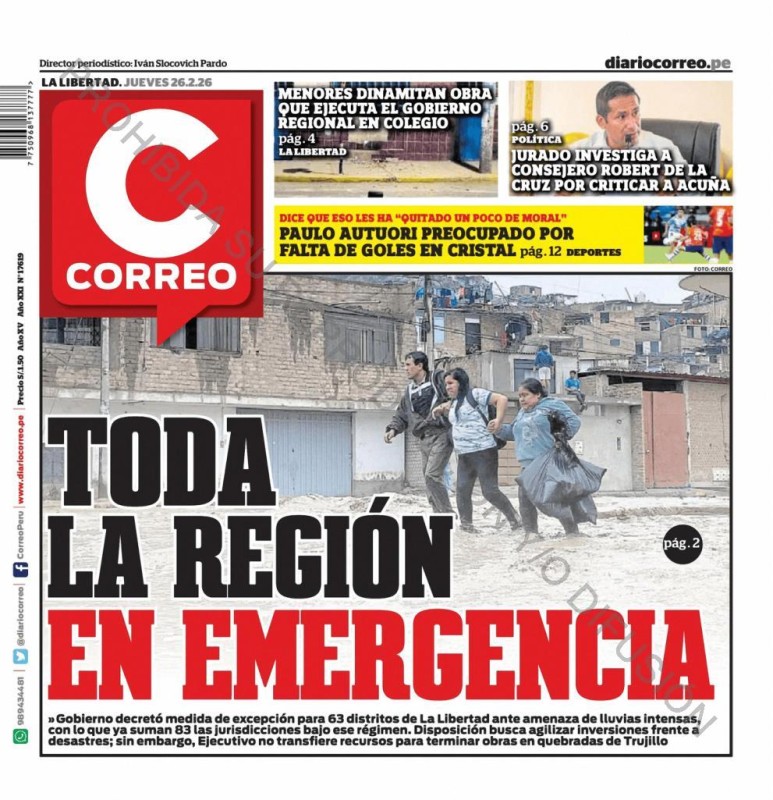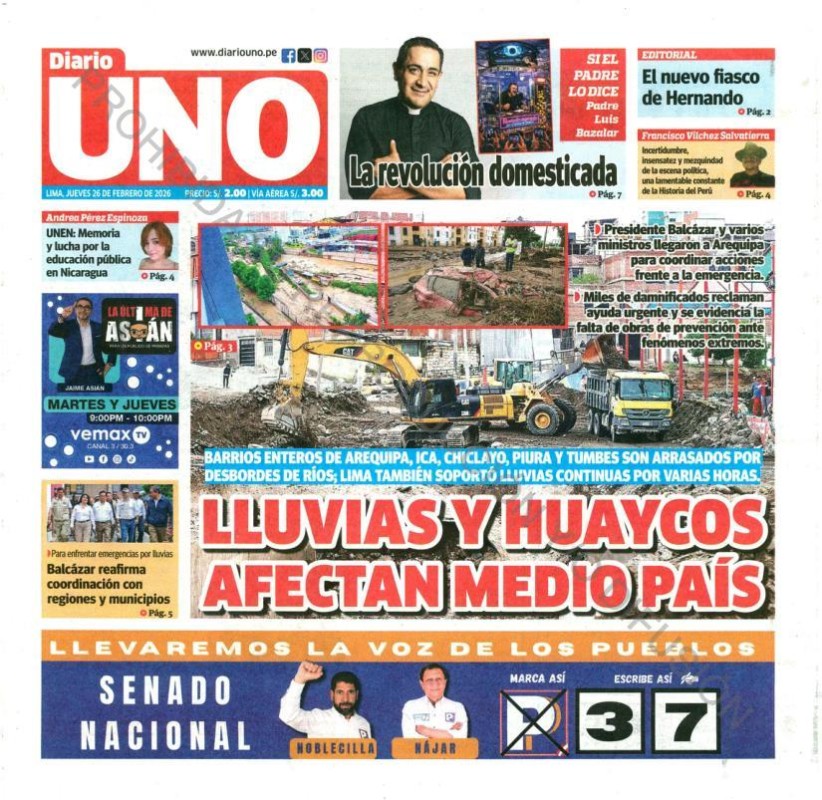 PORTADAS DE PRINCIPALES DIARIOS NACIONALES Y REGIONALES – JUEVES 26 DE FEBRERO 2026