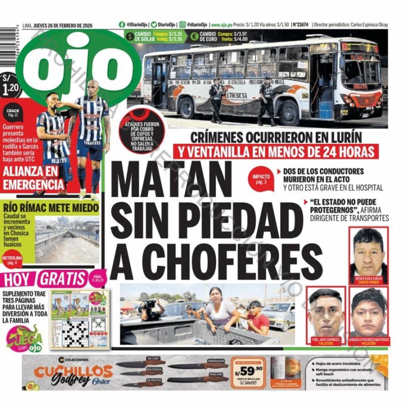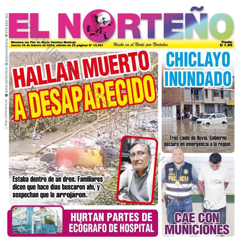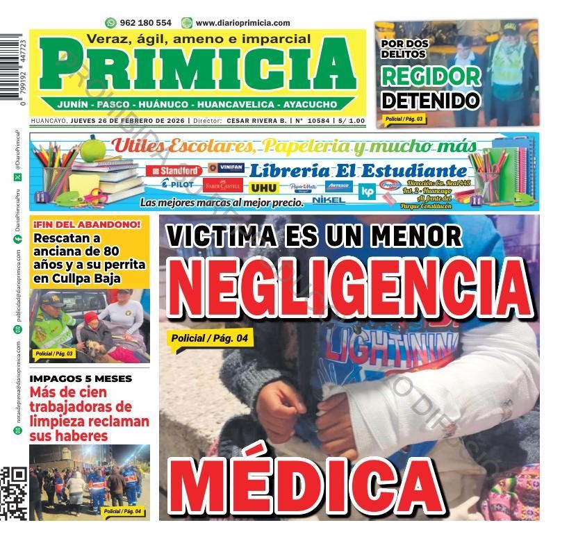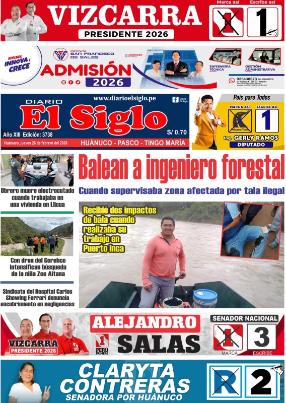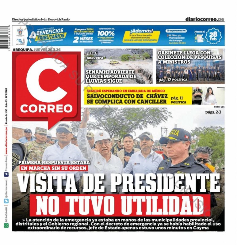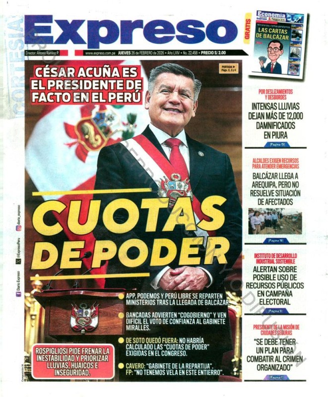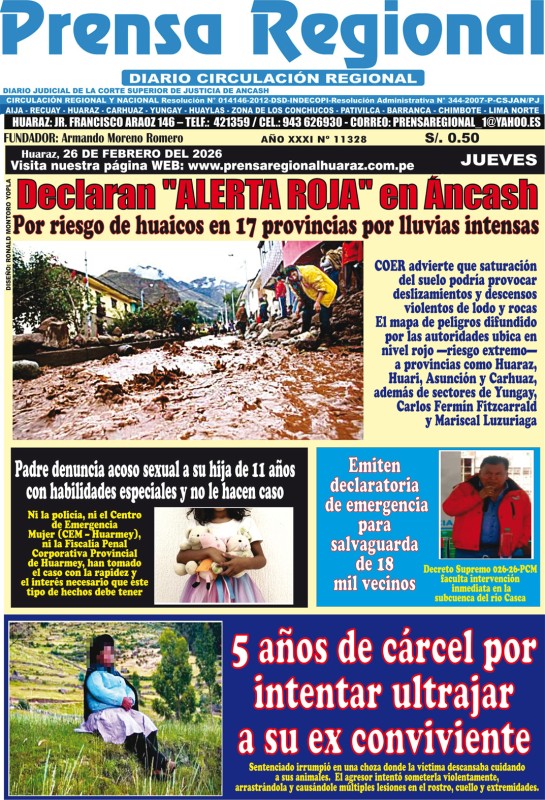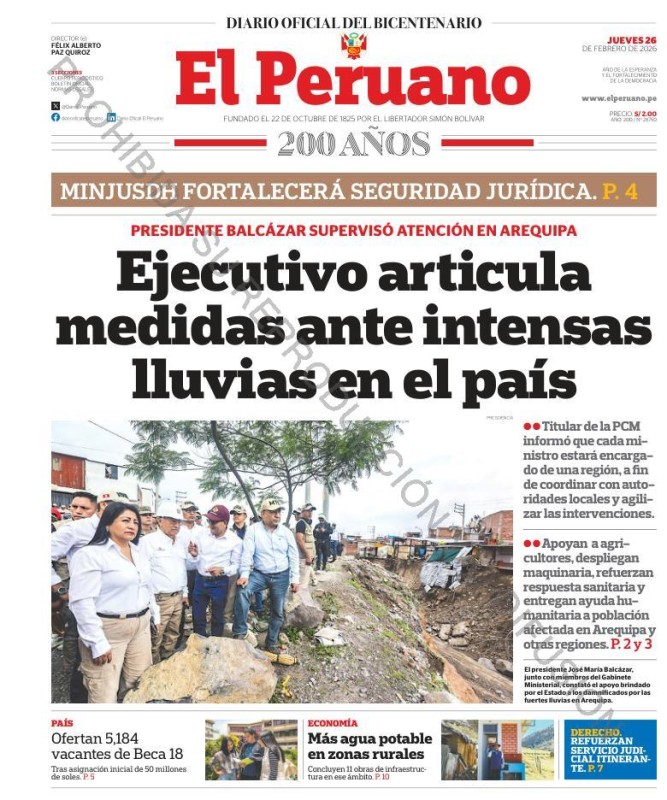 PORTADAS DE PRINCIPALES DIARIOS NACIONALES Y REGIONALES – JUEVES 26 DE FEBRERO 2026