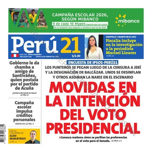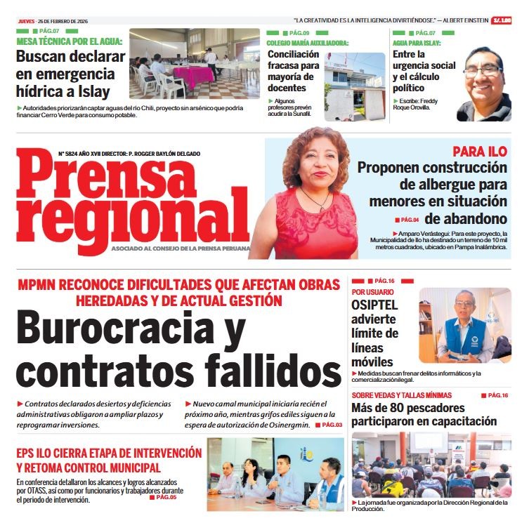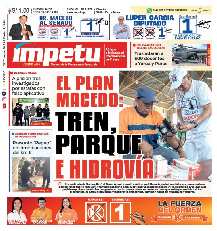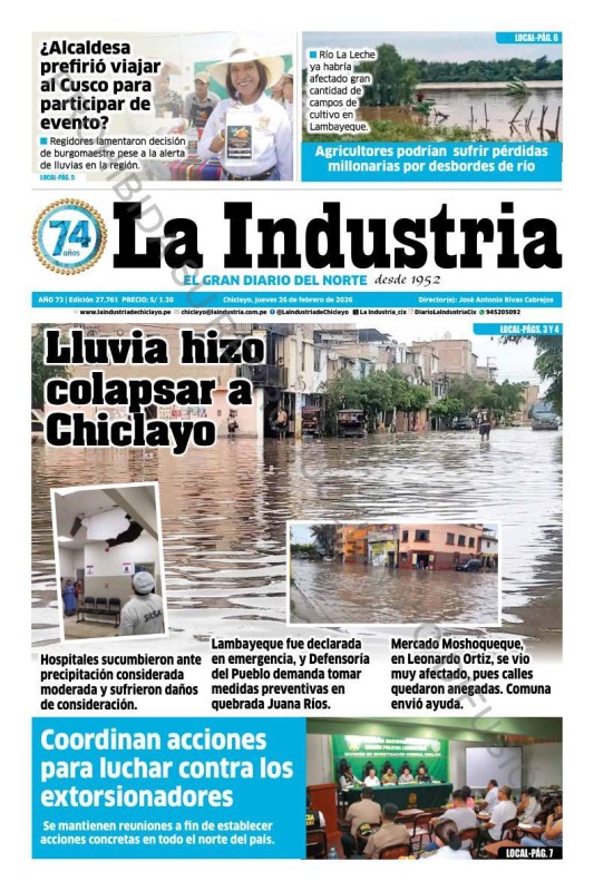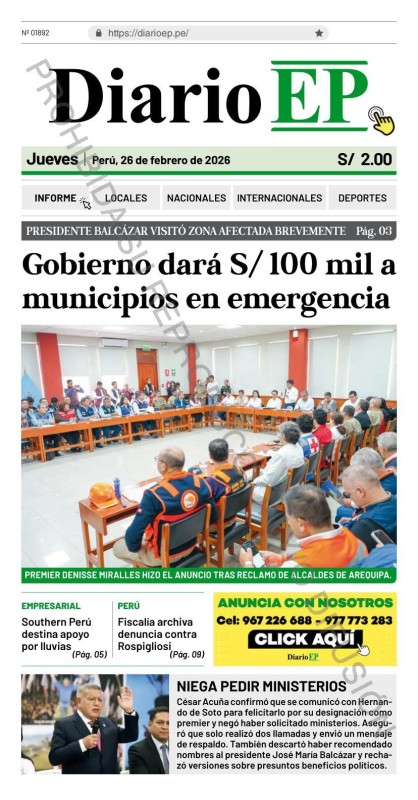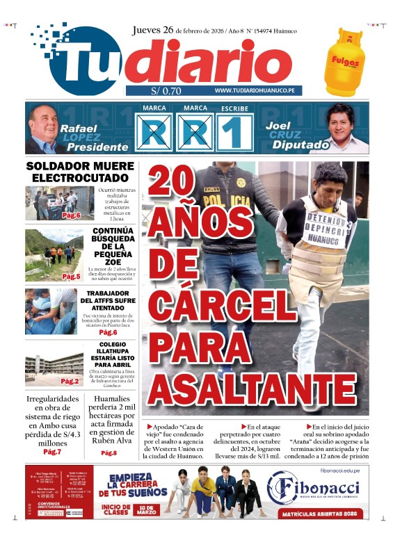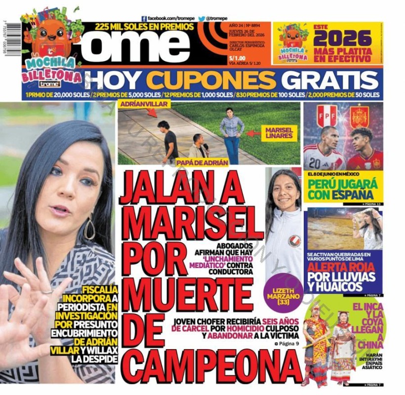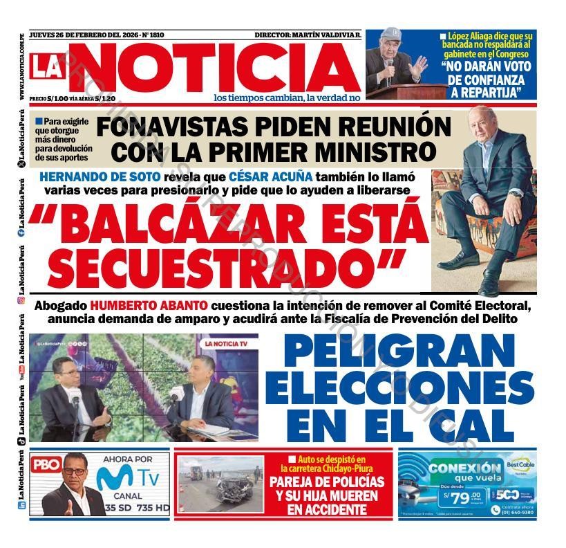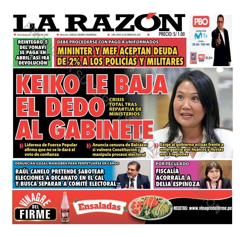 PORTADAS DE PRINCIPALES DIARIOS NACIONALES Y REGIONALES – JUEVES 26 DE FEBRERO 2026