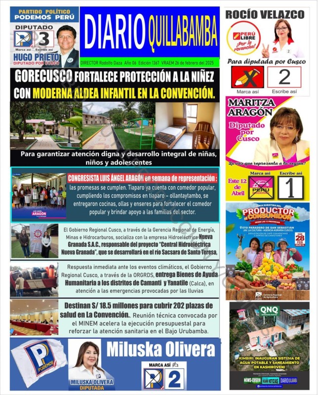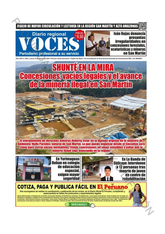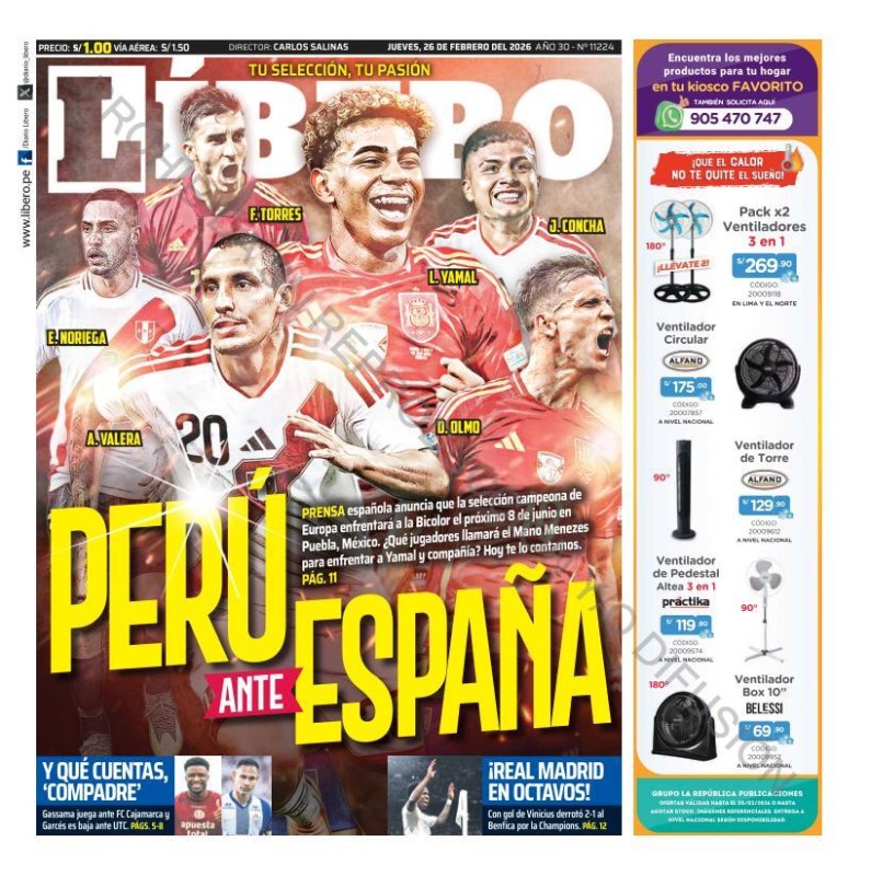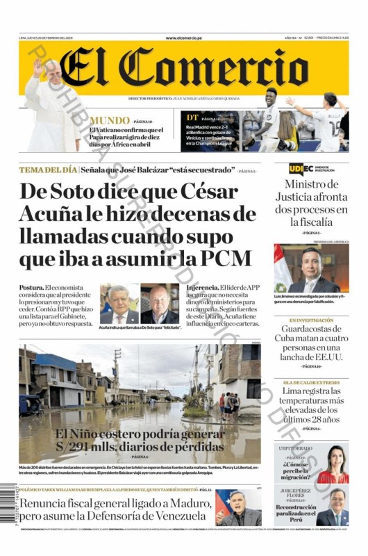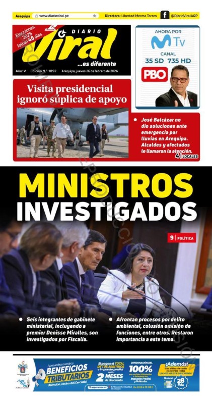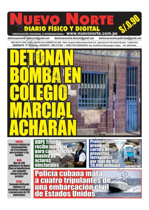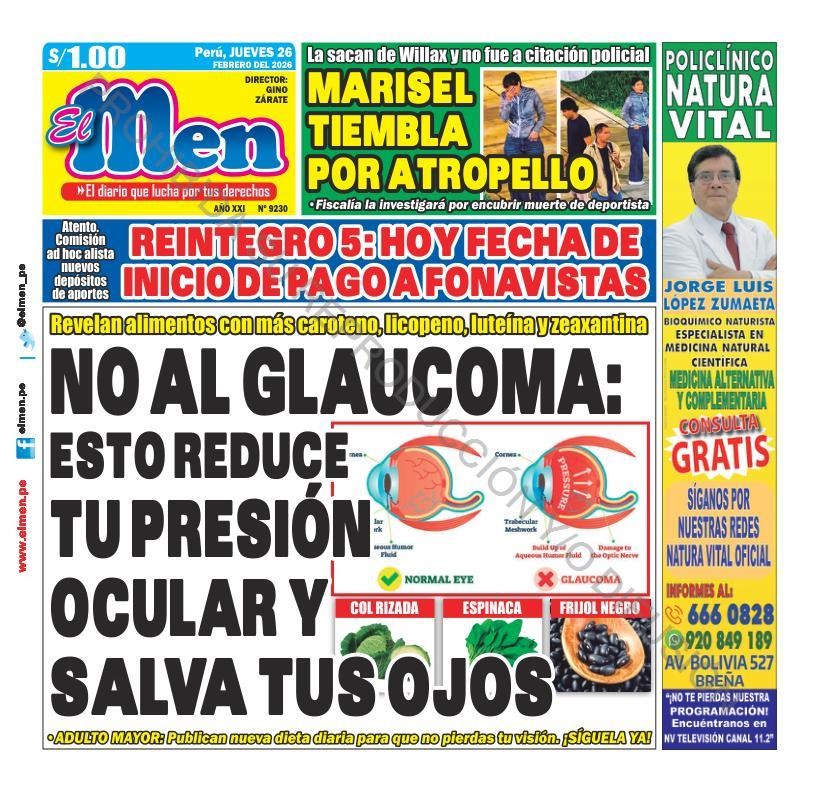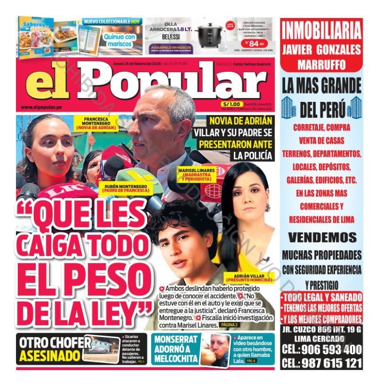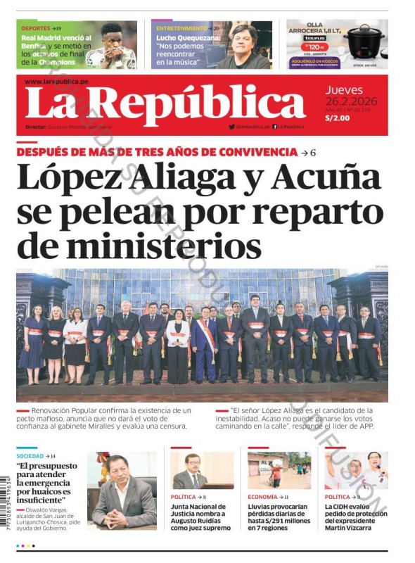 PORTADAS DE PRINCIPALES DIARIOS NACIONALES Y REGIONALES – JUEVES 26 DE FEBRERO 2026