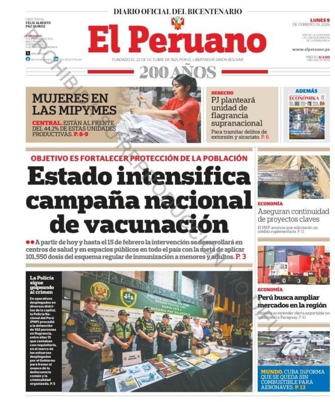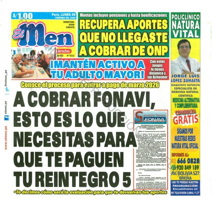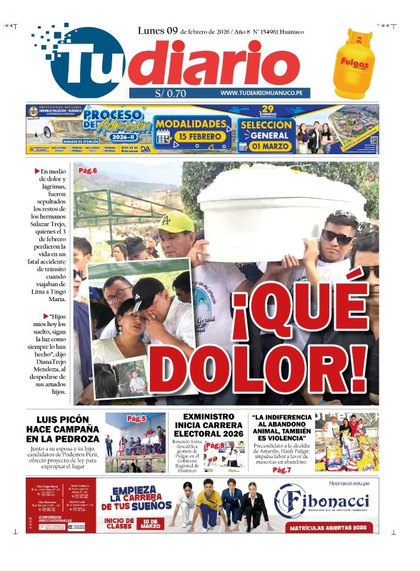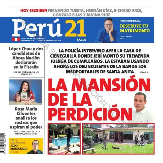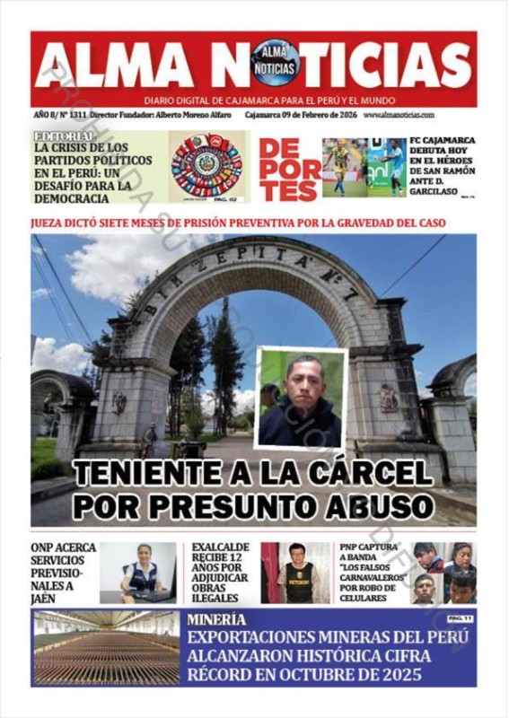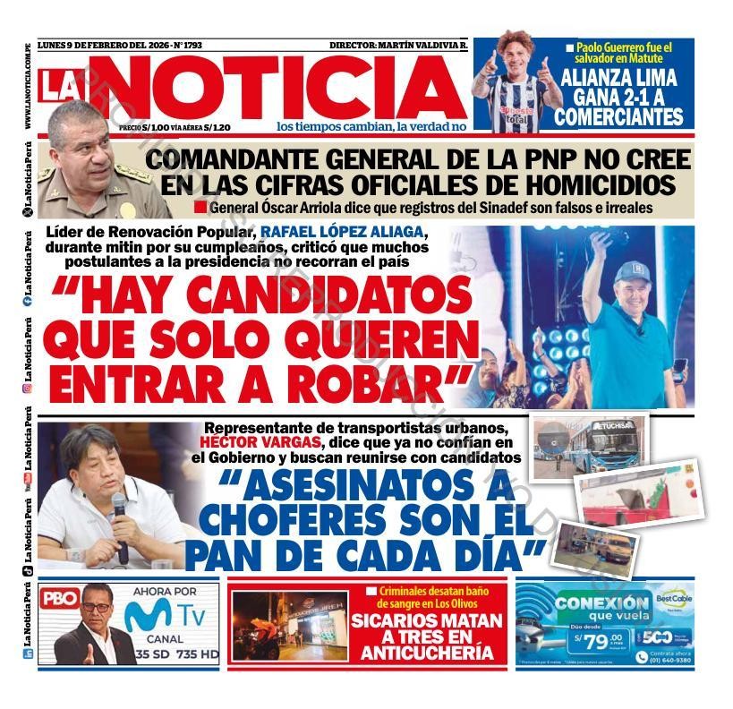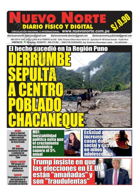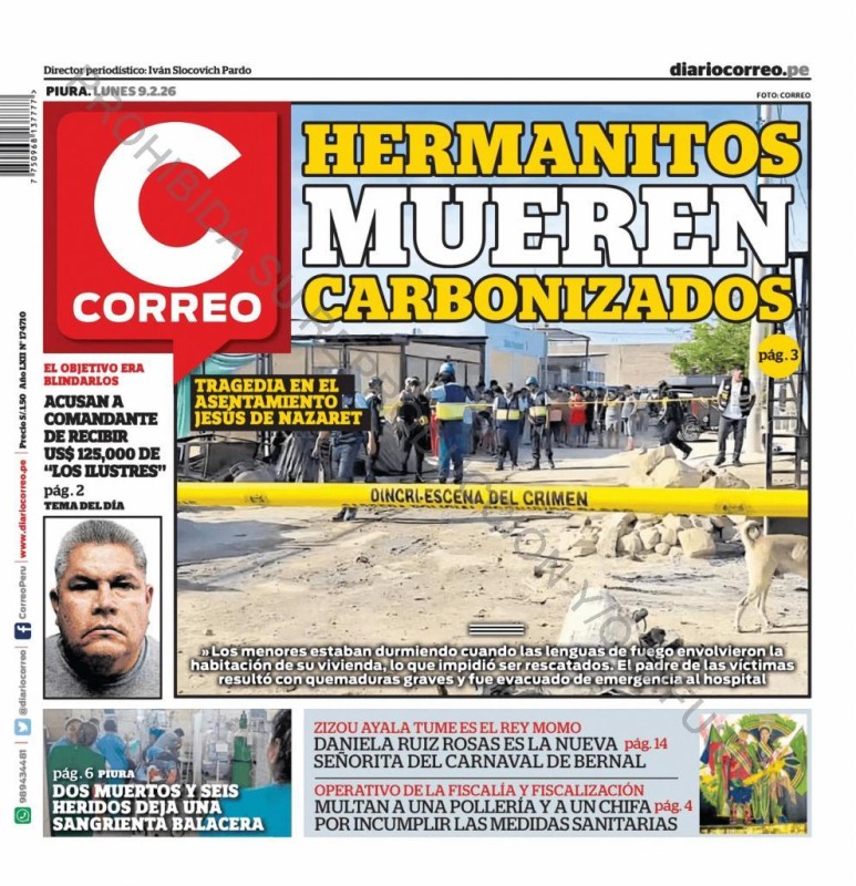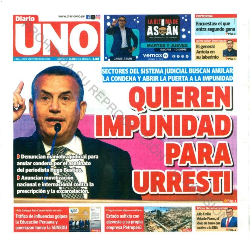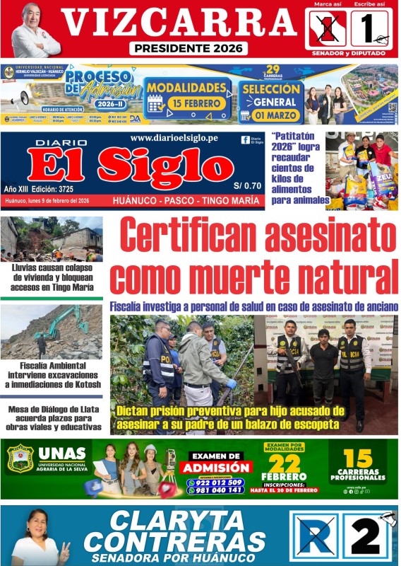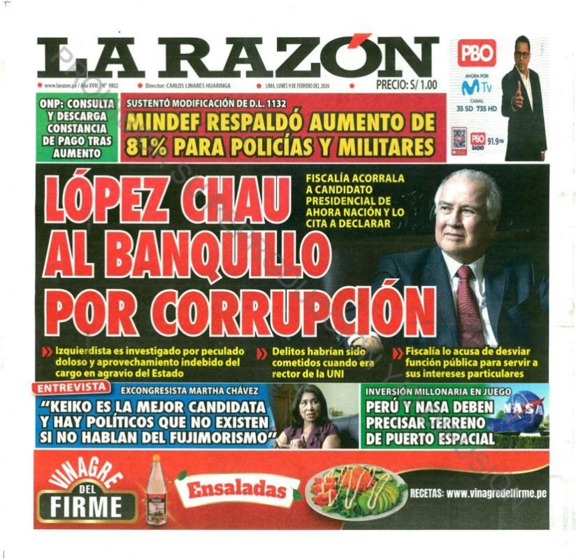 PORTADAS DE PRINCIPALES DIARIOS NACIONALES Y REGIONALES – LUNES 09 DE FEBRERO 2026