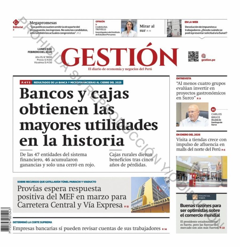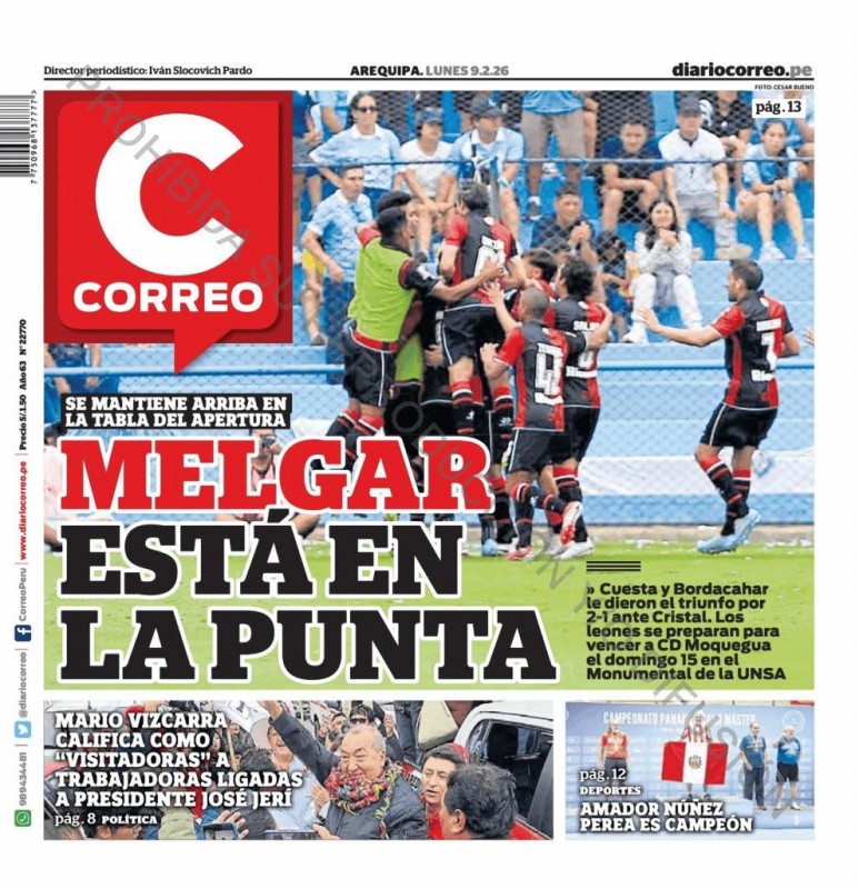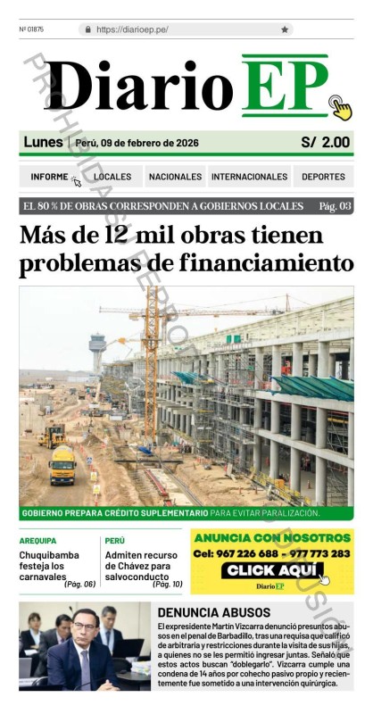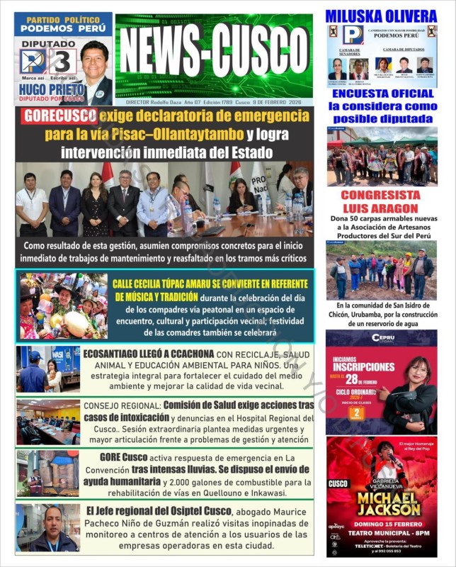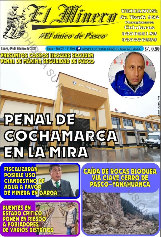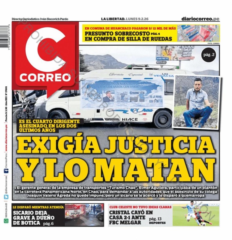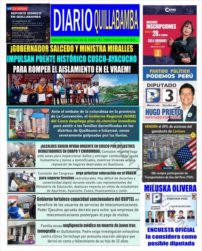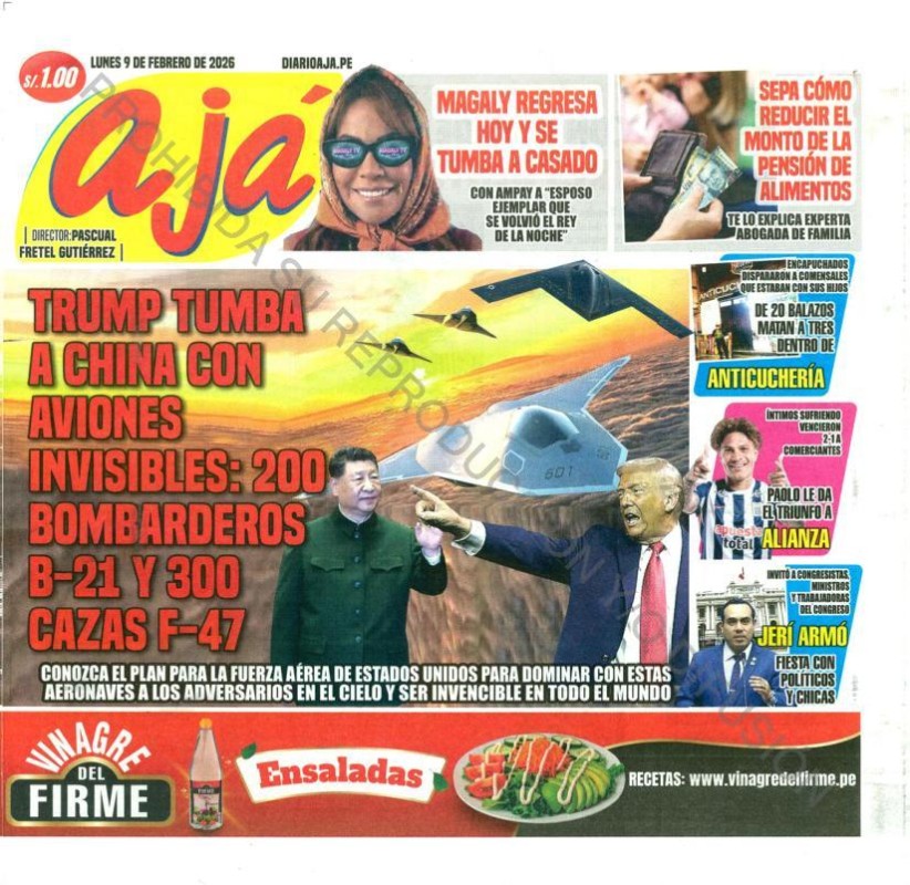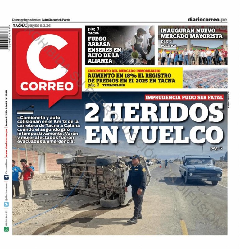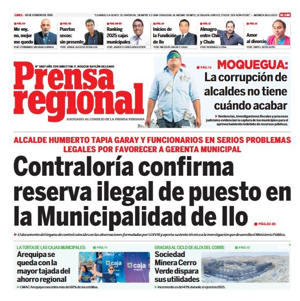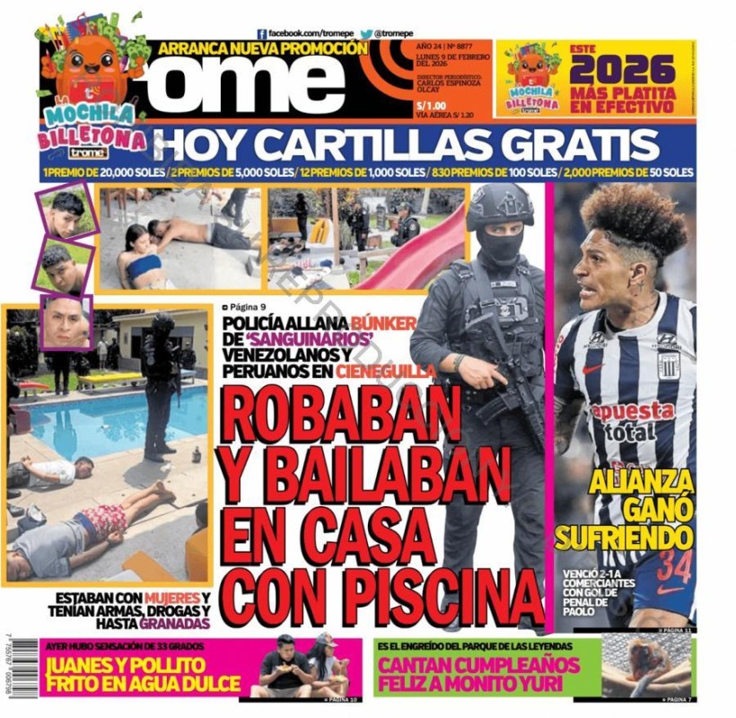 PORTADAS DE PRINCIPALES DIARIOS NACIONALES Y REGIONALES – LUNES 09 DE FEBRERO 2026