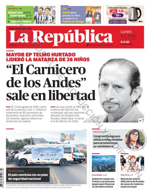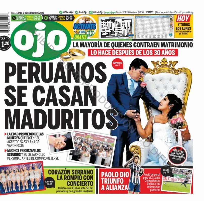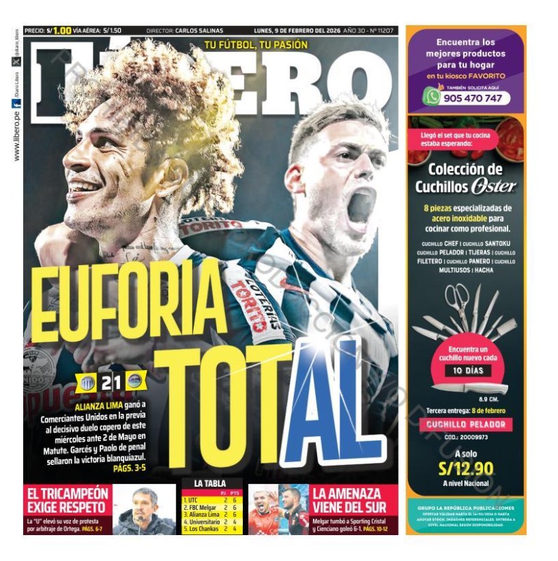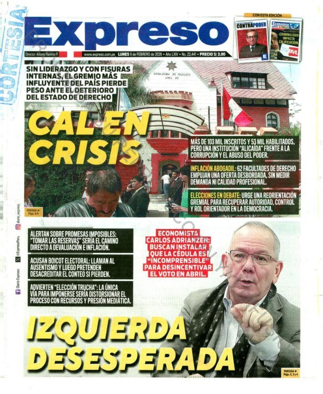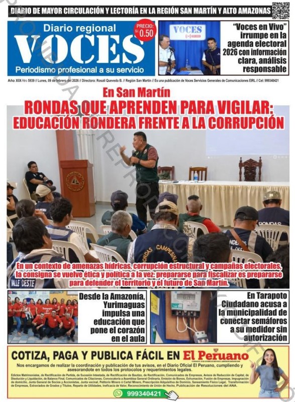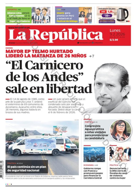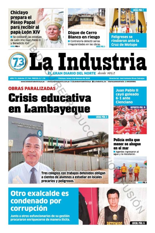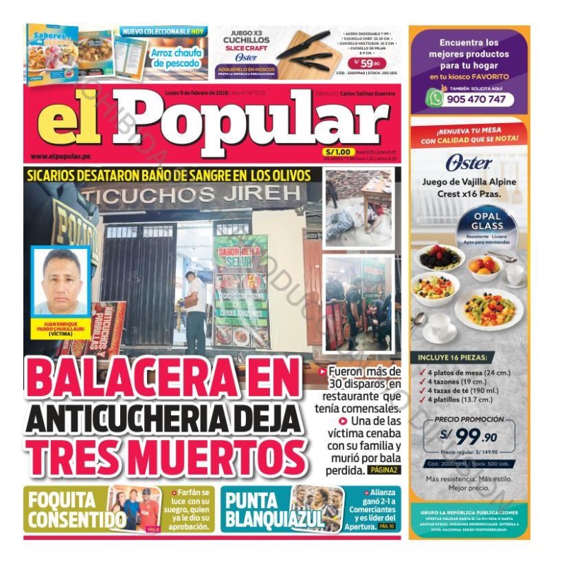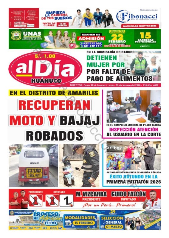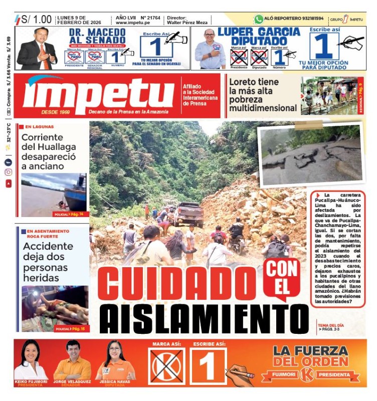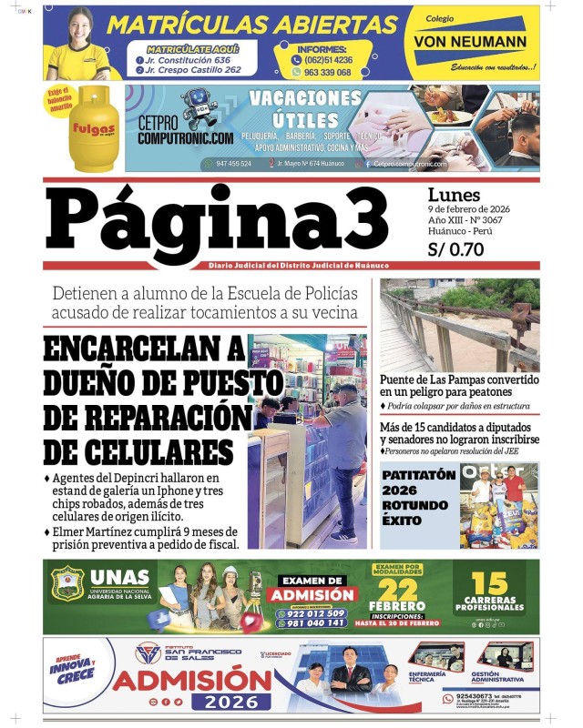 PORTADAS DE PRINCIPALES DIARIOS NACIONALES Y REGIONALES – LUNES 09 DE FEBRERO 2026