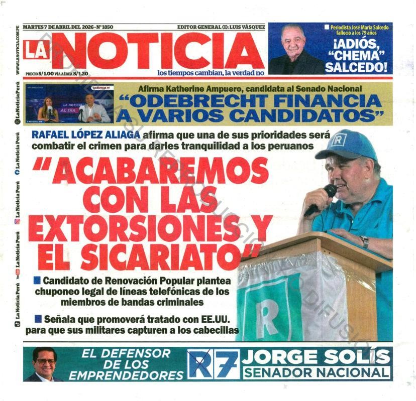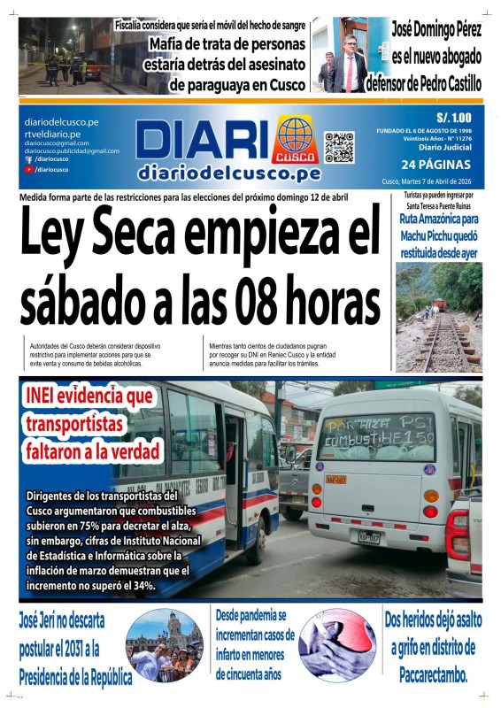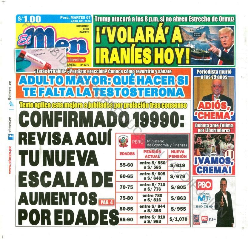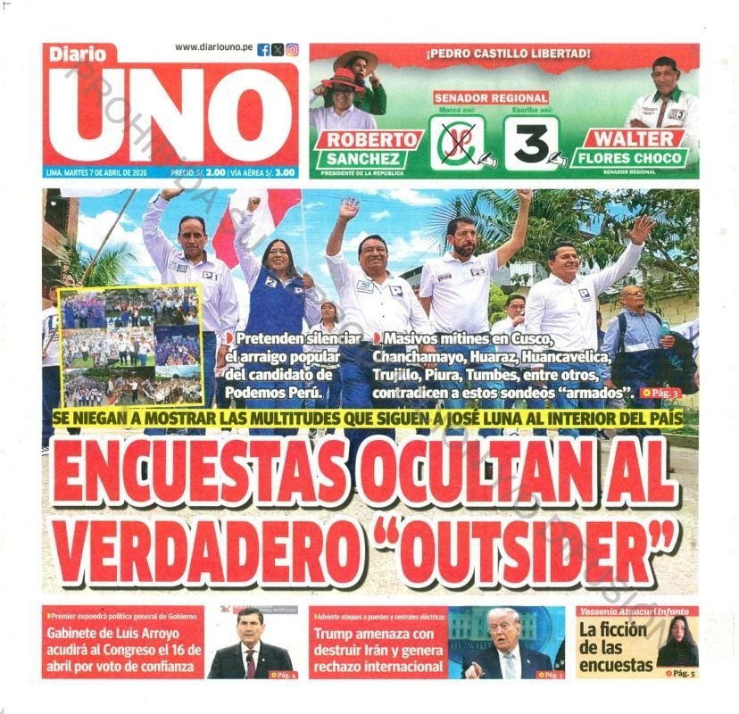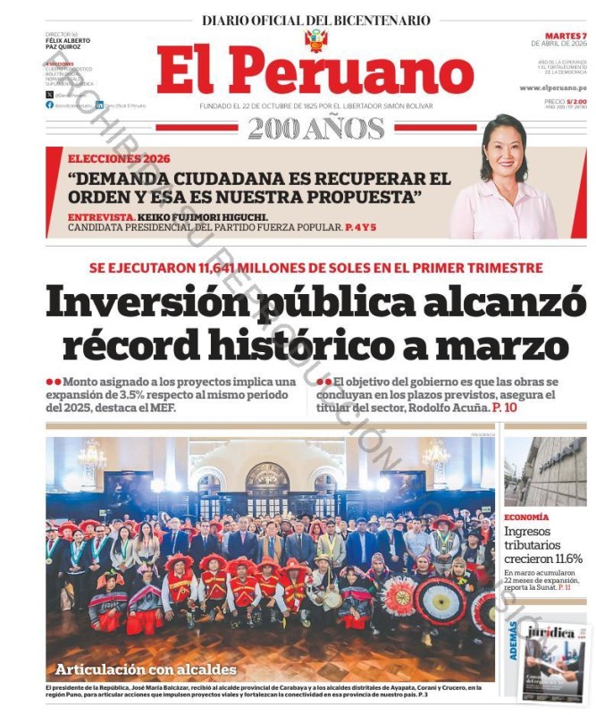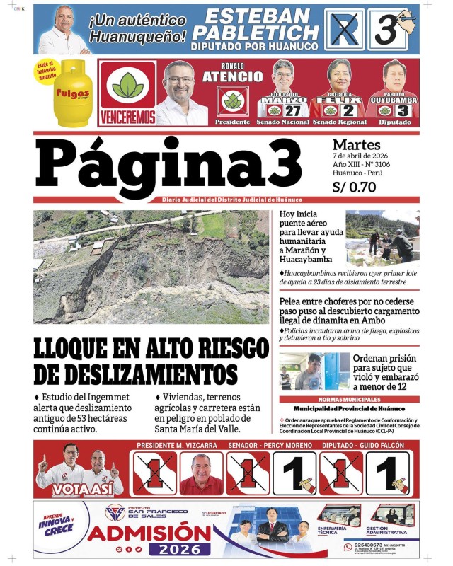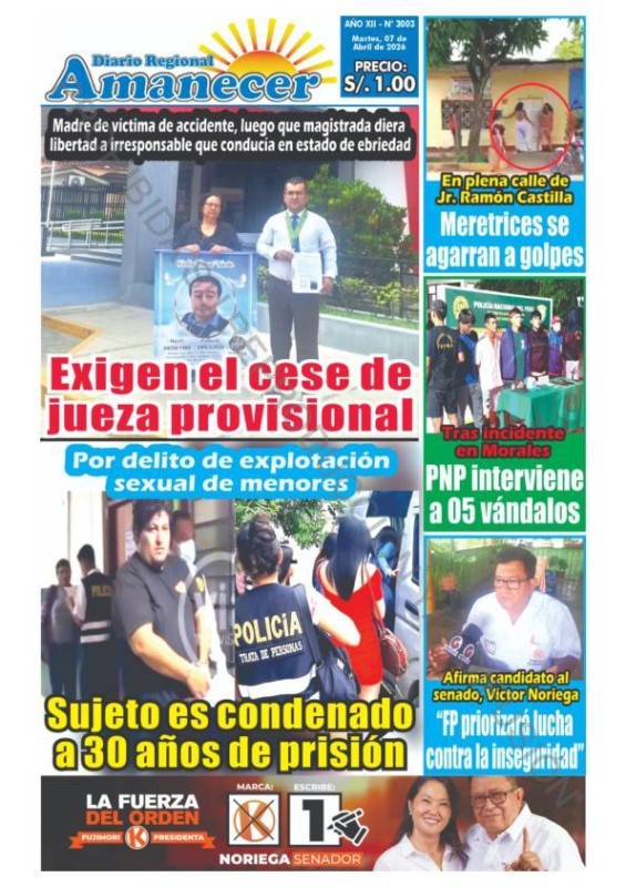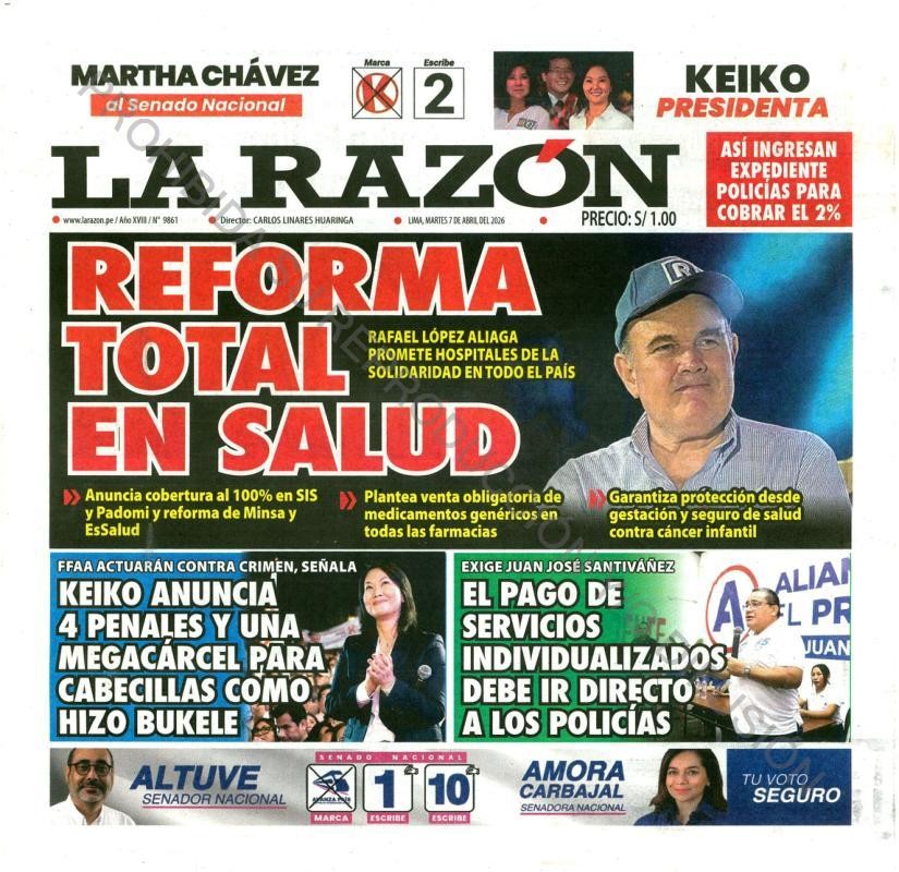 PORTADAS DE PRINCIPALES DIARIOS NACIONALES Y REGIONALES – MARTES 07 DE ABRIL DE 2026