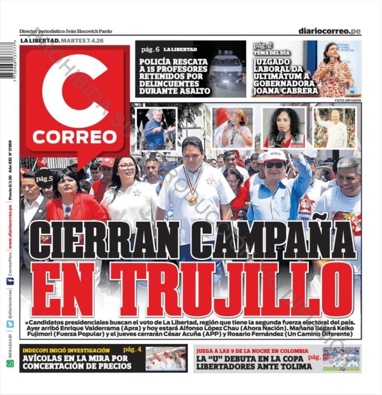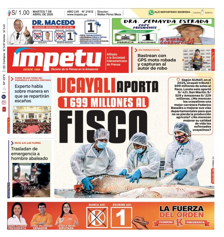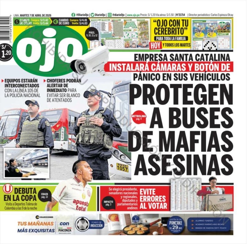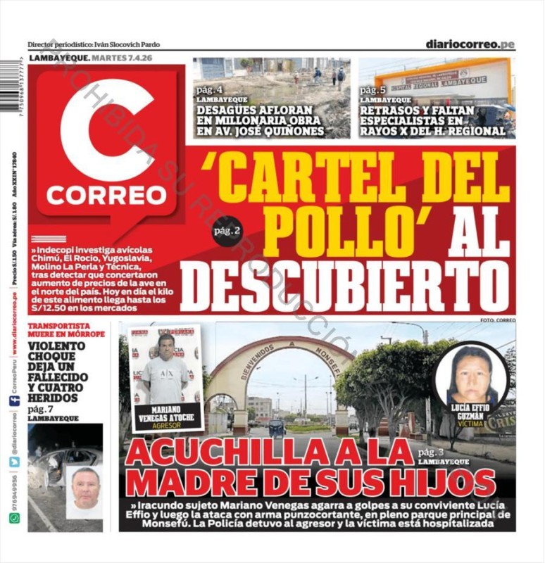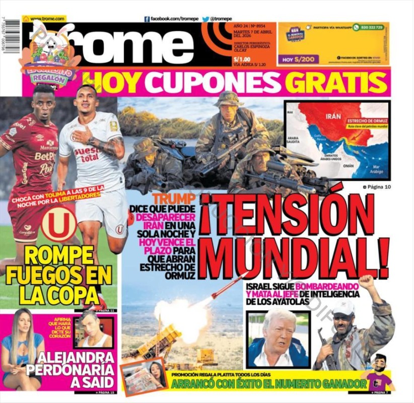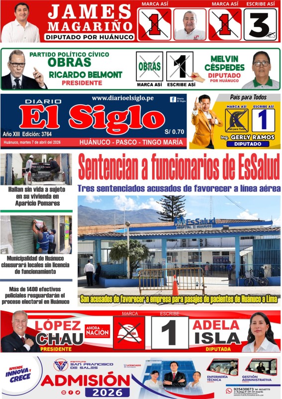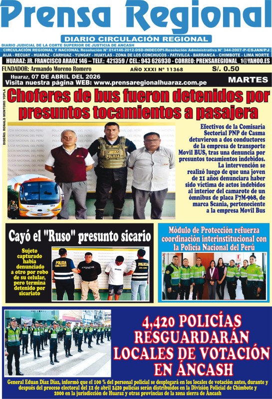 PORTADAS DE PRINCIPALES DIARIOS NACIONALES Y REGIONALES – MARTES 07 DE ABRIL DE 2026