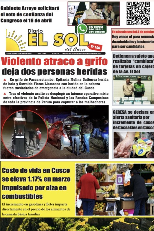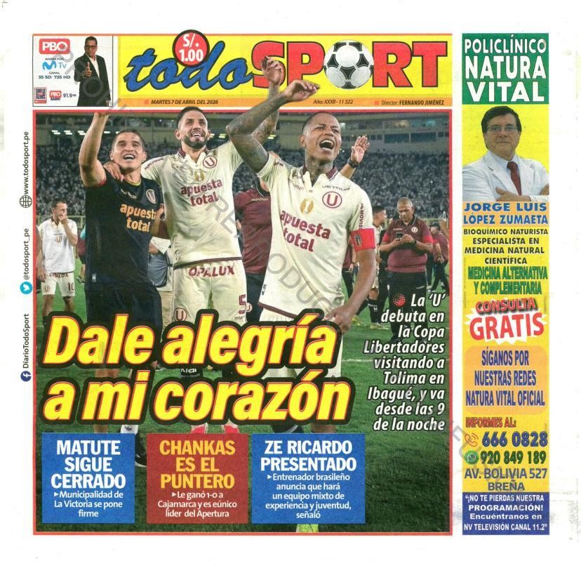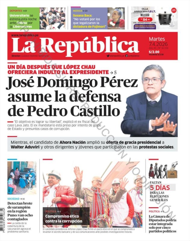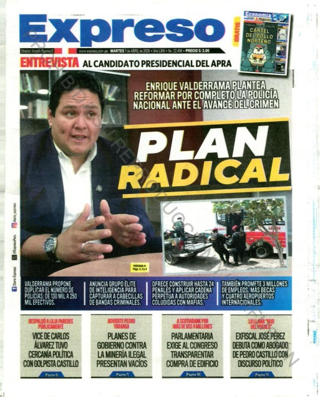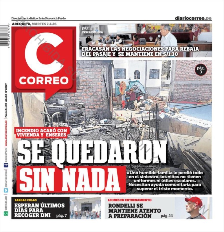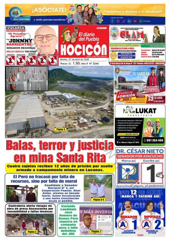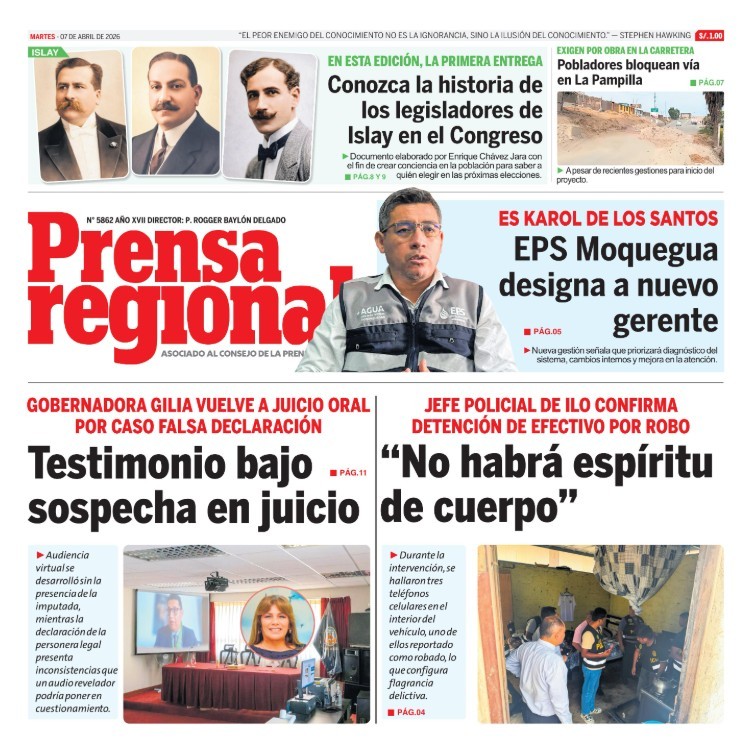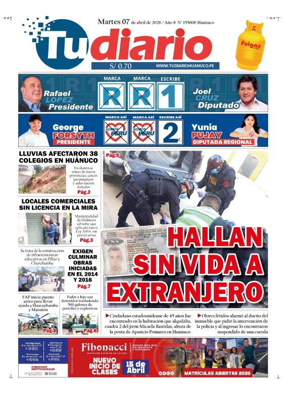 PORTADAS DE PRINCIPALES DIARIOS NACIONALES Y REGIONALES – MARTES 07 DE ABRIL DE 2026