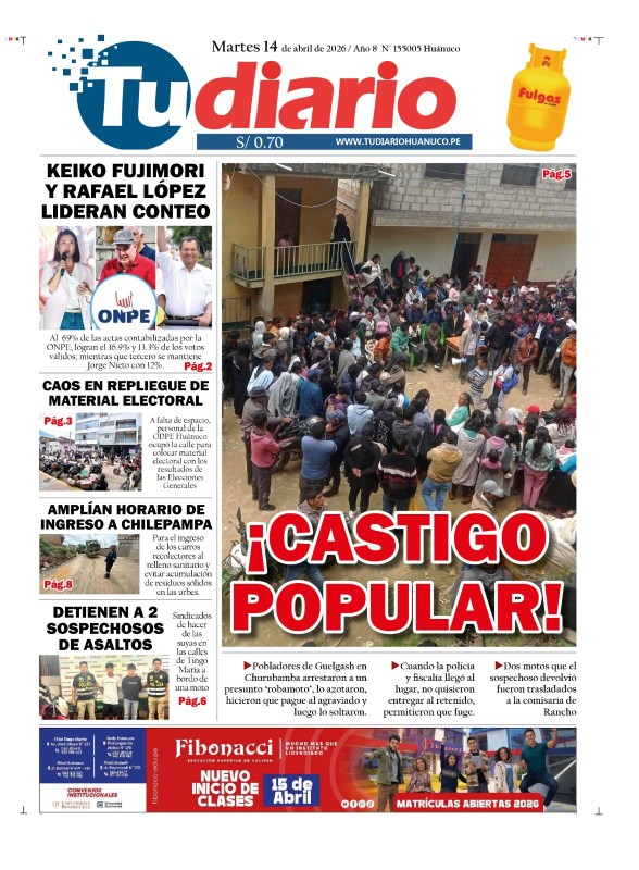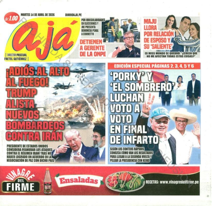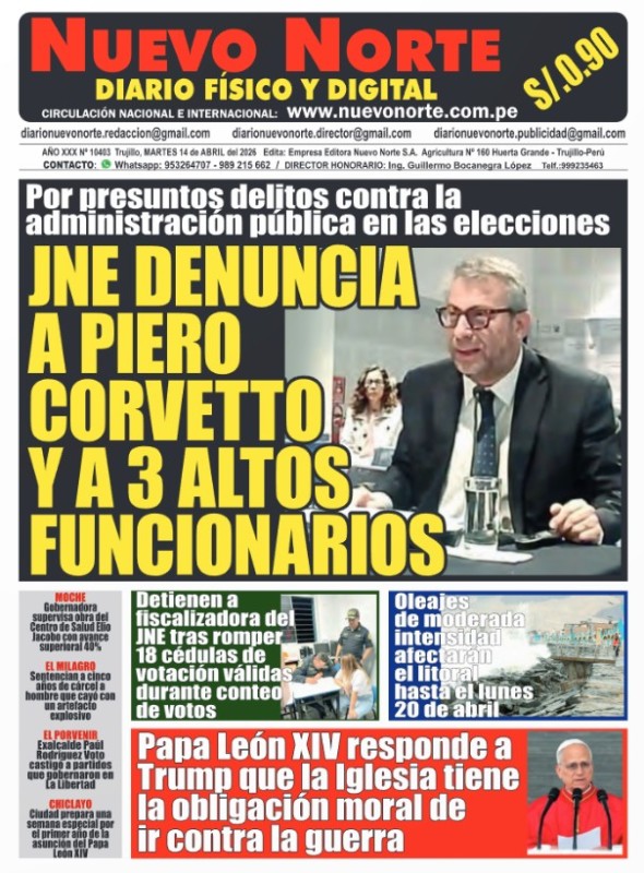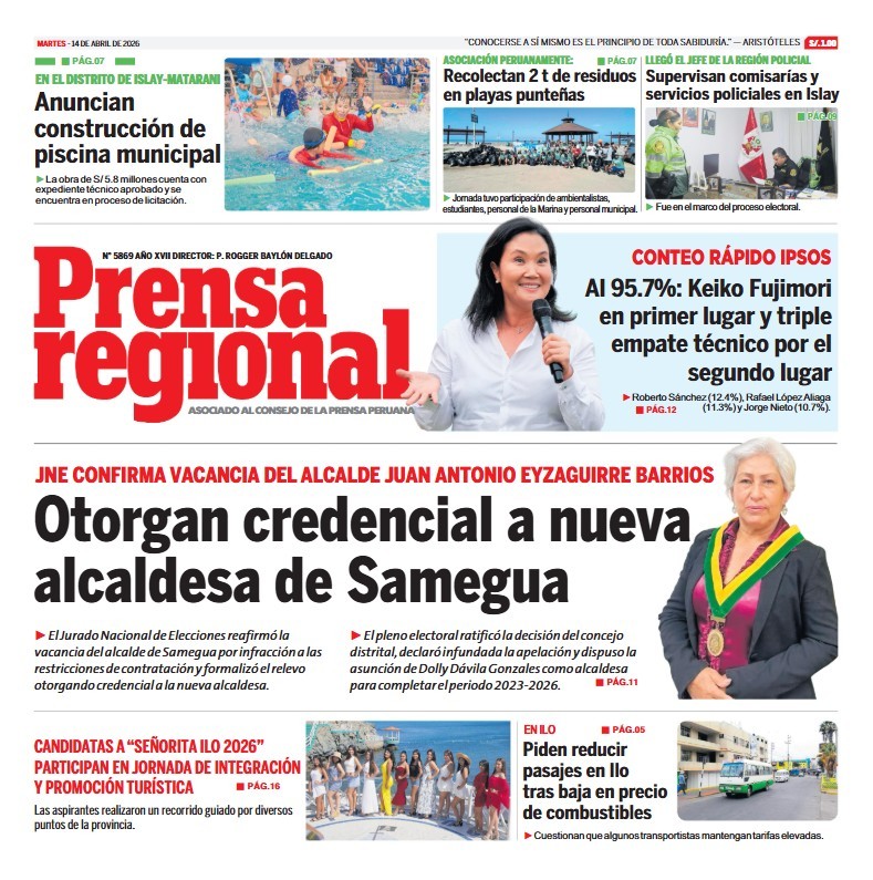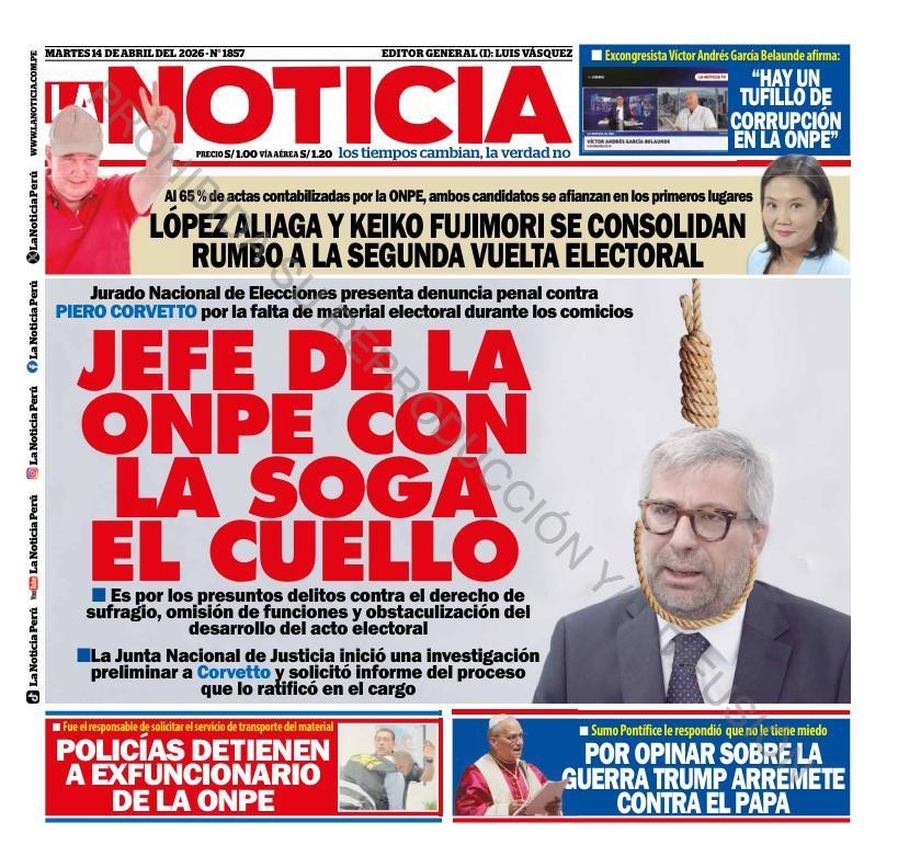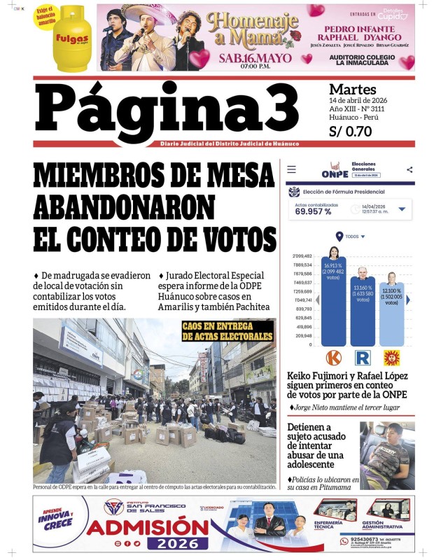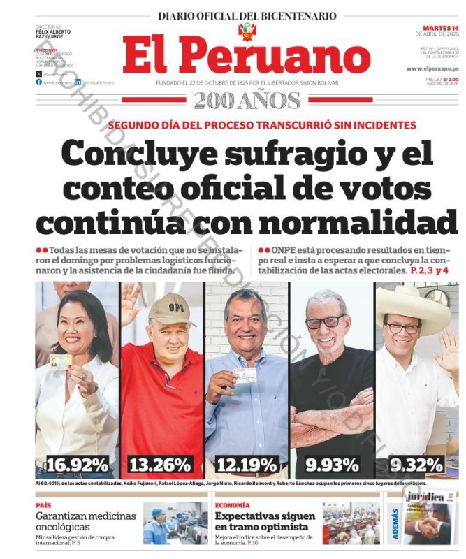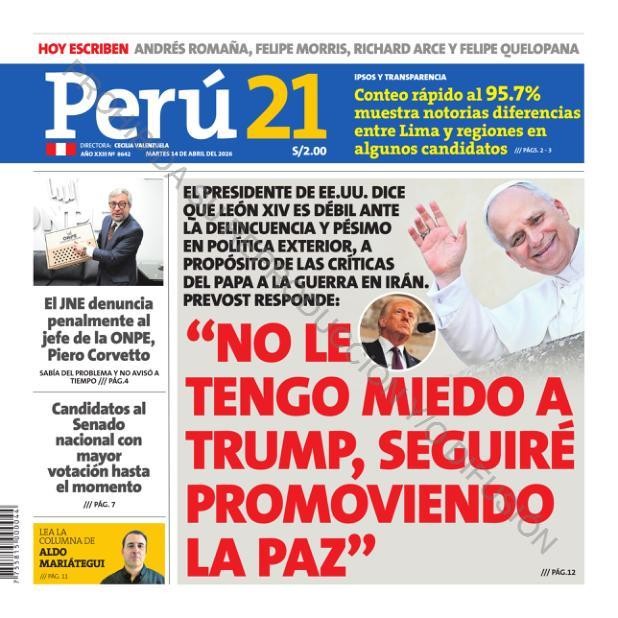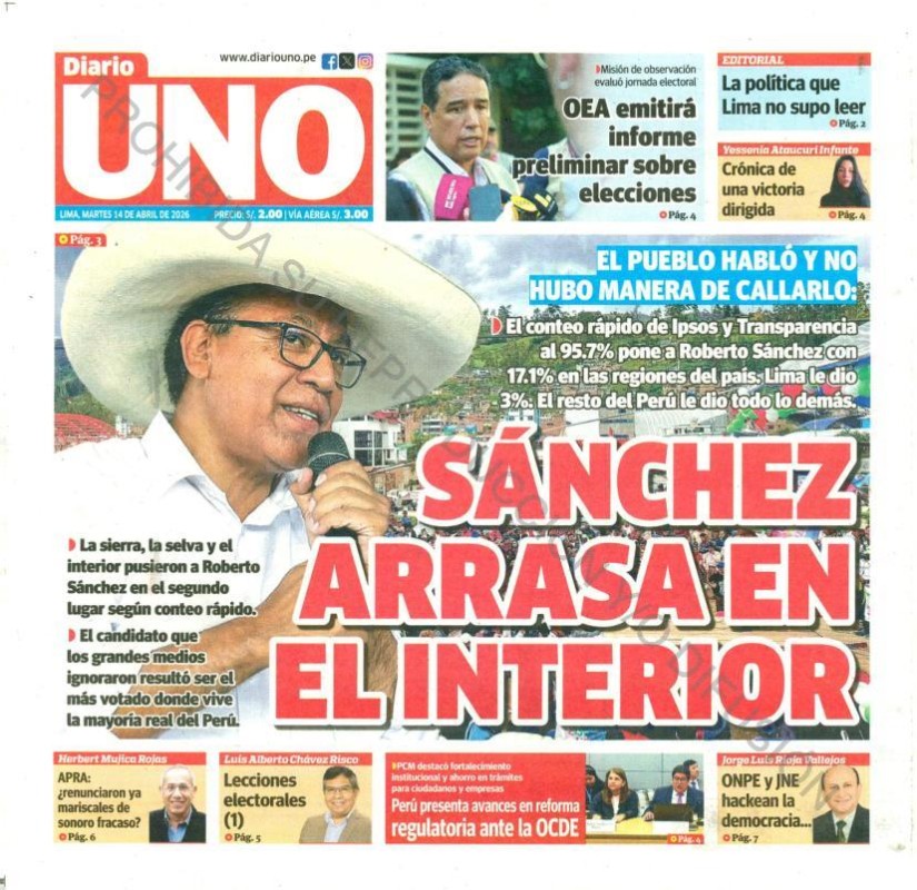 PORTADAS DE PRINCIPALES DIARIOS NACIONALES Y REGIONALES – MARTES 14 DE ABRIL DE 2026