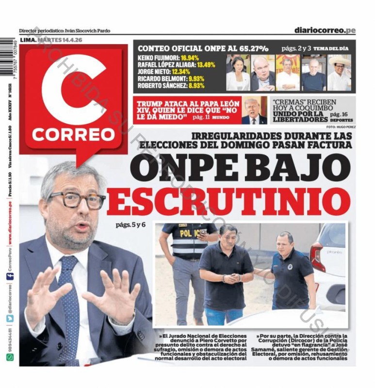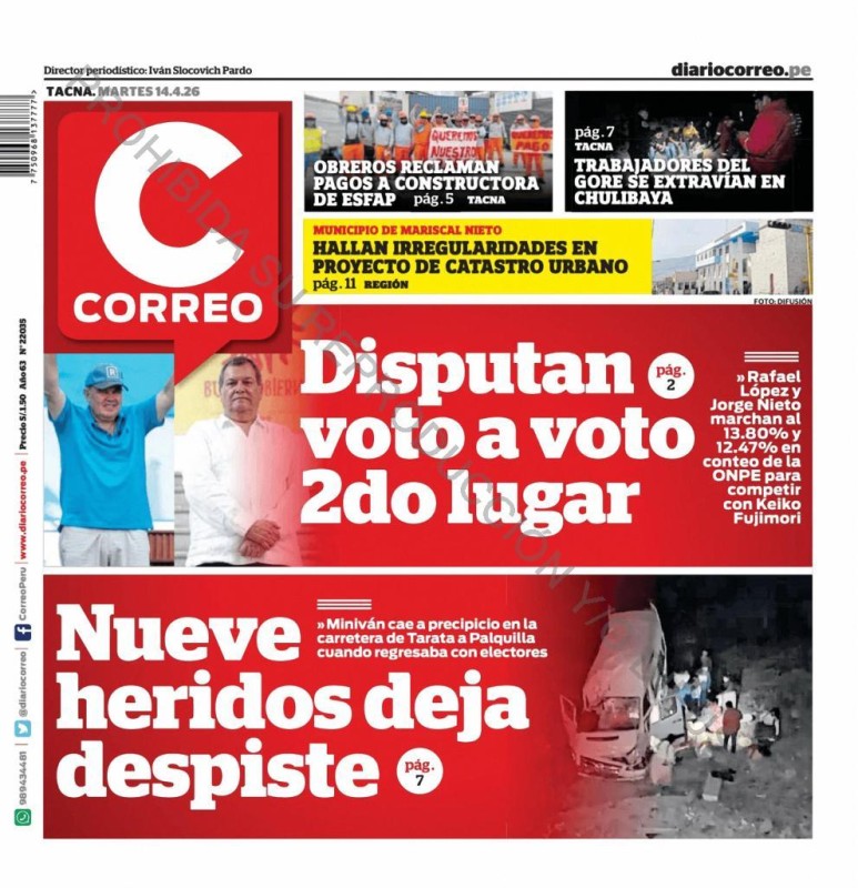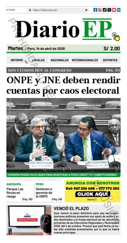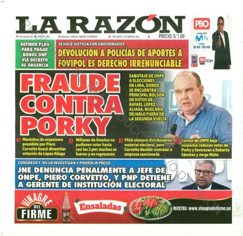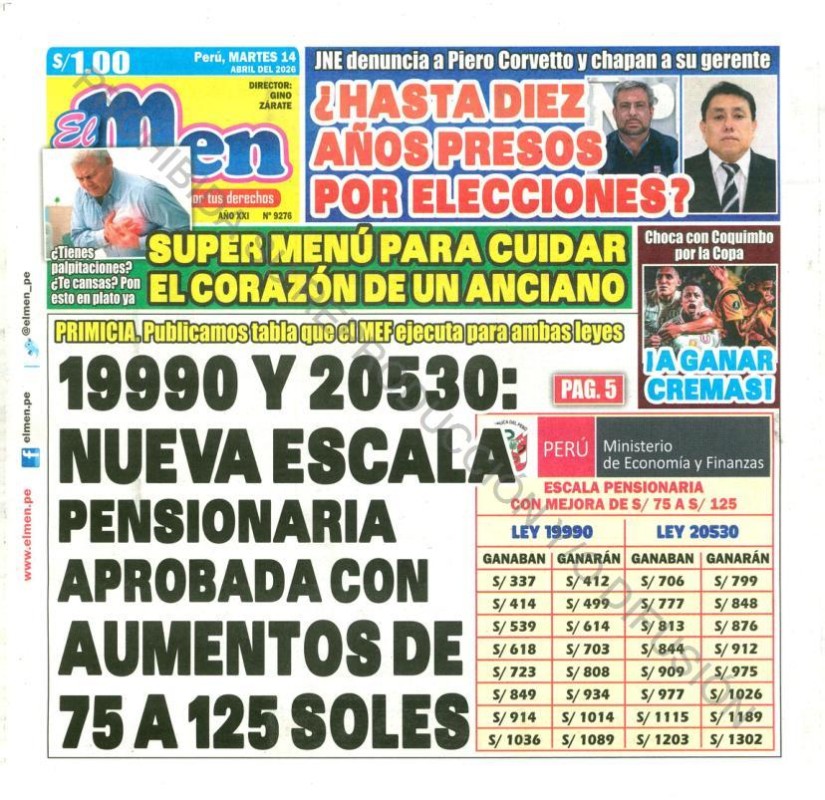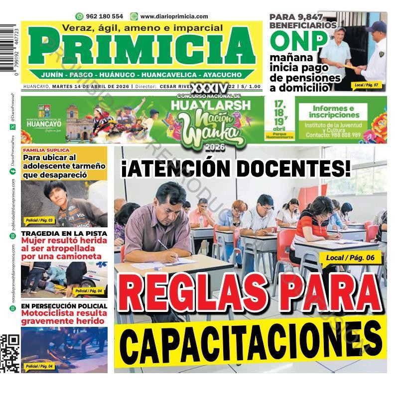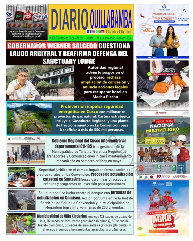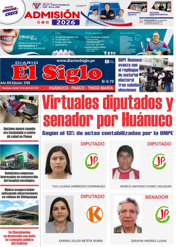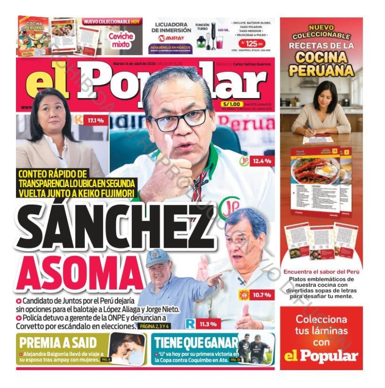 PORTADAS DE PRINCIPALES DIARIOS NACIONALES Y REGIONALES – MARTES 14 DE ABRIL DE 2026