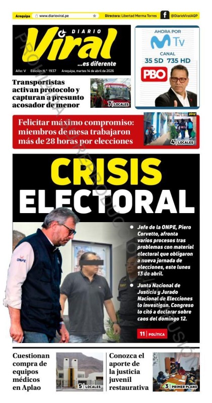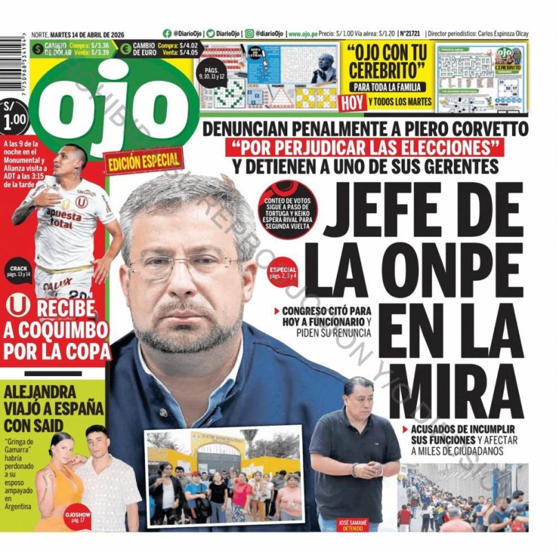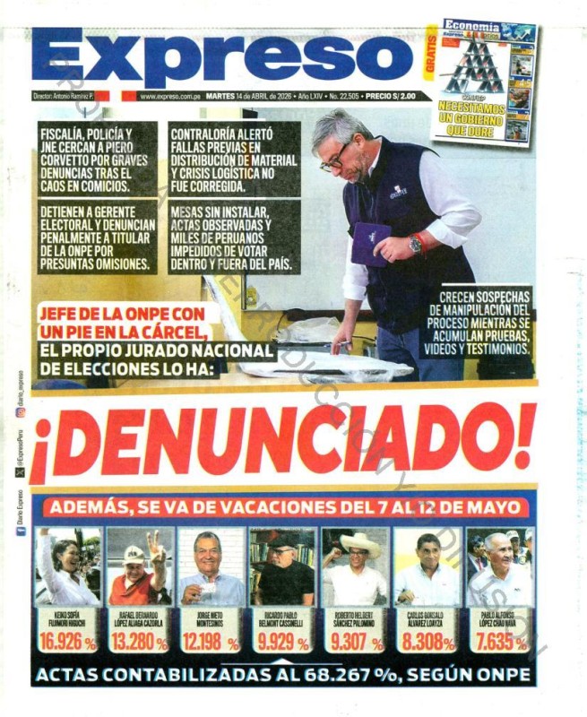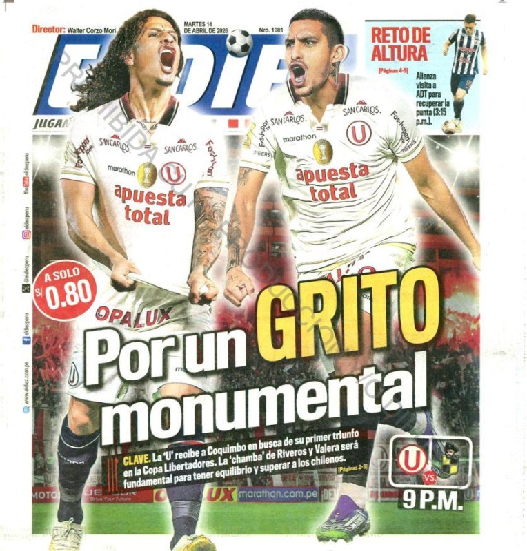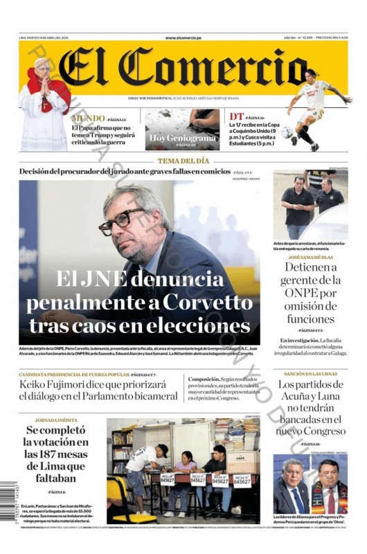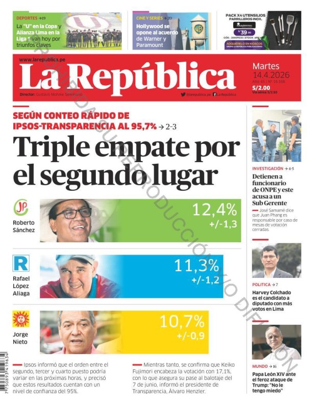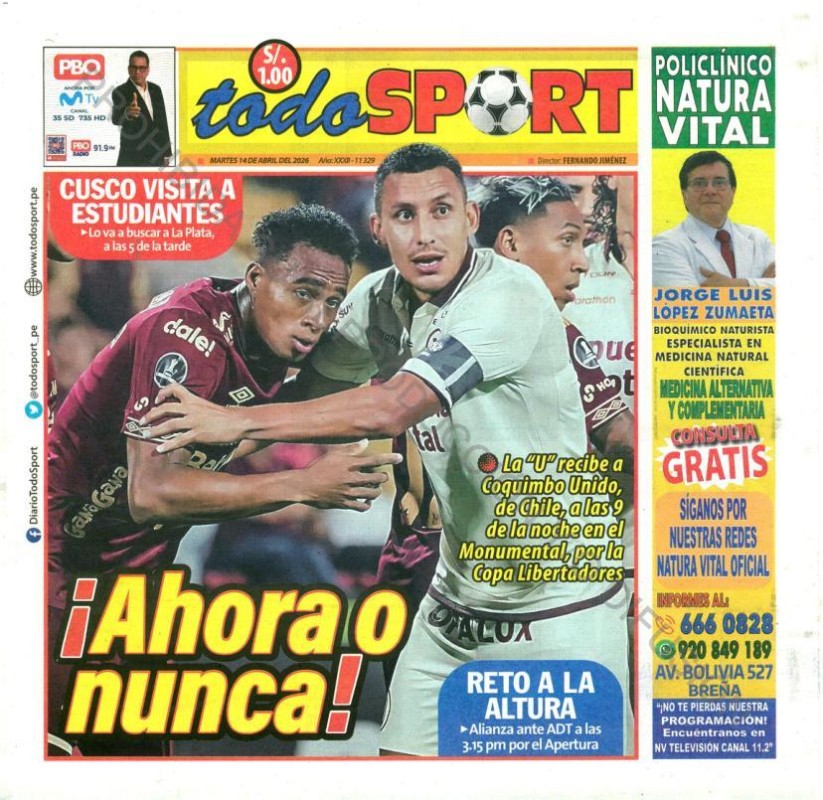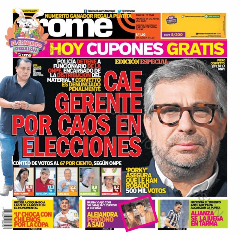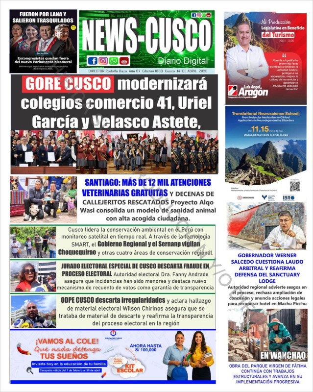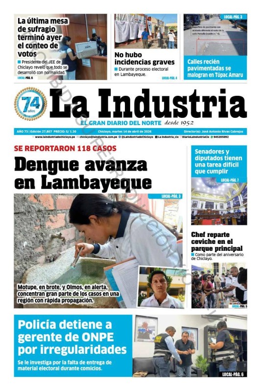 PORTADAS DE PRINCIPALES DIARIOS NACIONALES Y REGIONALES – MARTES 14 DE ABRIL DE 2026