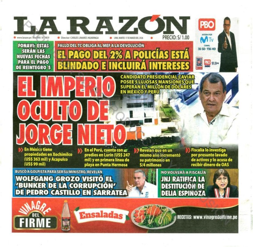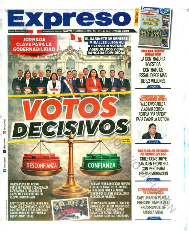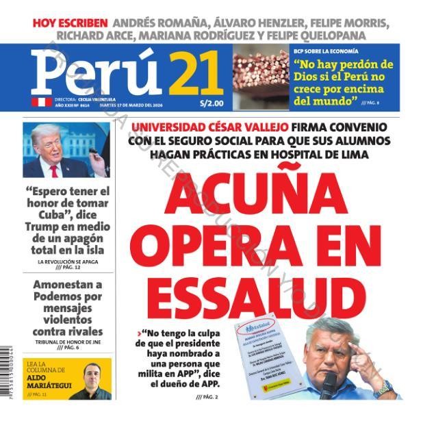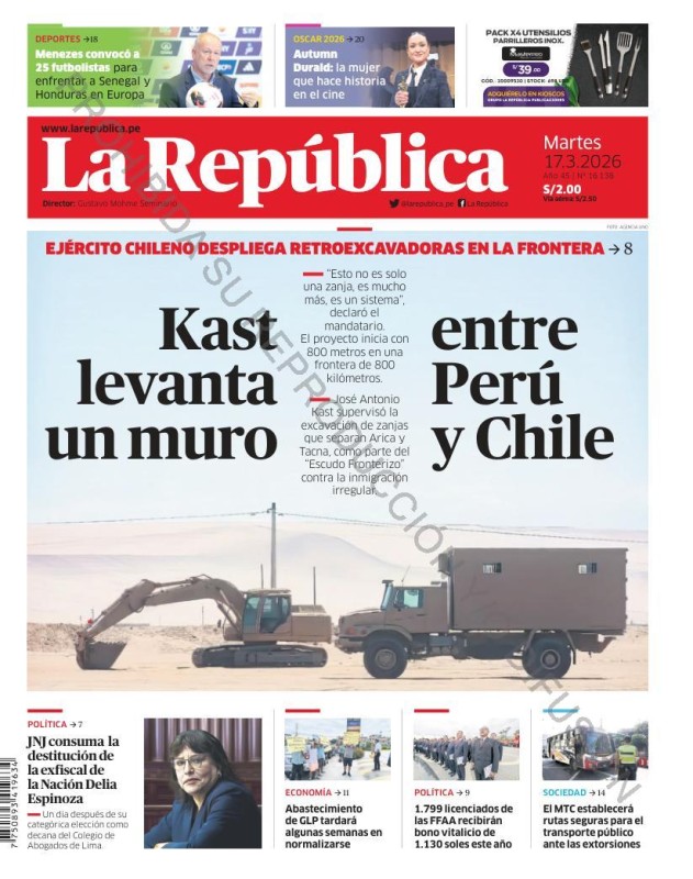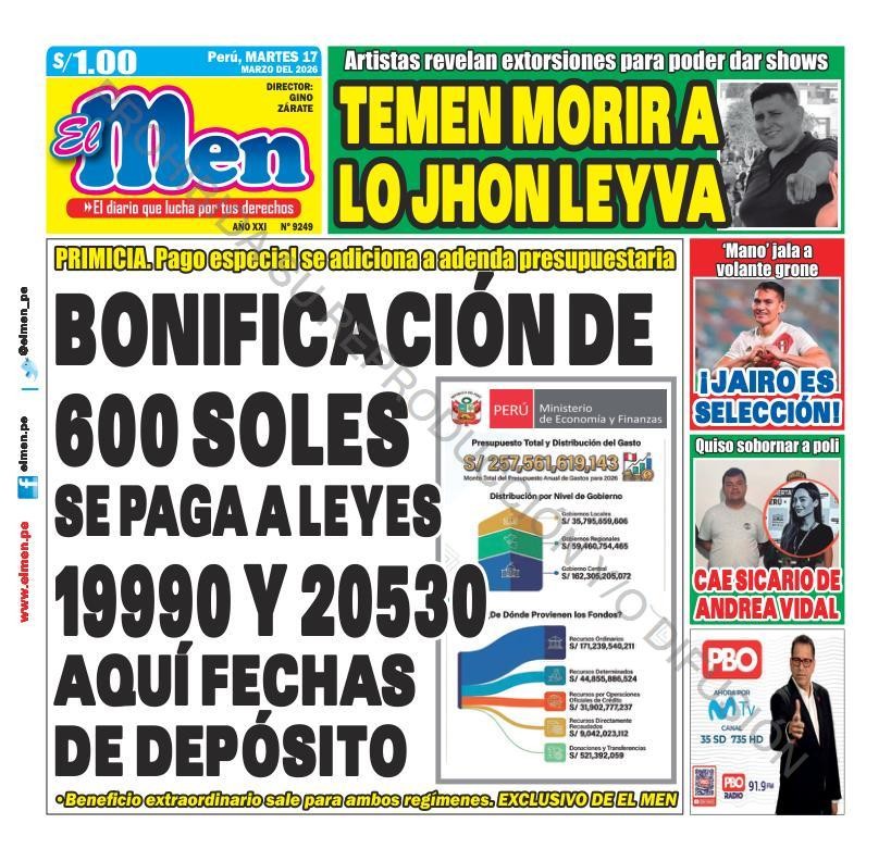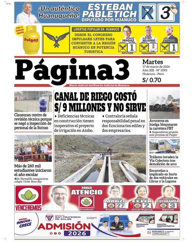 PORTADAS DE PRINCIPALES DIARIOS NACIONALES Y REGIONALES – MARTES 17 DE MARZO DE 2026
