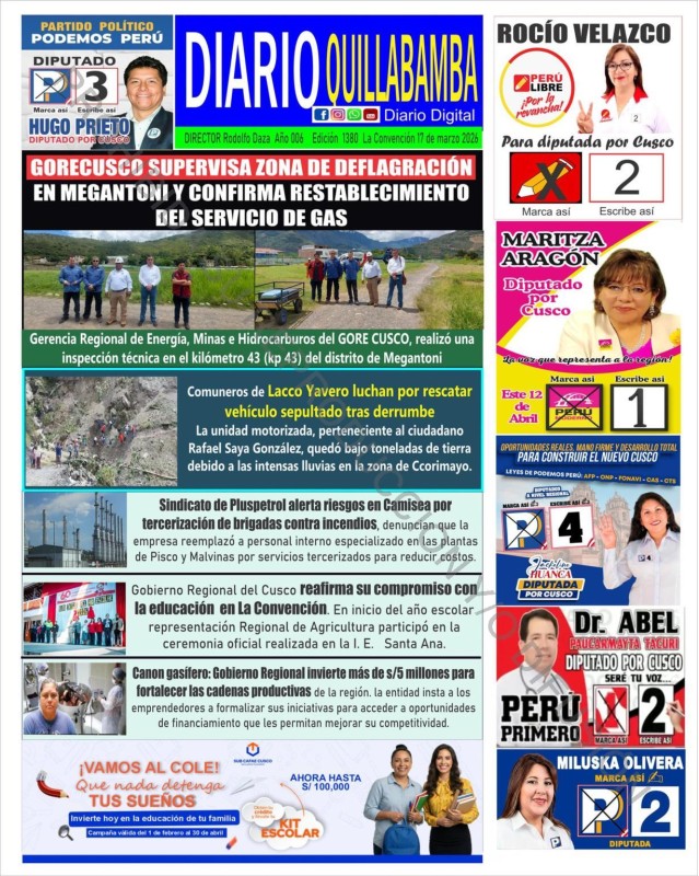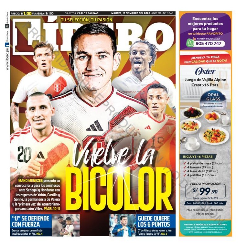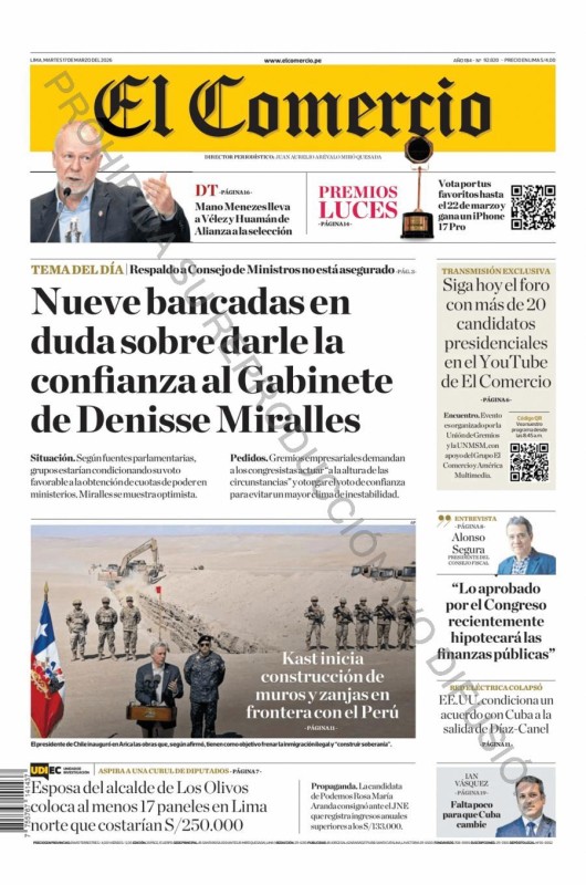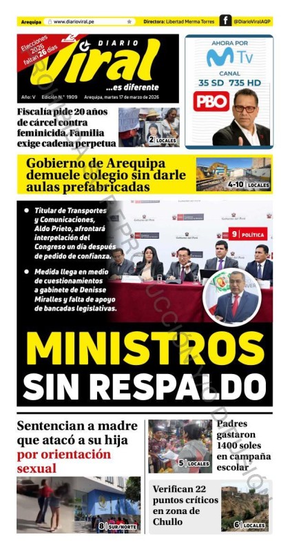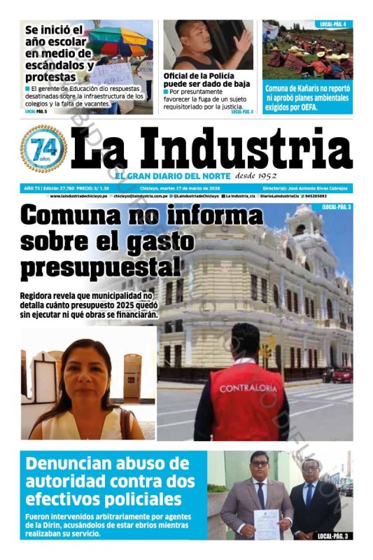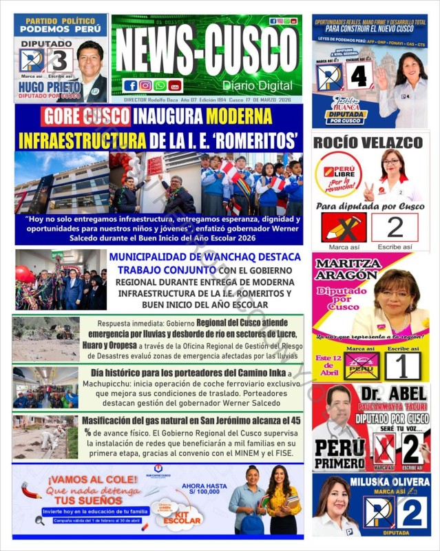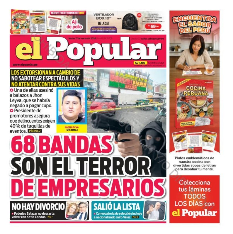 PORTADAS DE PRINCIPALES DIARIOS NACIONALES Y REGIONALES – MARTES 17 DE MARZO DE 2026