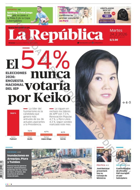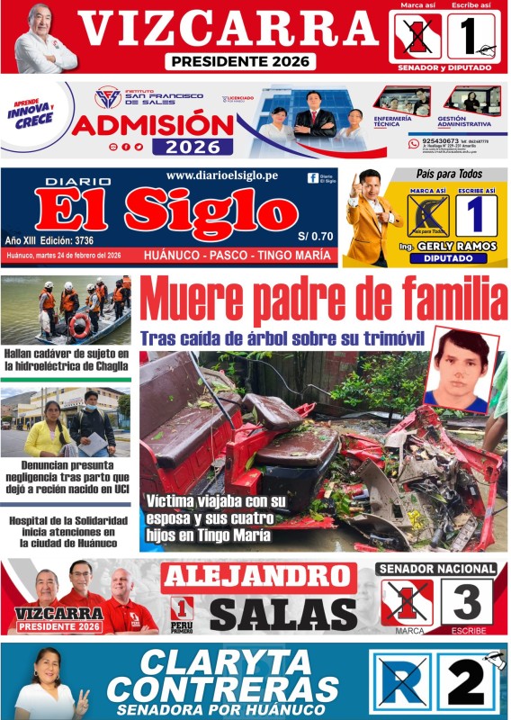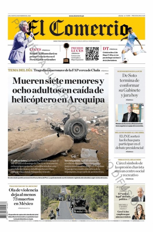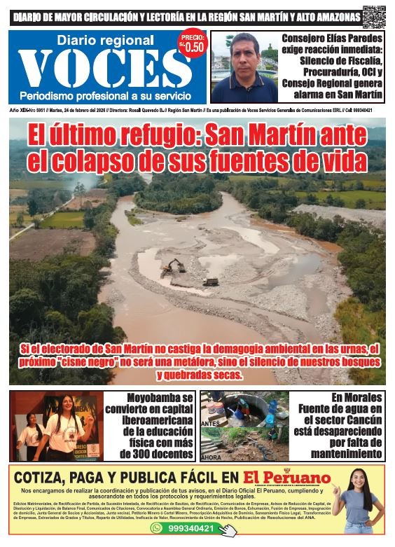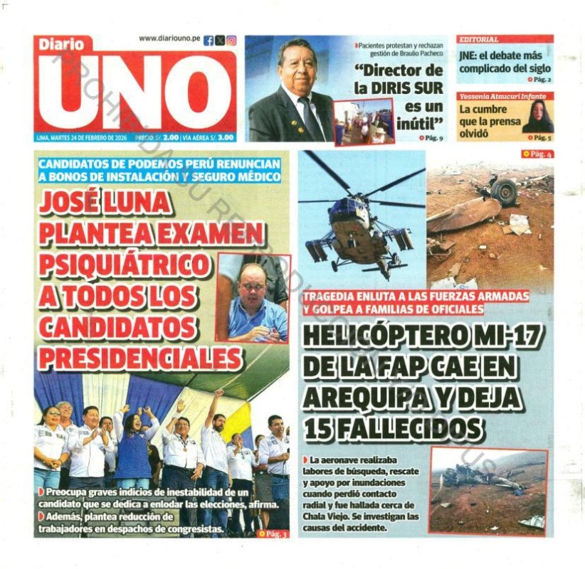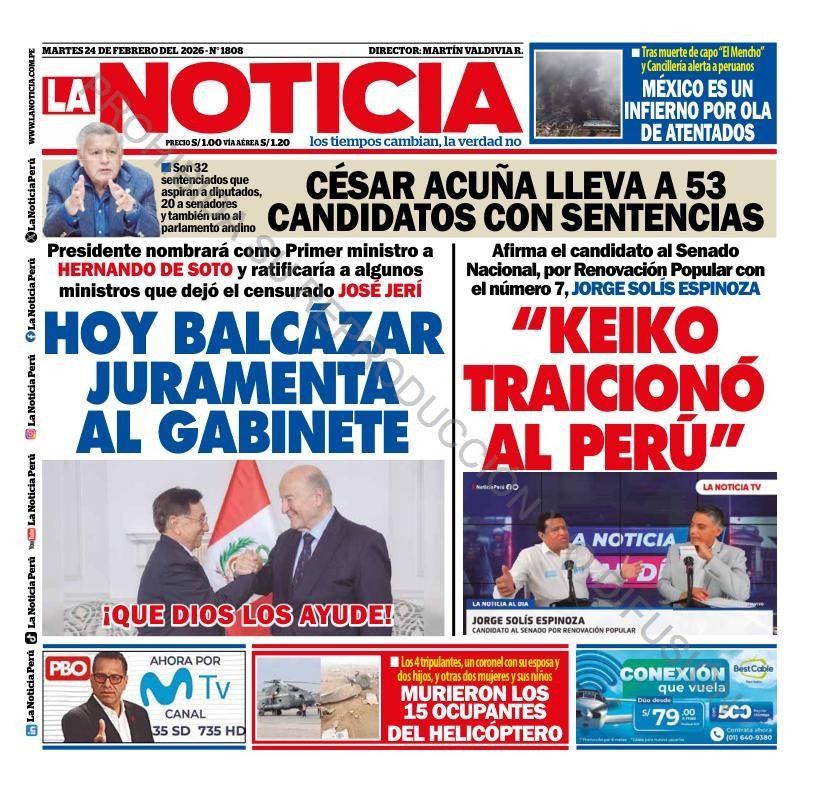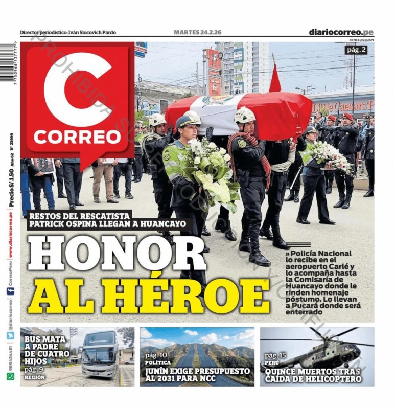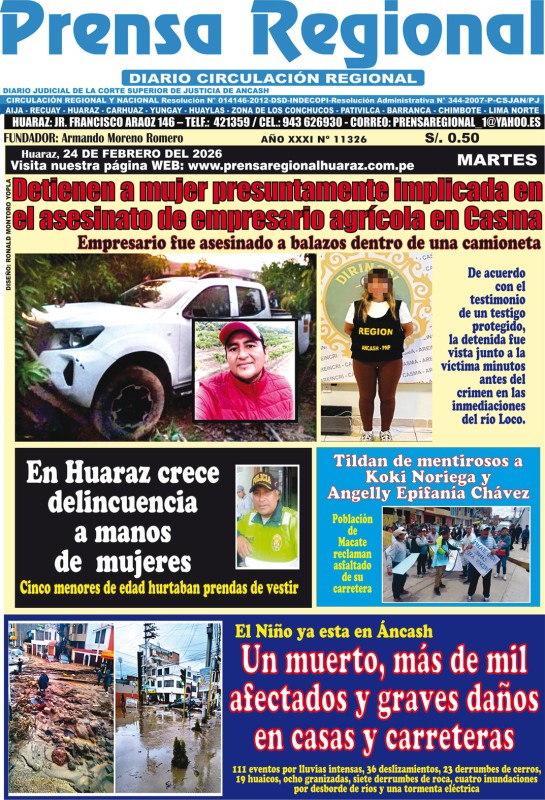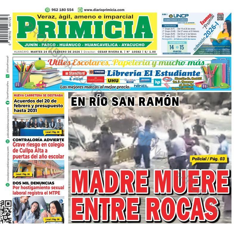 PORTADAS DE PRINCIPALES DIARIOS NACIONALES Y REGIONALES – MARTES 24 DE FEBRERO 2026