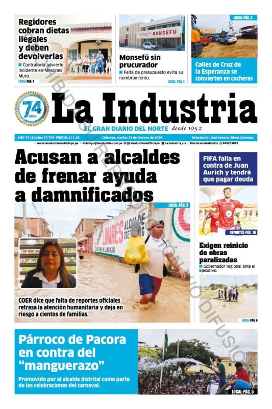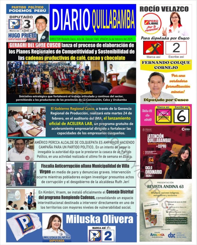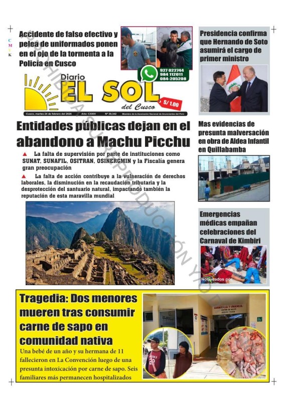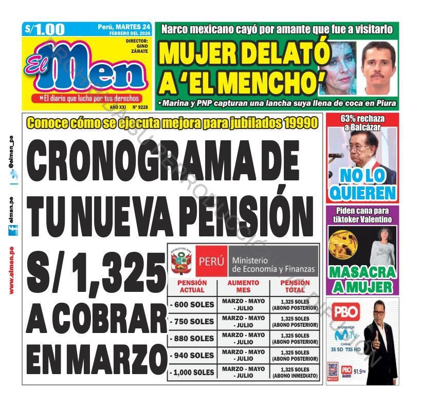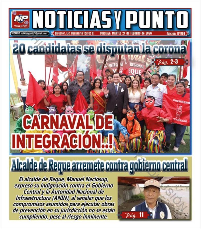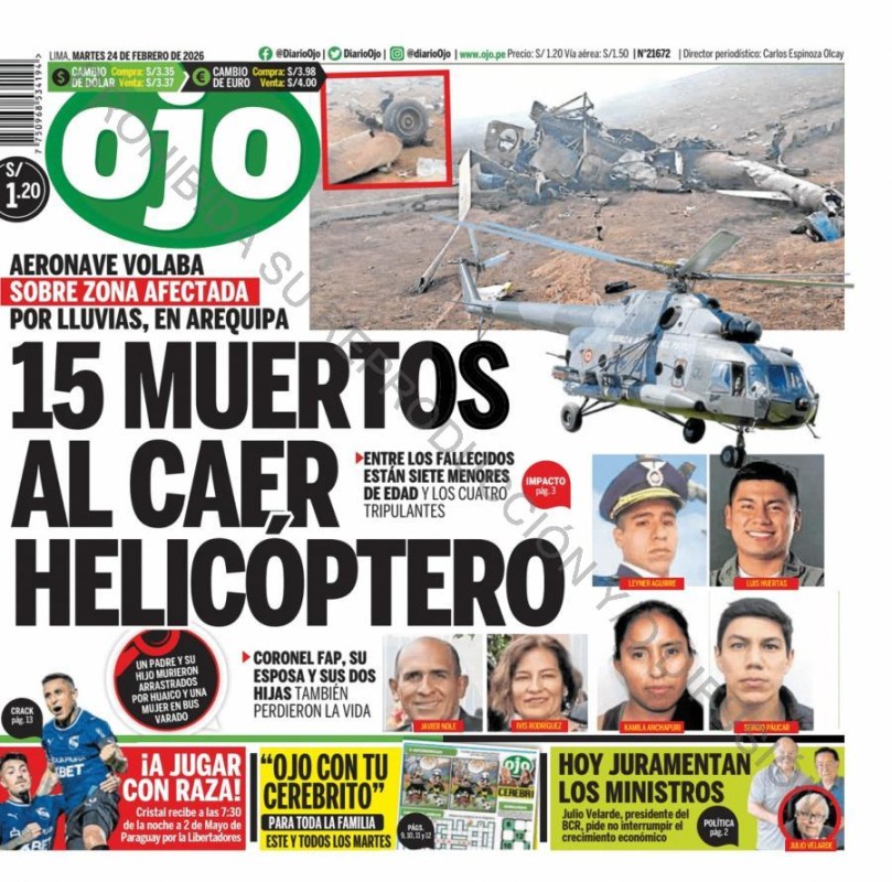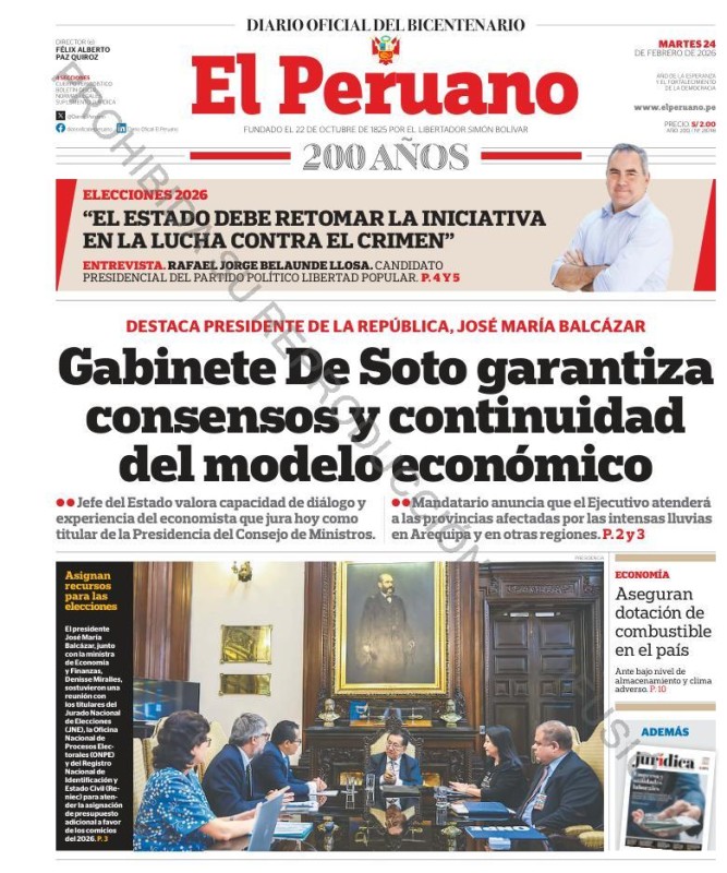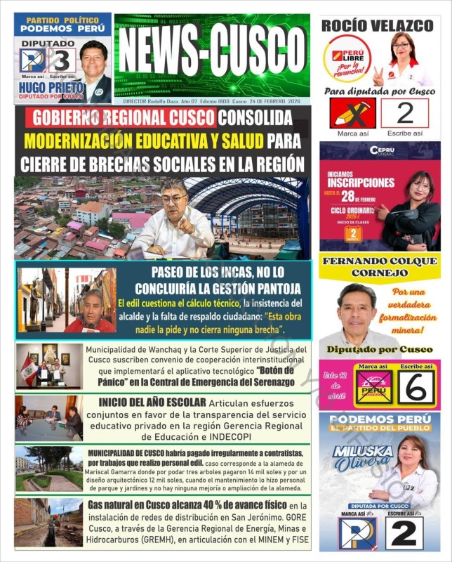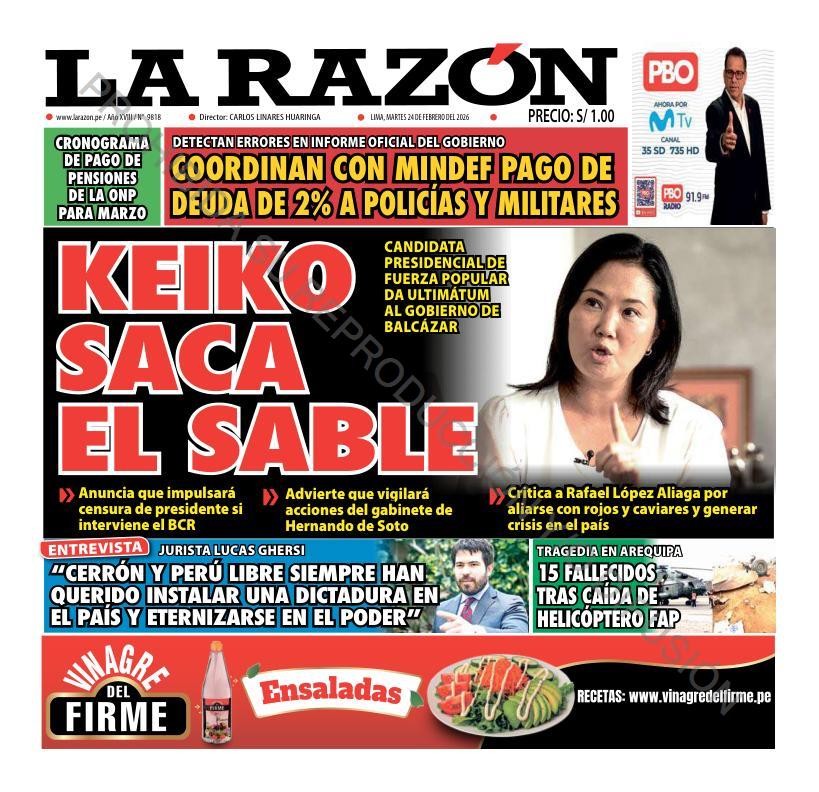 PORTADAS DE PRINCIPALES DIARIOS NACIONALES Y REGIONALES – MARTES 24 DE FEBRERO 2026