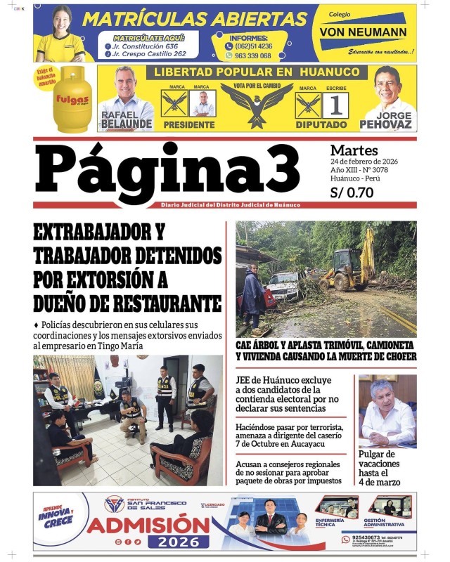 PORTADAS DE PRINCIPALES DIARIOS NACIONALES Y REGIONALES – JUEVES 26 DE FEBRERO 2026