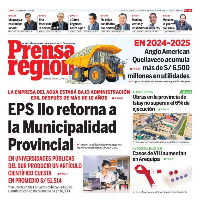PORTADAS DE PRINCIPALES DIARIOS NACIONALES Y REGIONALES – LUNES 23 DE FEBRERO 2026