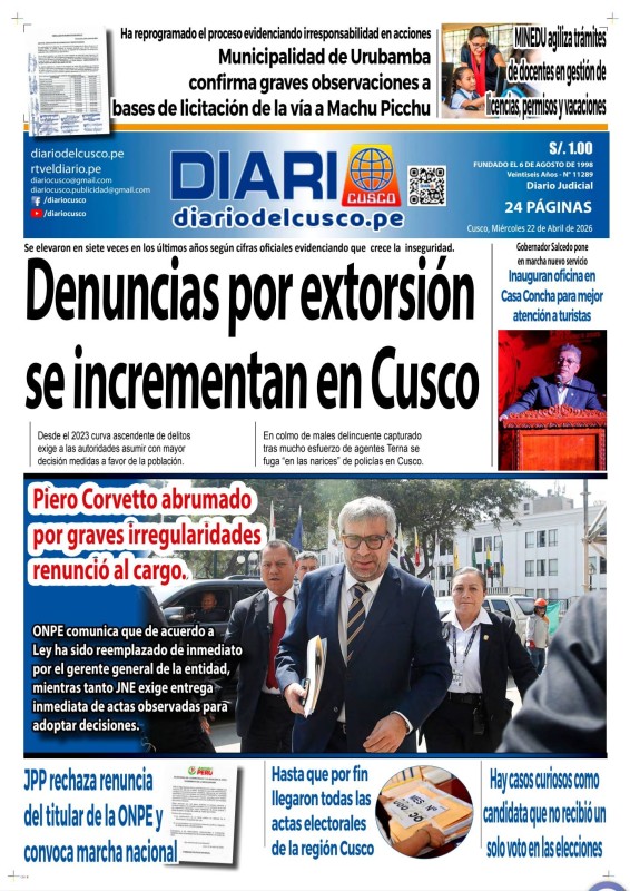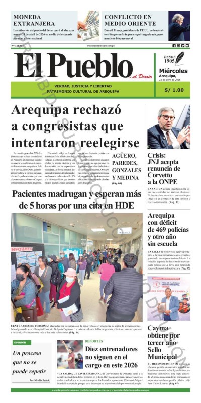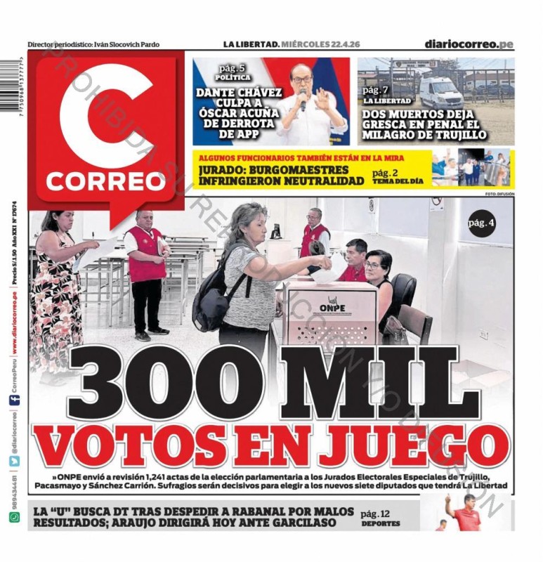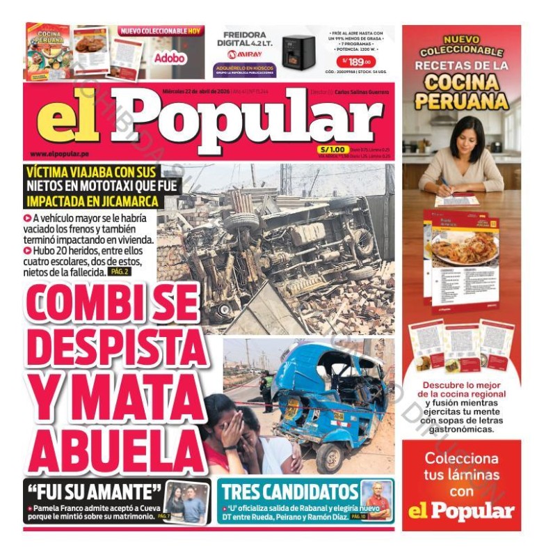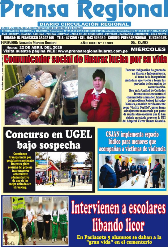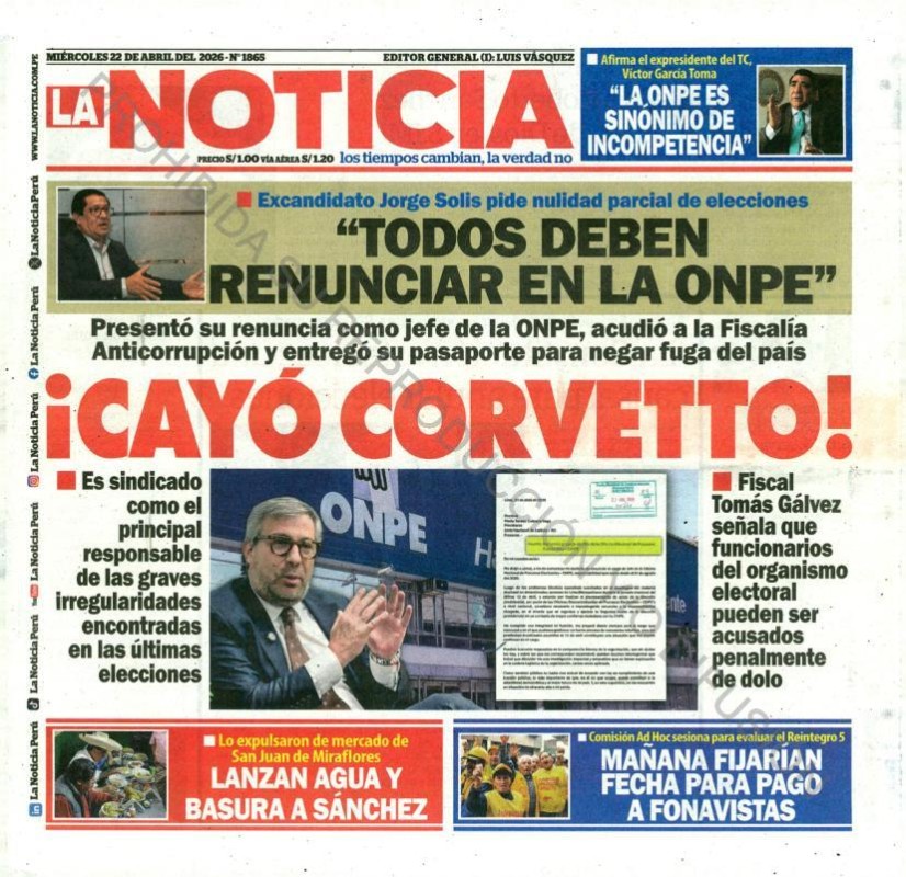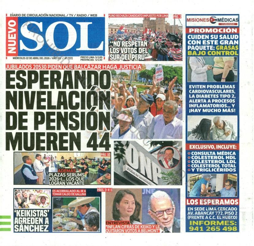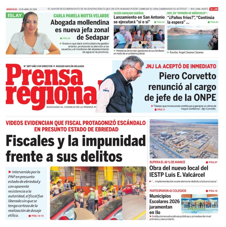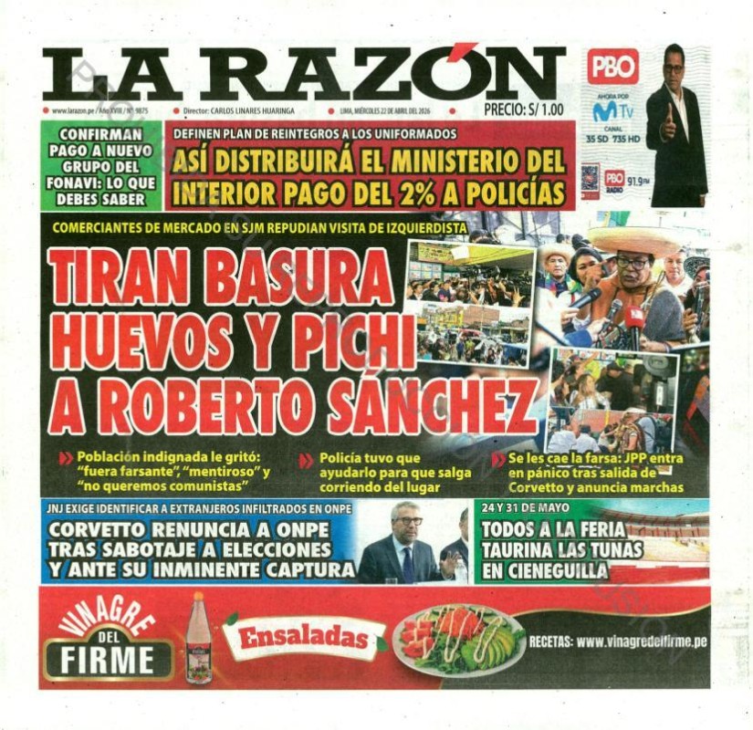 PORTADAS DE PRINCIPALES DIARIOS NACIONALES Y REGIONALES – MIÉRCOLES 22 DE ABRIL DE 2026