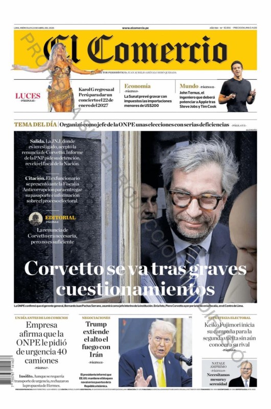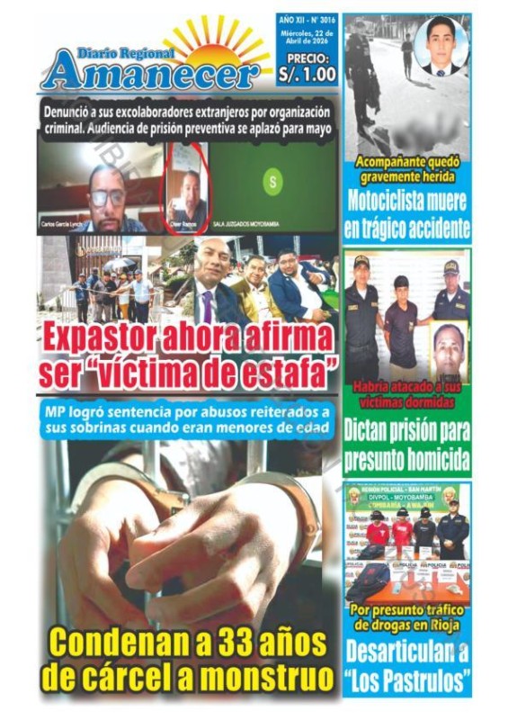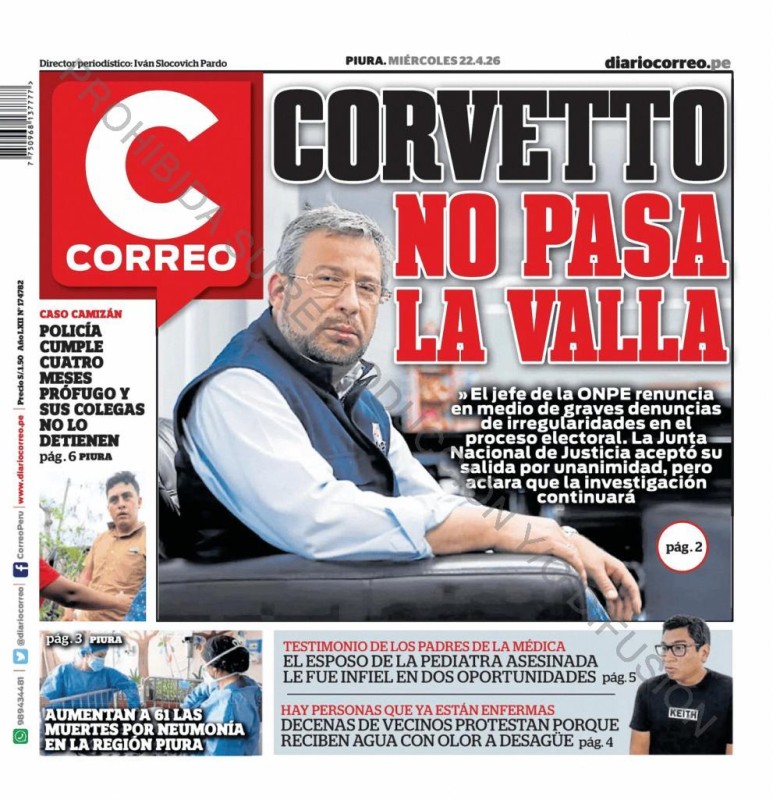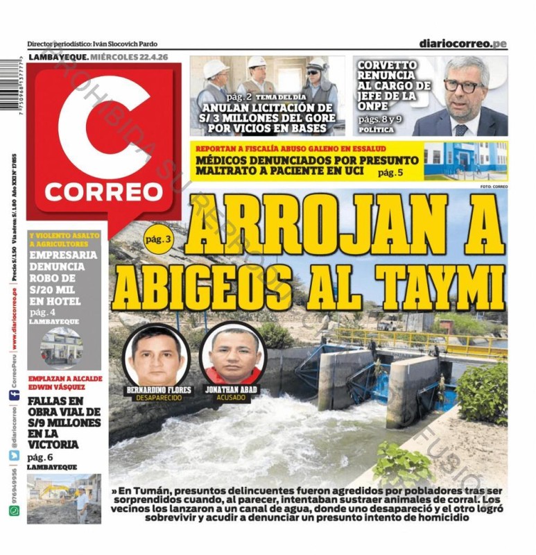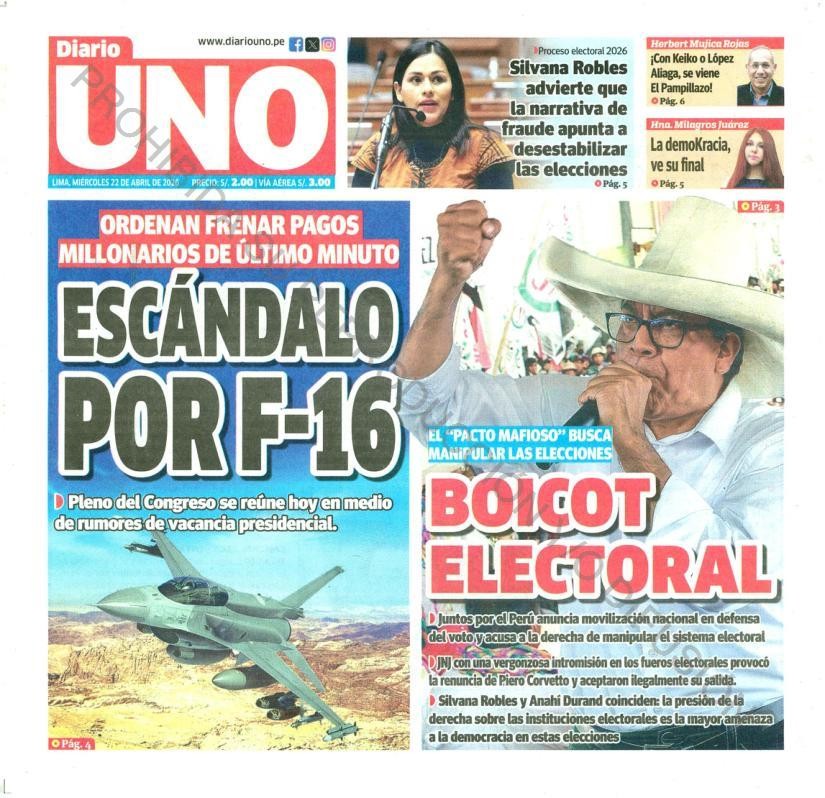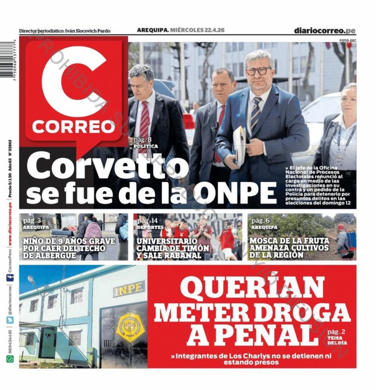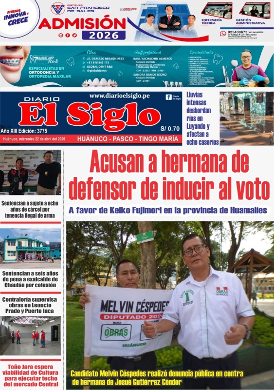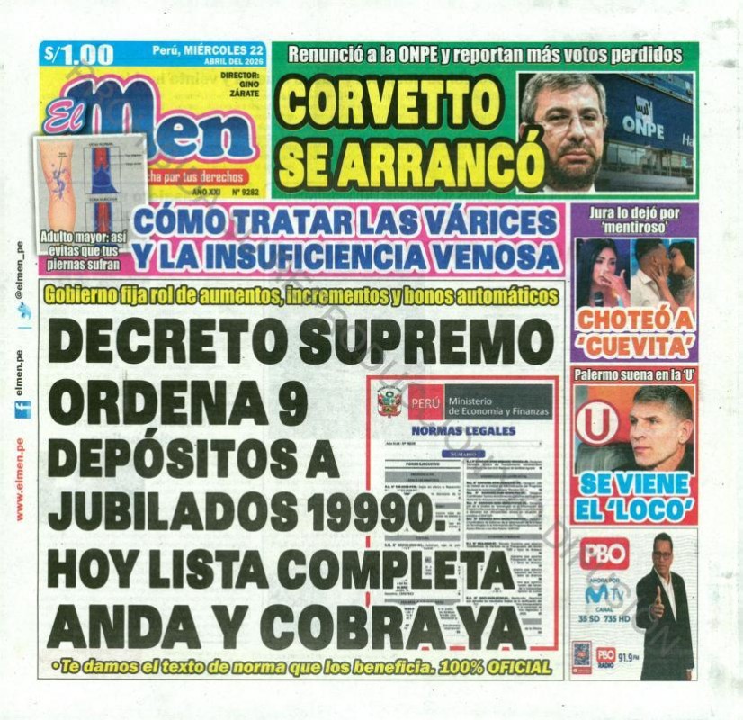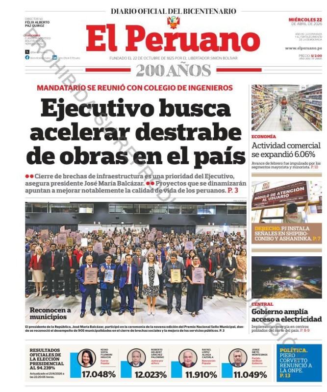 PORTADAS DE PRINCIPALES DIARIOS NACIONALES Y REGIONALES – MIÉRCOLES 22 DE ABRIL DE 2026