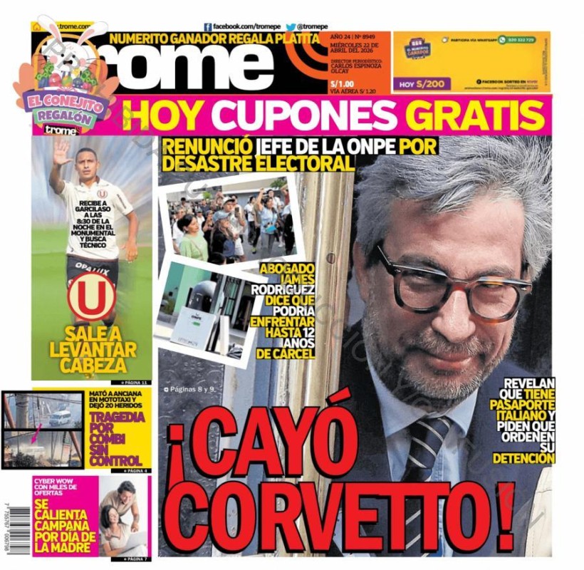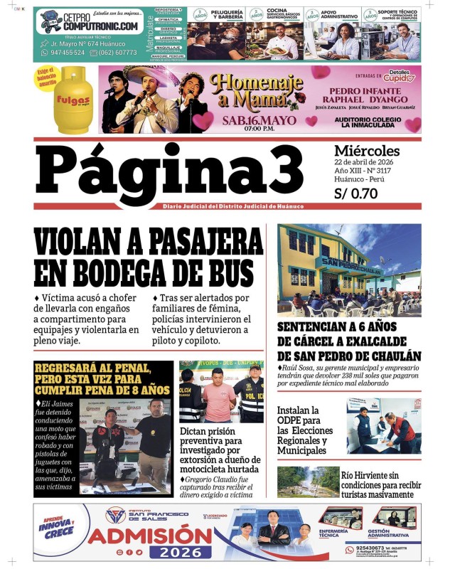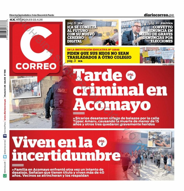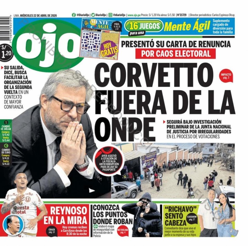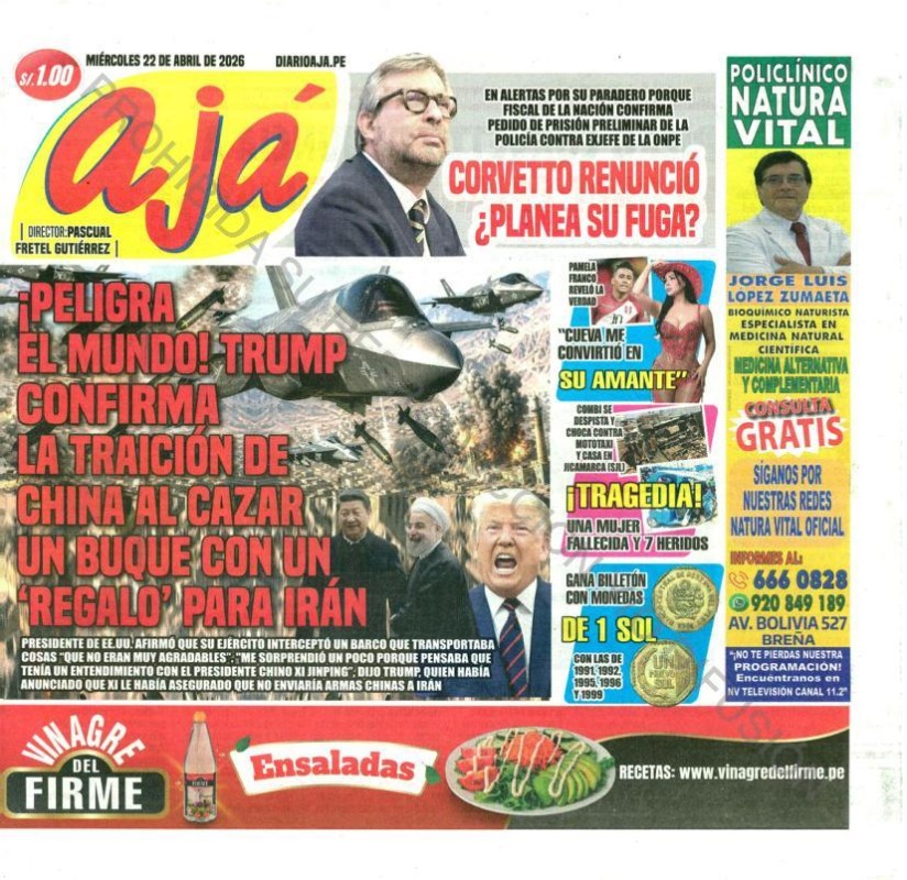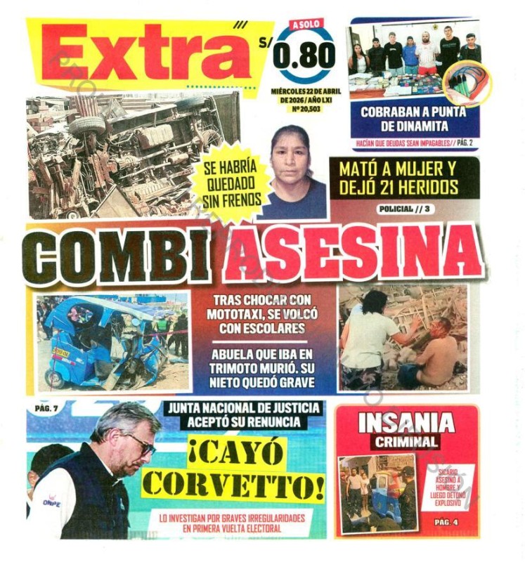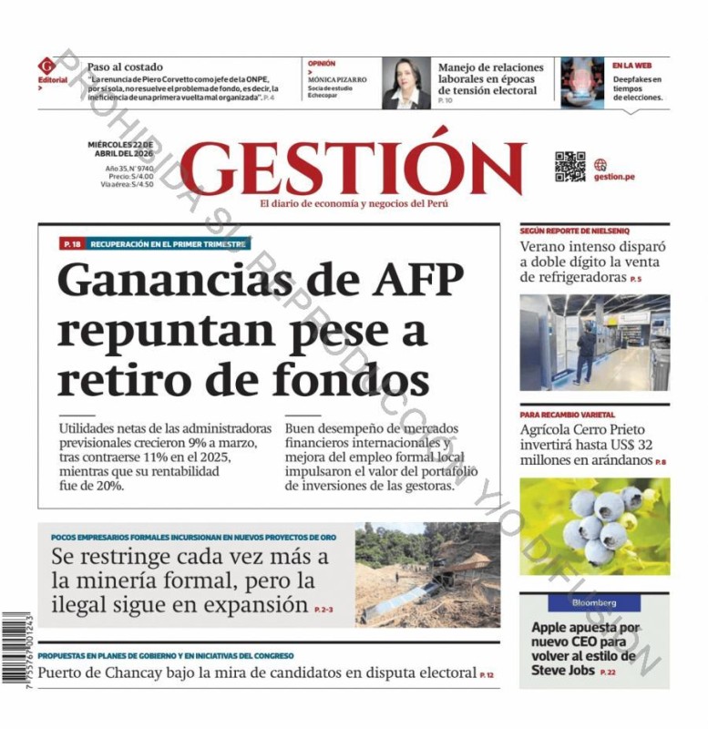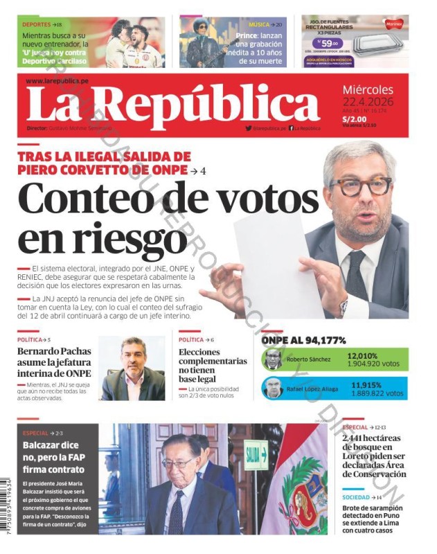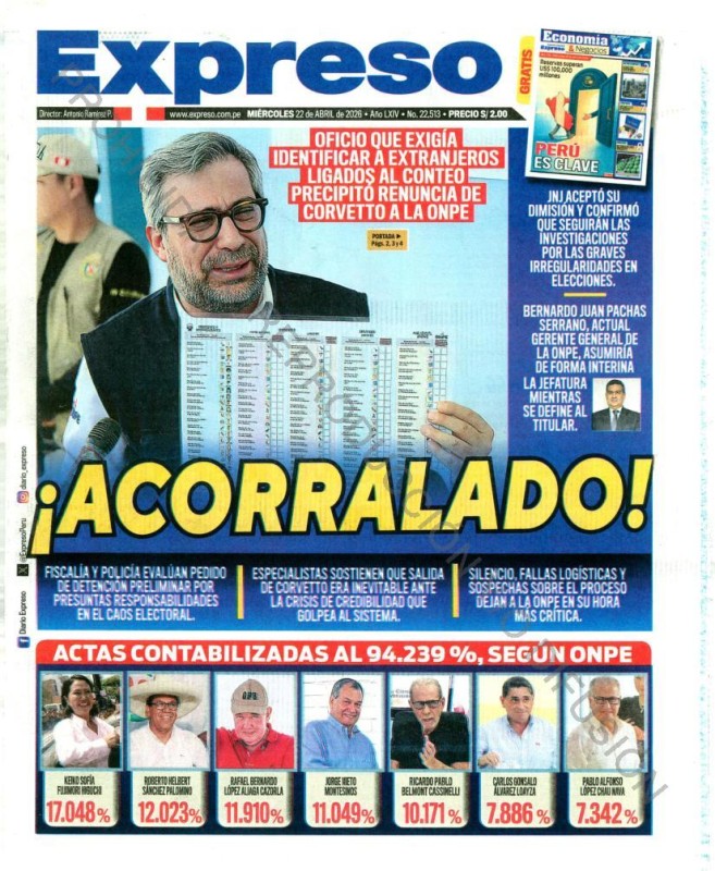 PORTADAS DE PRINCIPALES DIARIOS NACIONALES Y REGIONALES – MIÉRCOLES 22 DE ABRIL DE 2026
