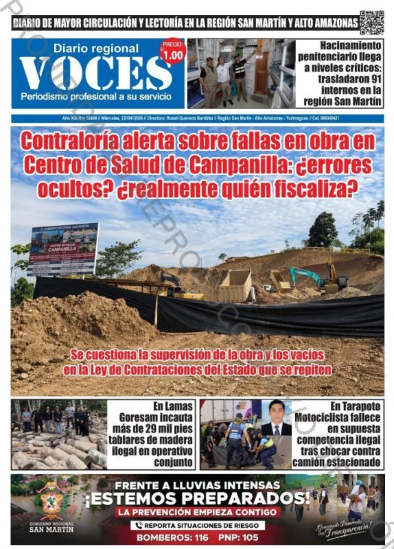 PORTADAS DE PRINCIPALES DIARIOS NACIONALES Y REGIONALES – JUEVES 23 DE ABRIL DE 2026