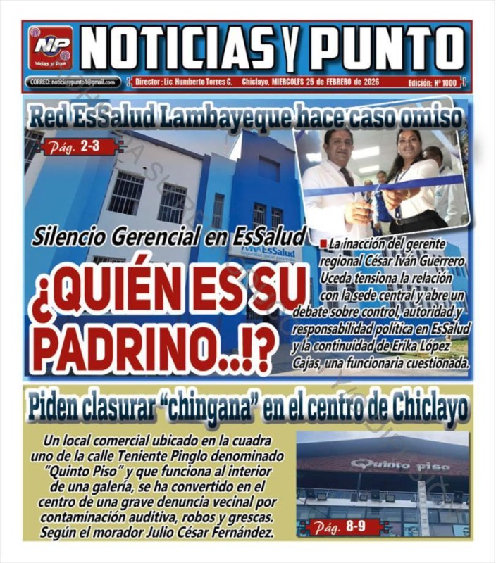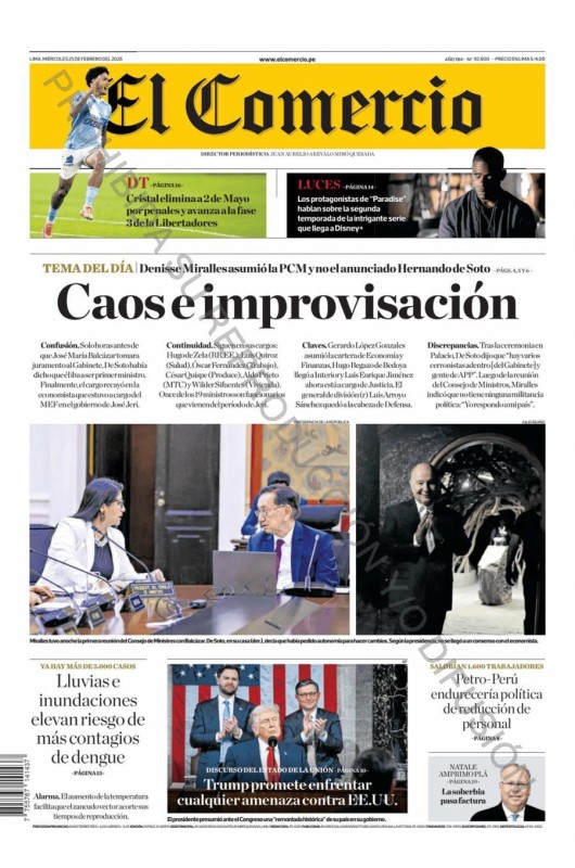 PORTADAS DE PRINCIPALES DIARIOS NACIONALES Y REGIONALES – JUEVES 26 DE FEBRERO 2026