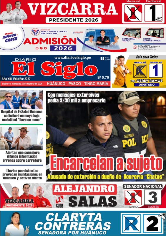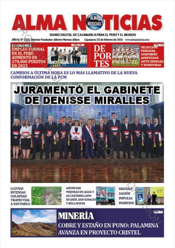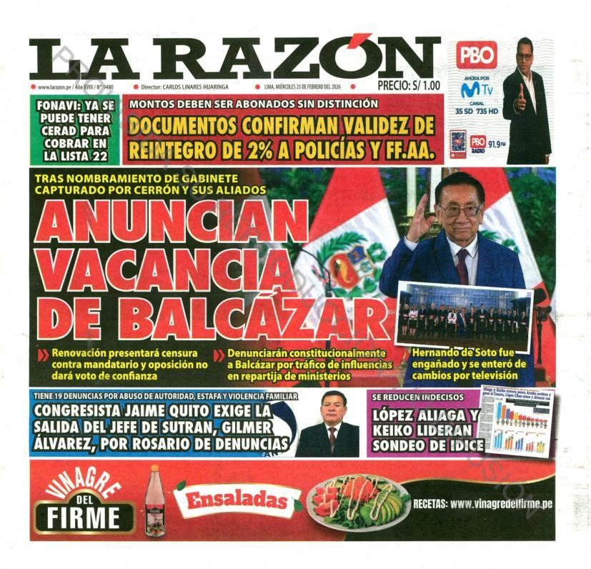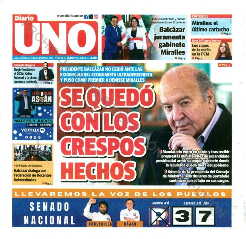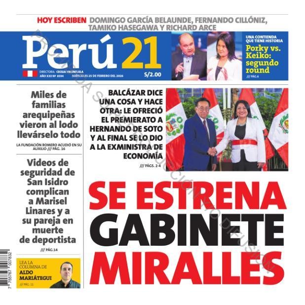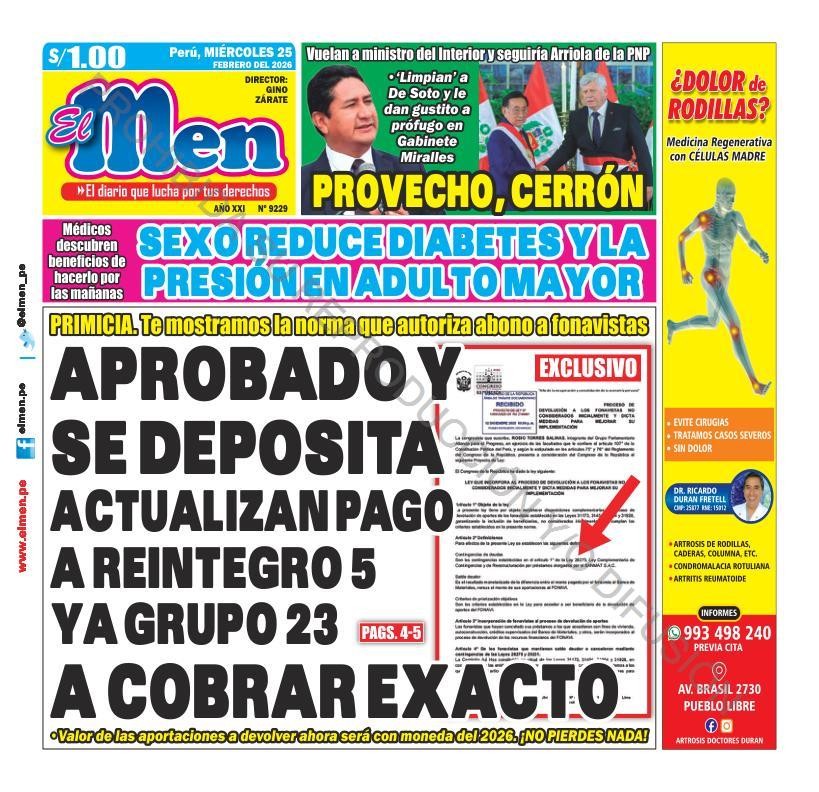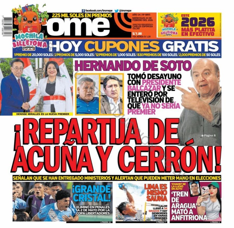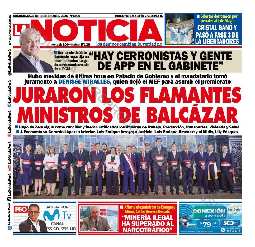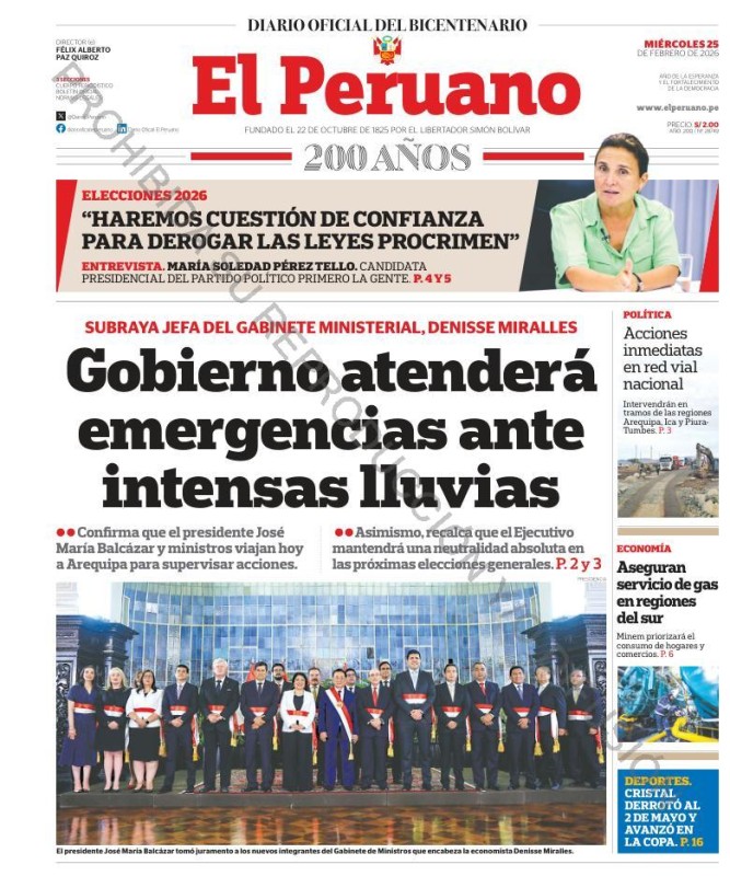 PORTADAS DE PRINCIPALES DIARIOS NACIONALES Y REGIONALES – MIÉRCOLES 25 DE FEBRERO 2026