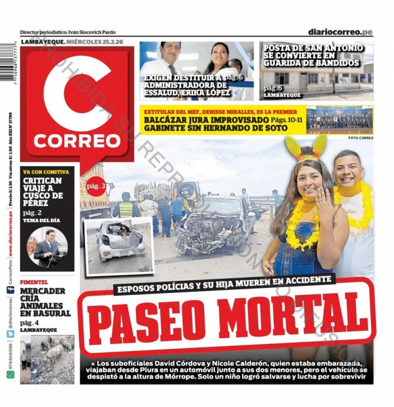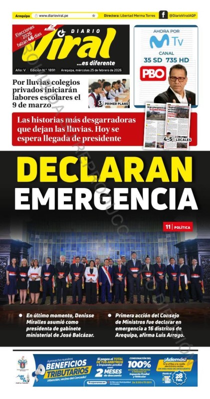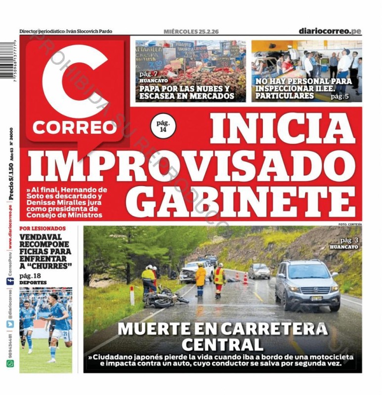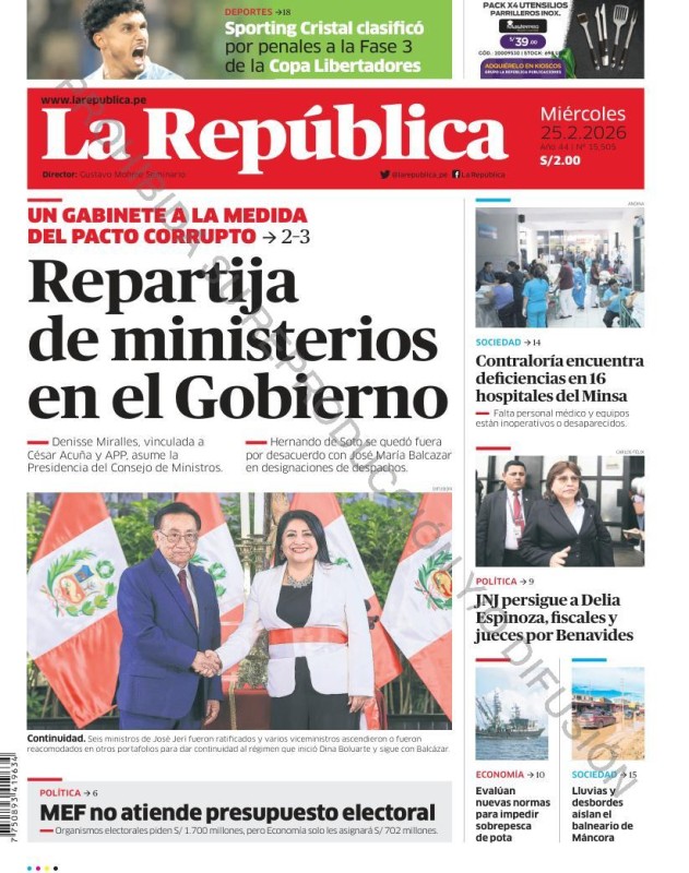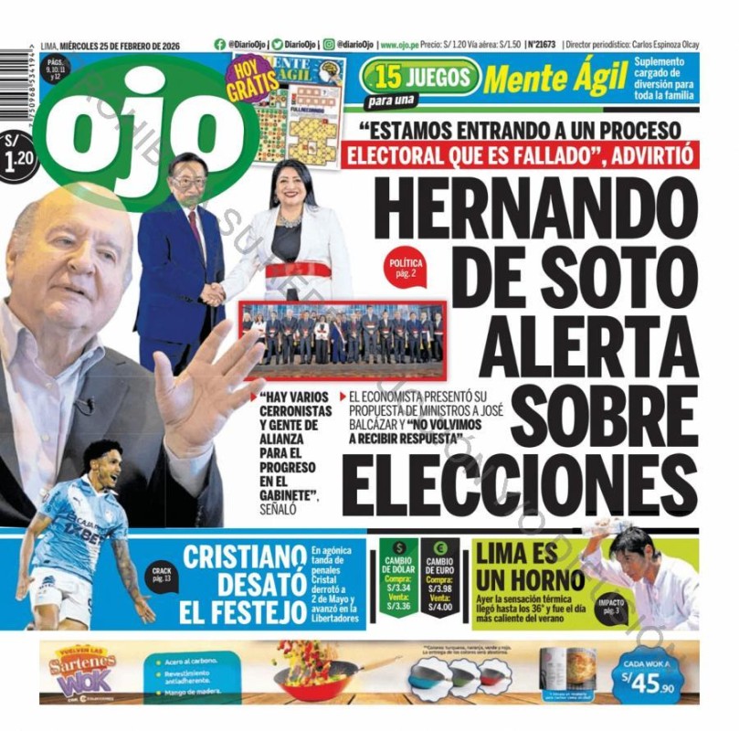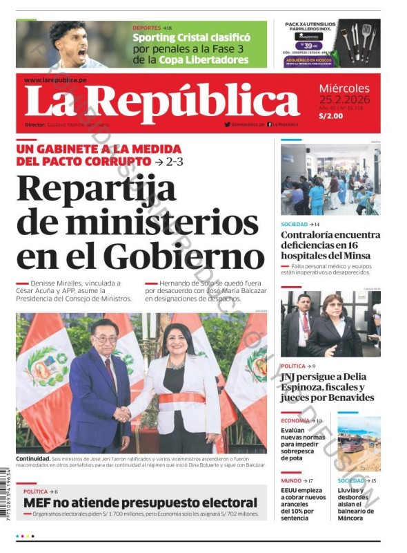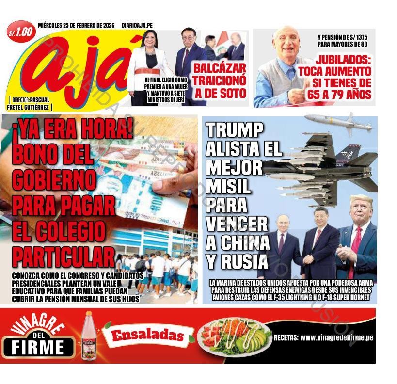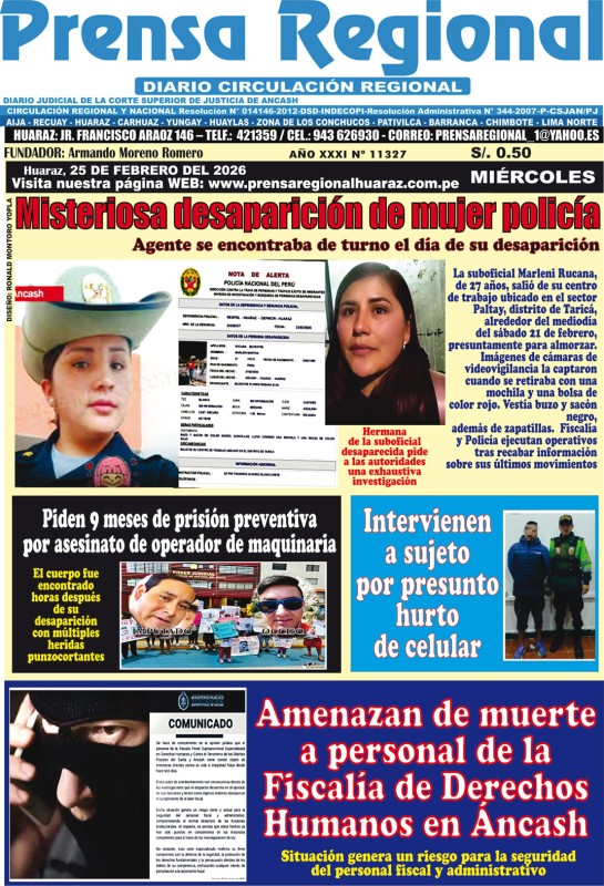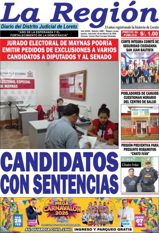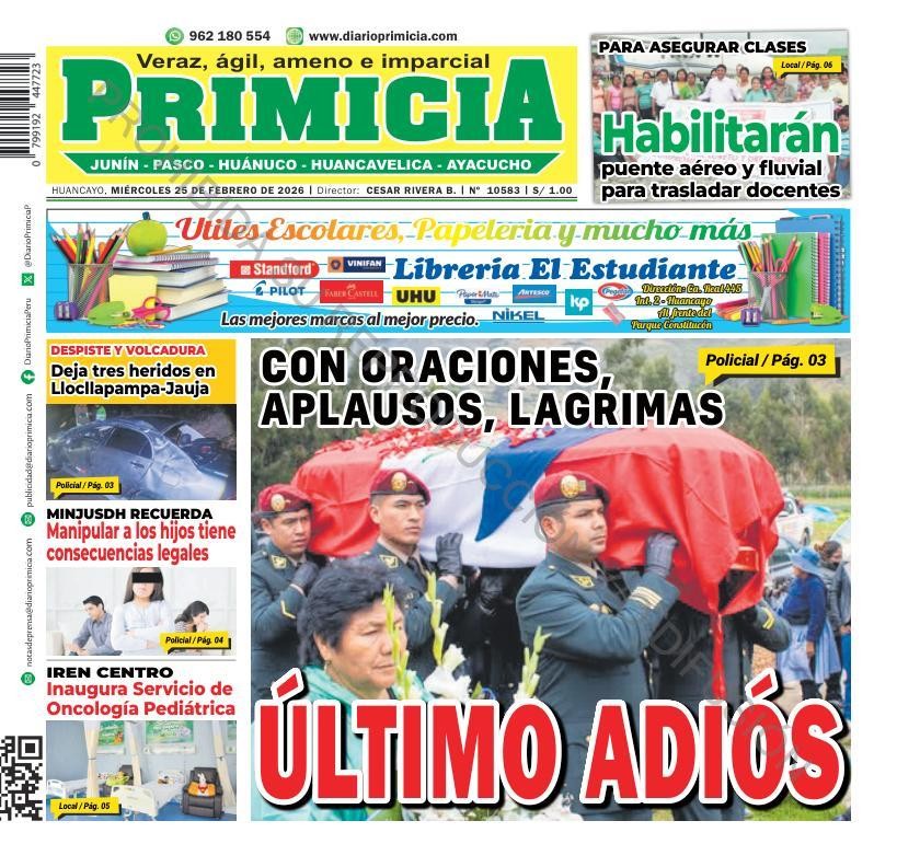 PORTADAS DE PRINCIPALES DIARIOS NACIONALES Y REGIONALES – MIÉRCOLES 25 DE FEBRERO 2026