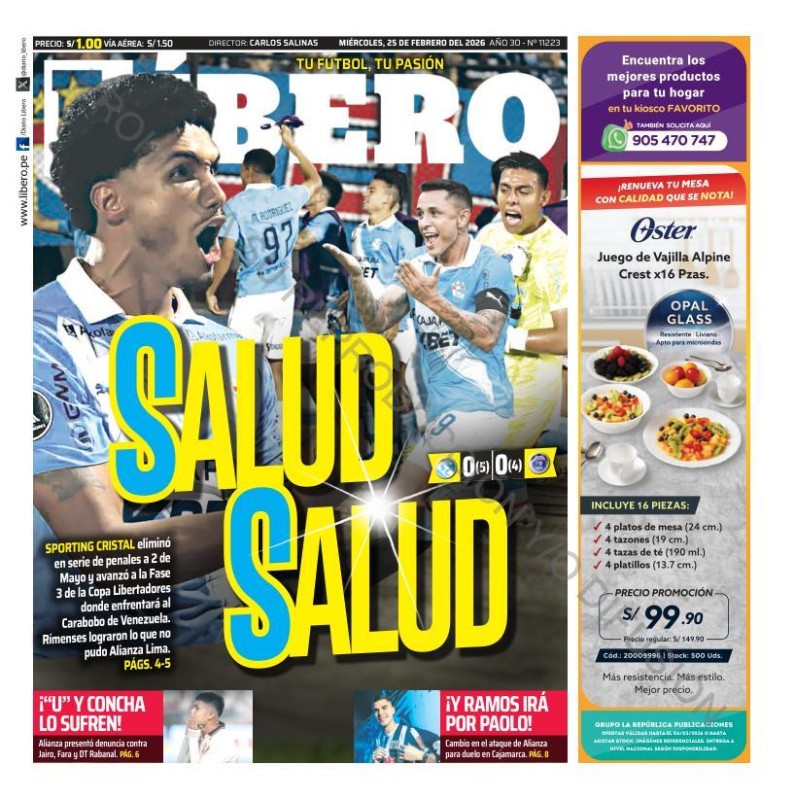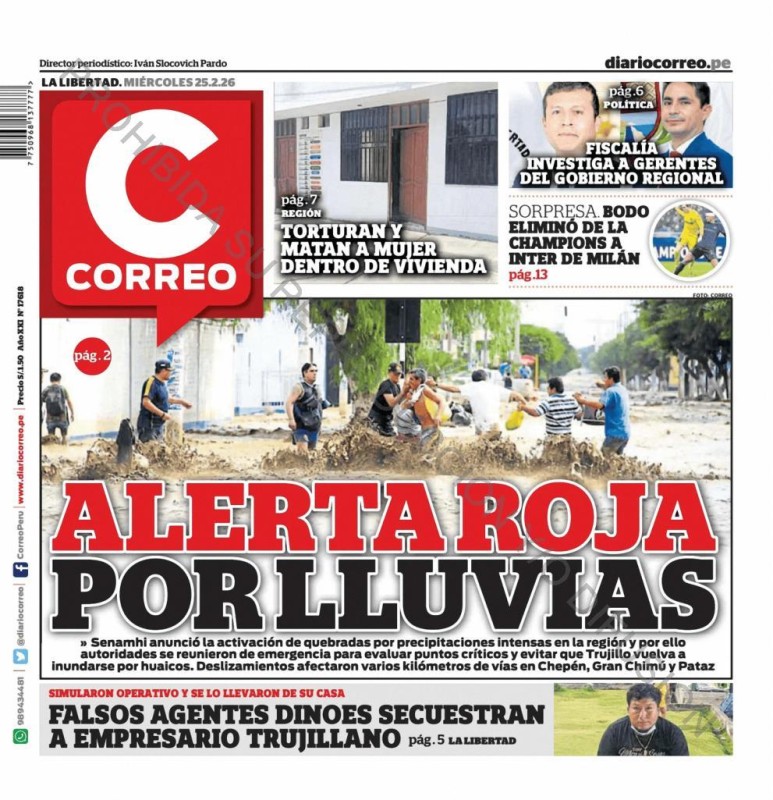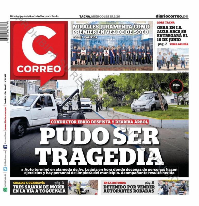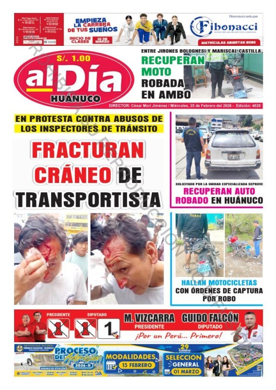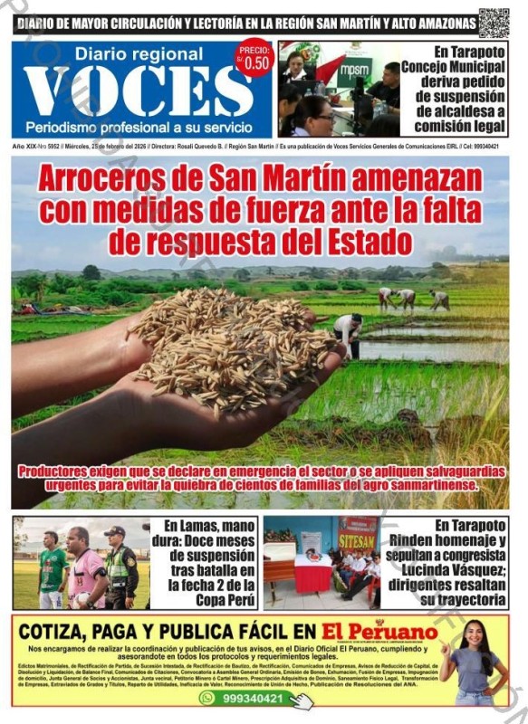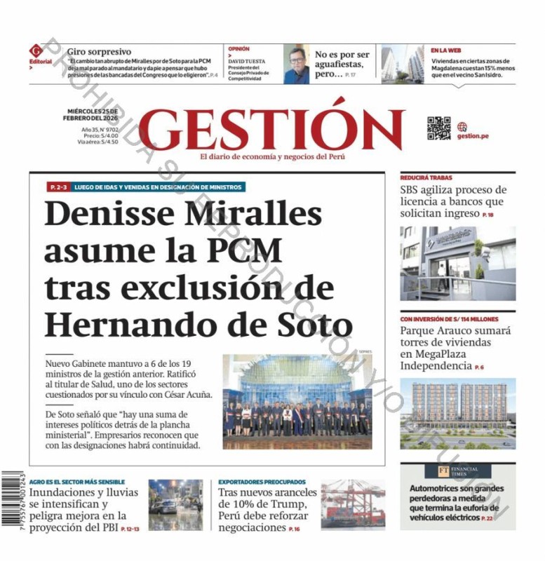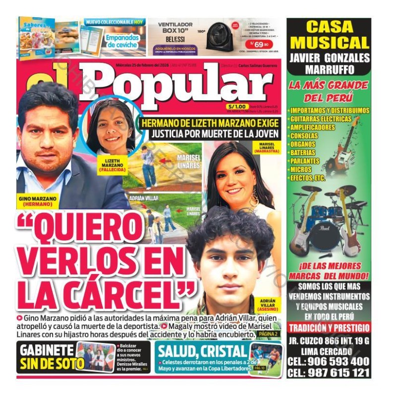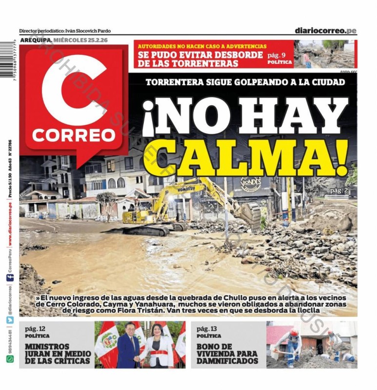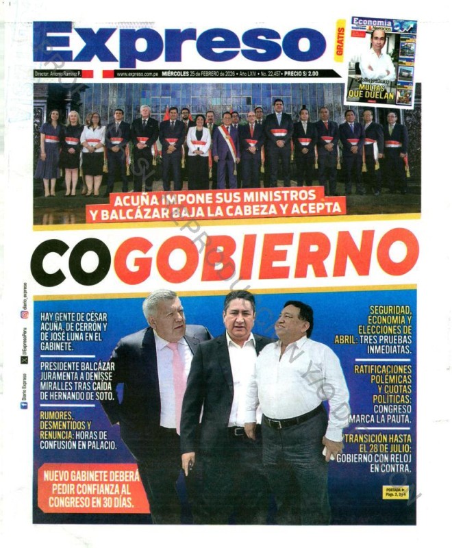 PORTADAS DE PRINCIPALES DIARIOS NACIONALES Y REGIONALES – MIÉRCOLES 25 DE FEBRERO 2026