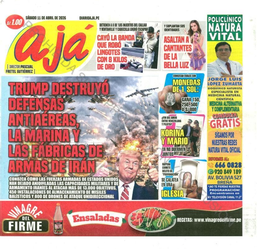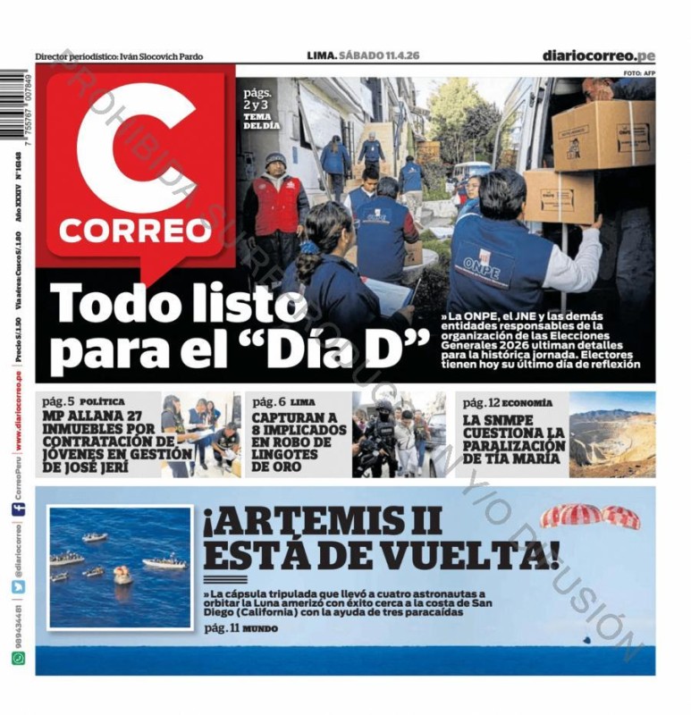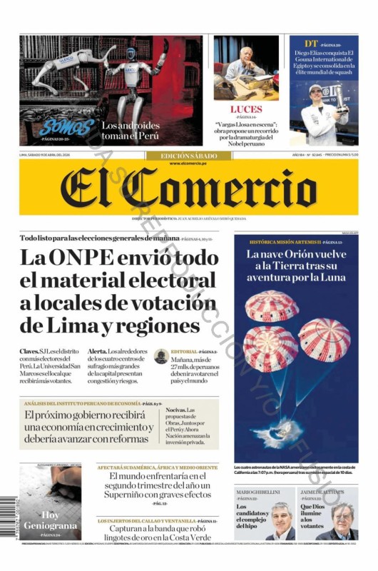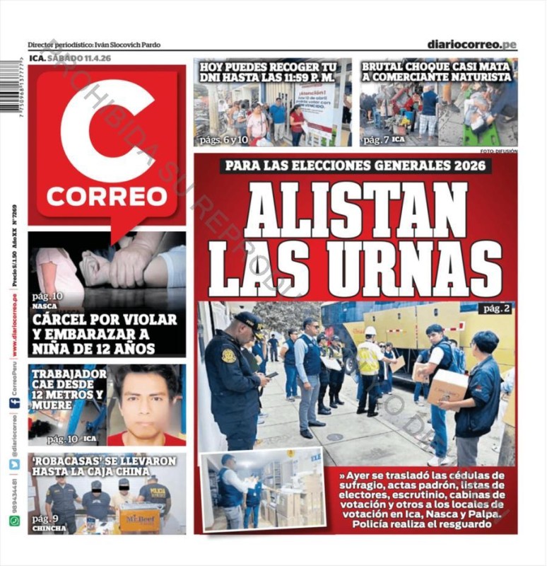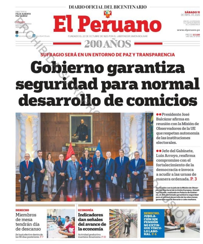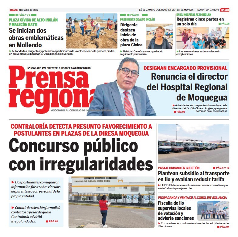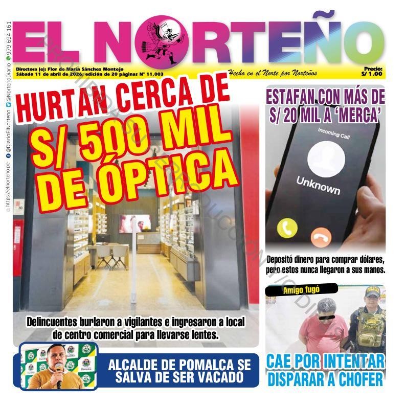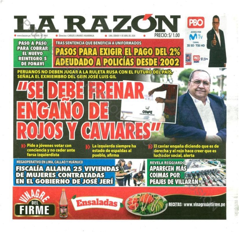 PORTADAS DE PRINCIPALES DIARIOS NACIONALES Y REGIONALES – SÁBADO 11 DE ABRIL DE 2026
