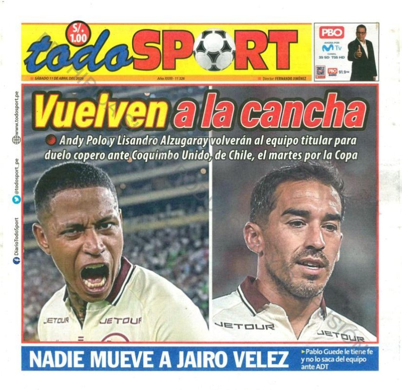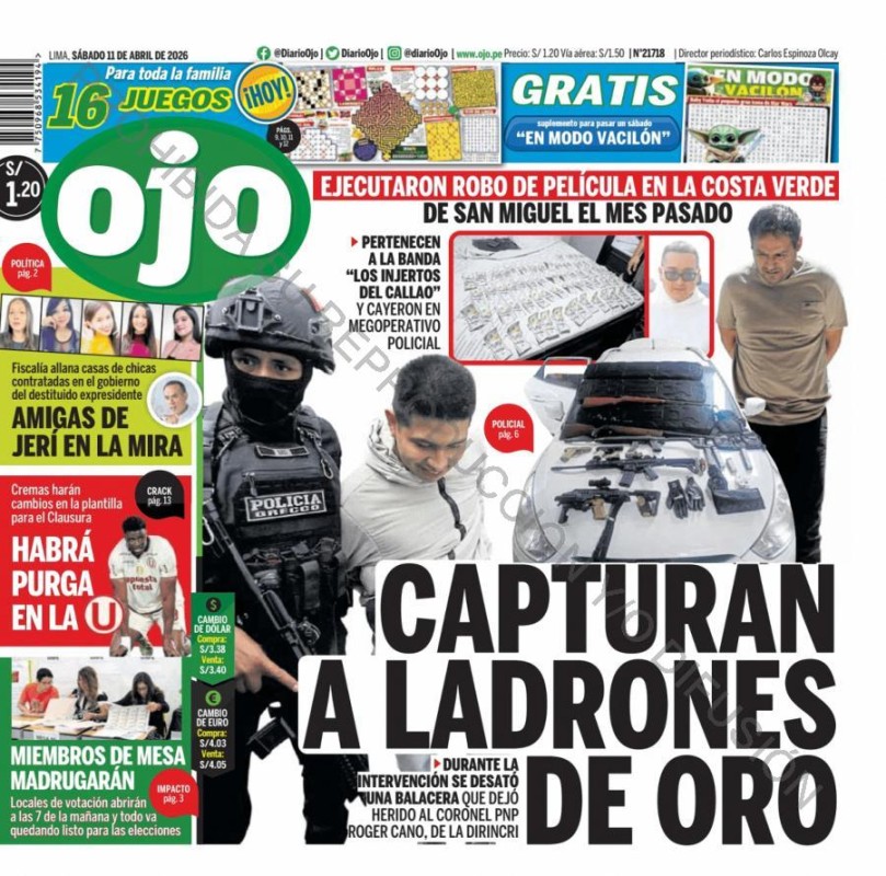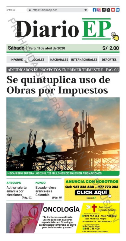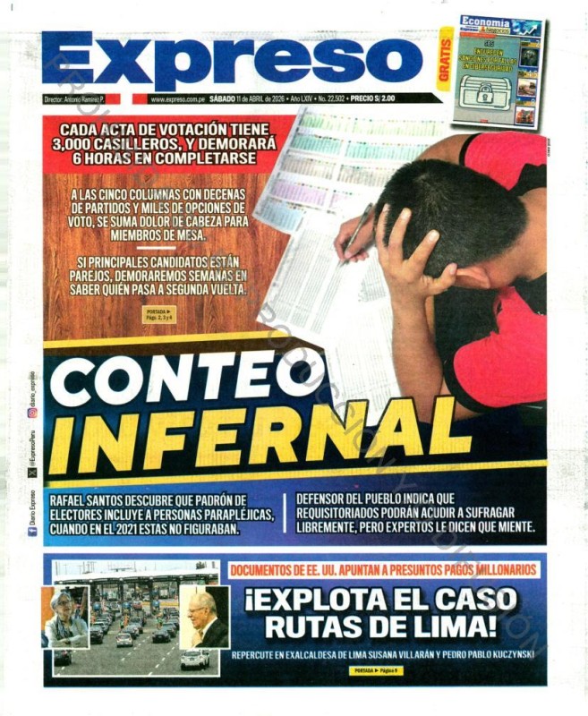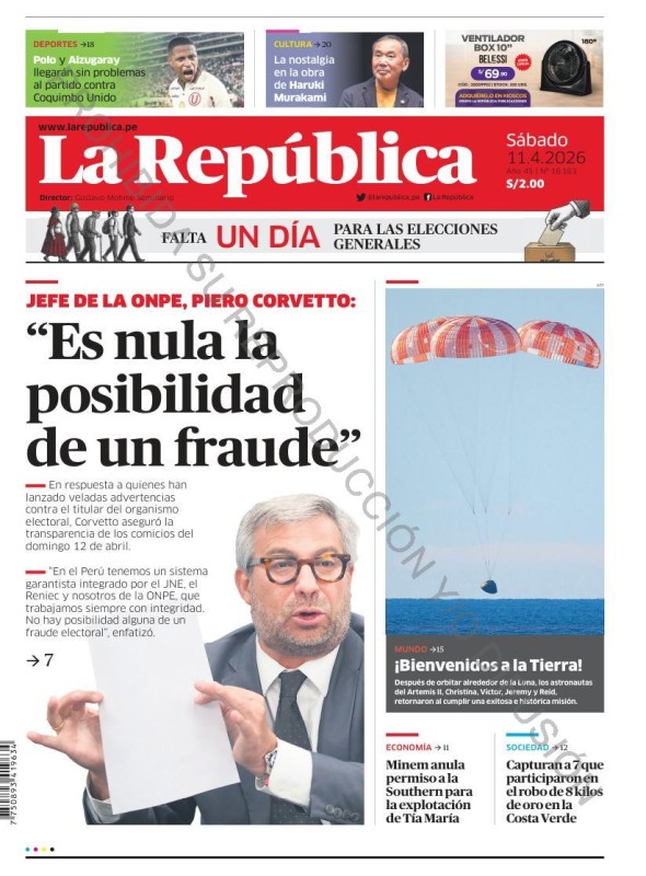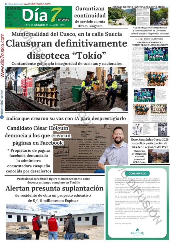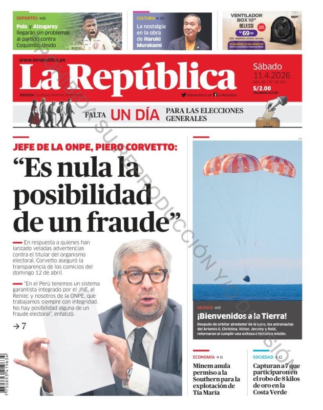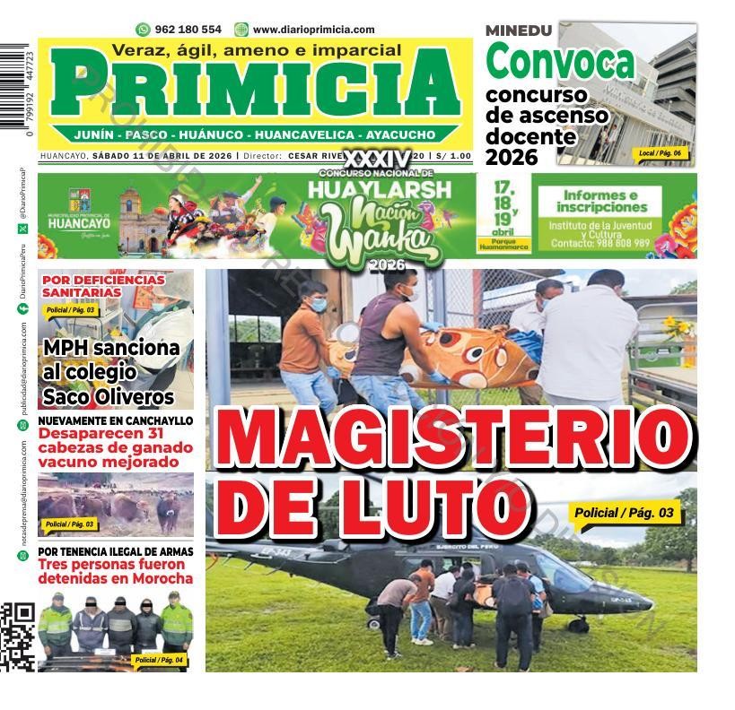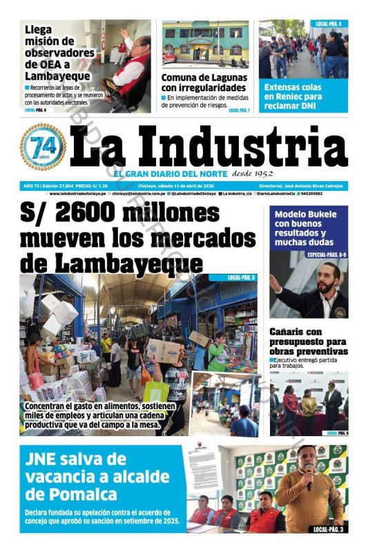 PORTADAS DE PRINCIPALES DIARIOS NACIONALES Y REGIONALES – SÁBADO 11 DE ABRIL DE 2026