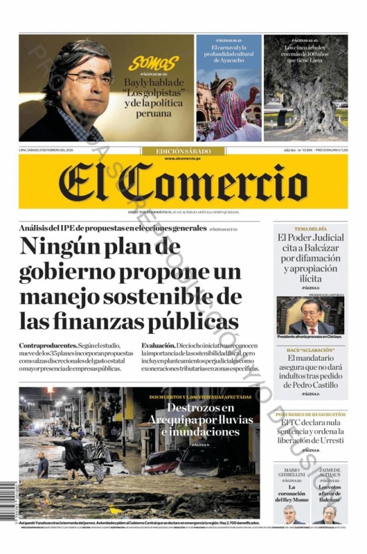 PORTADAS DE PRINCIPALES DIARIOS NACIONALES Y REGIONALES – JUEVES 19 DE FEBRERO 2026