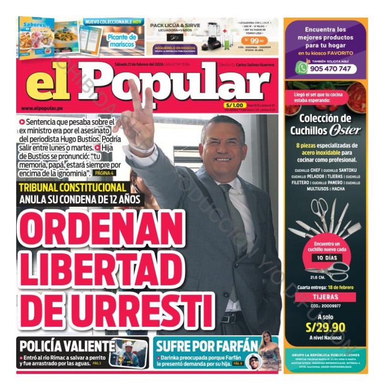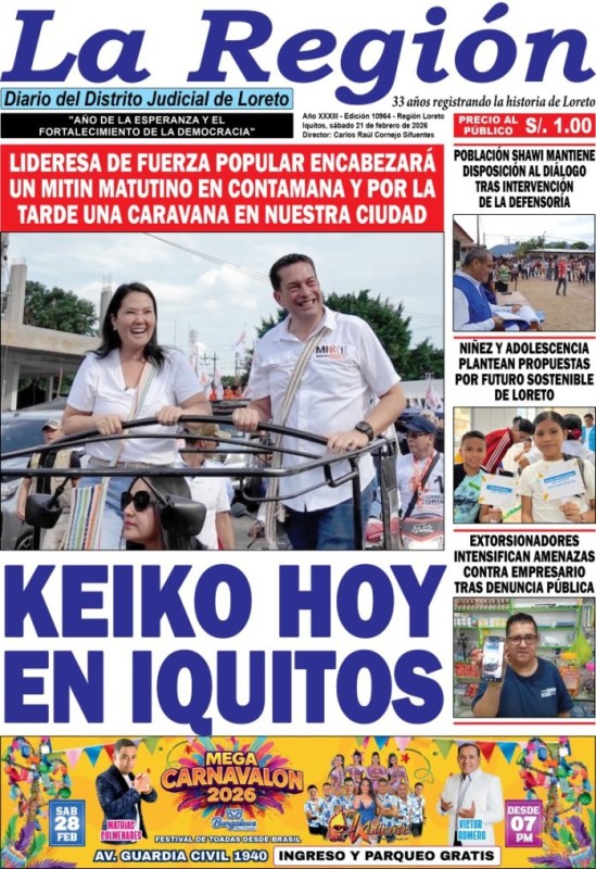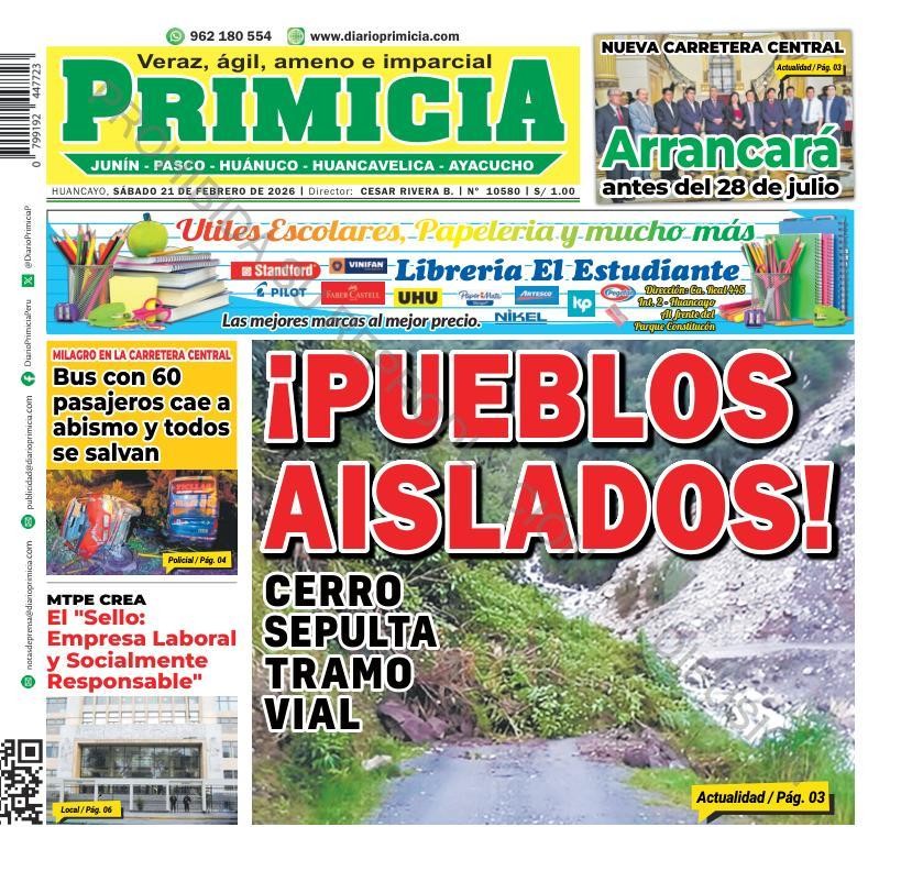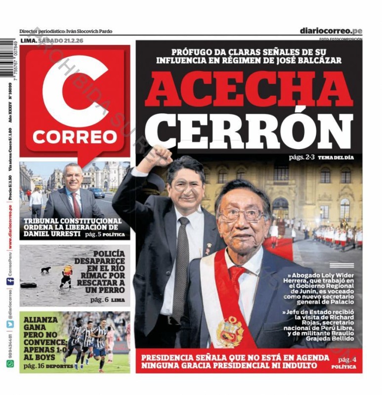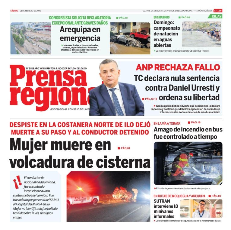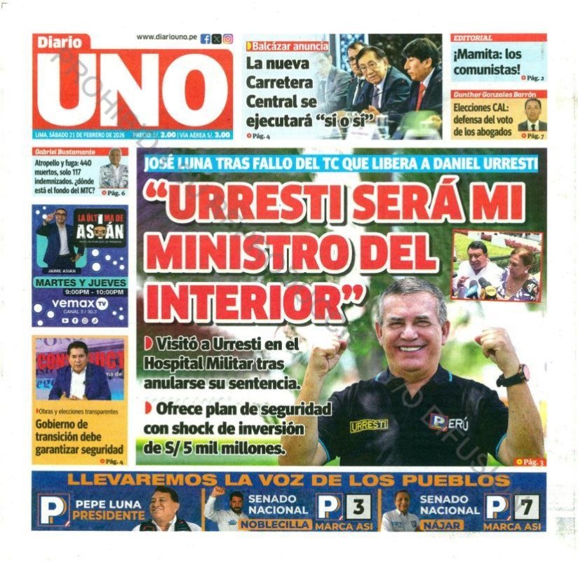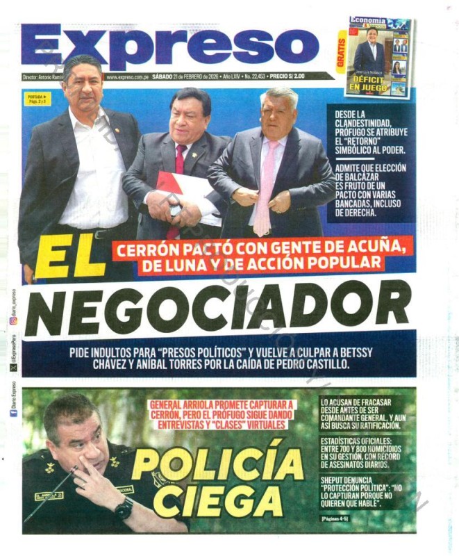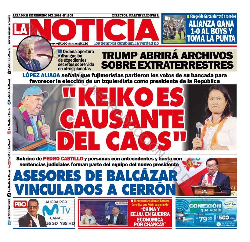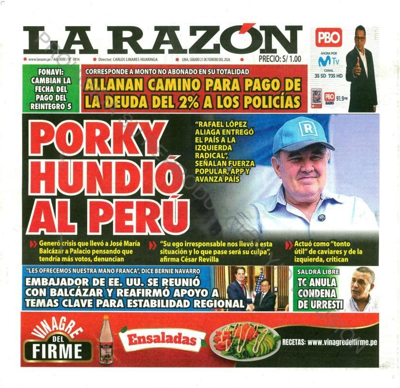PORTADAS DE PRINCIPALES DIARIOS NACIONALES Y REGIONALES – SÁBADO 21 DE FEBRERO 2026