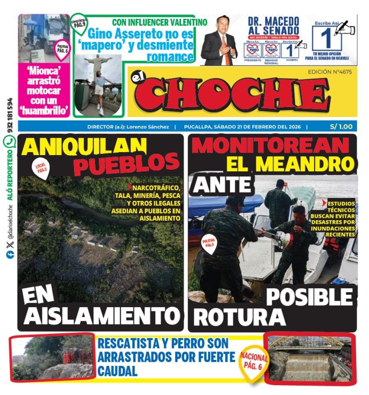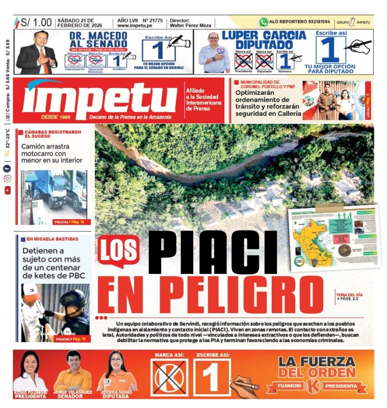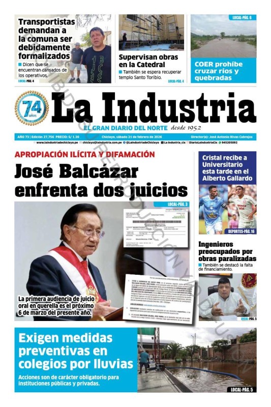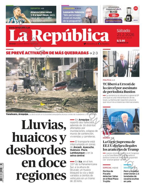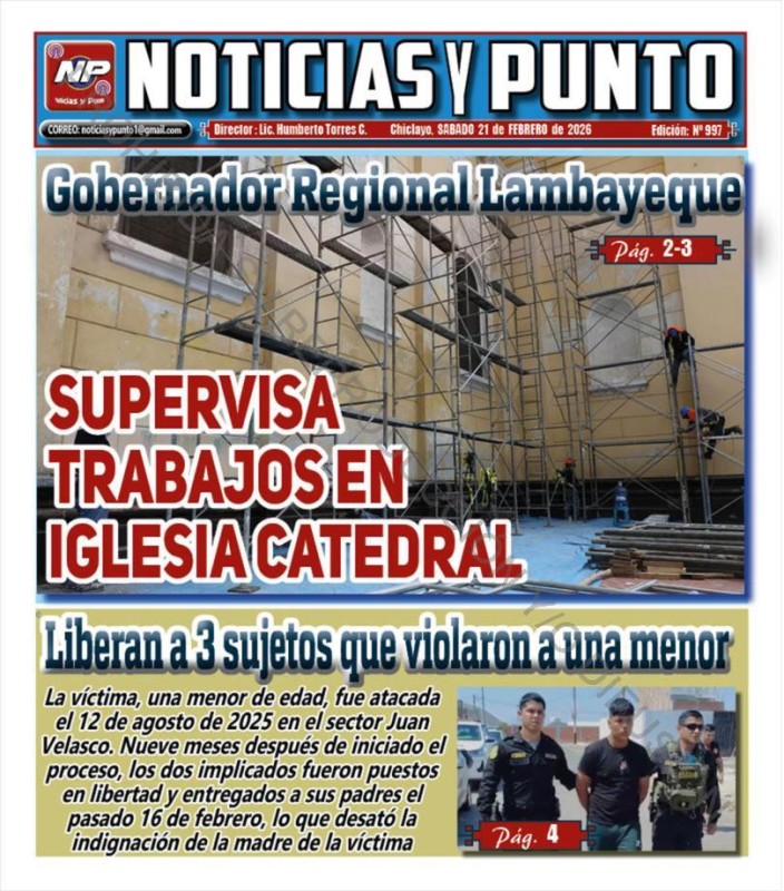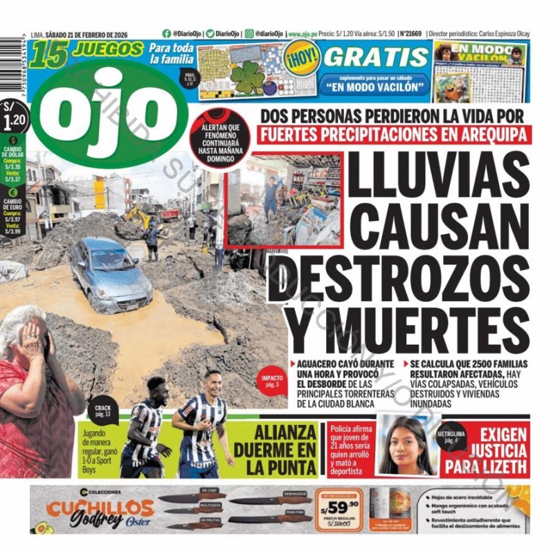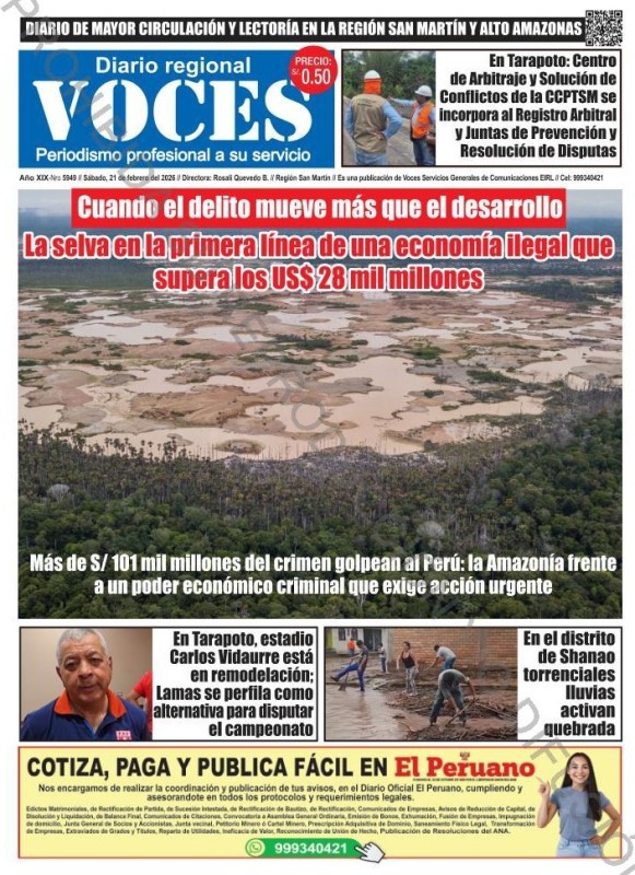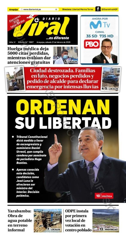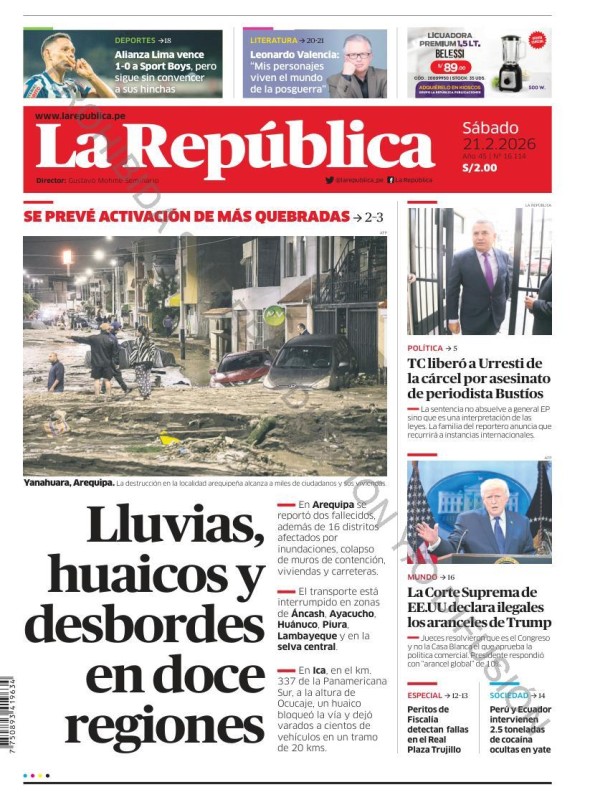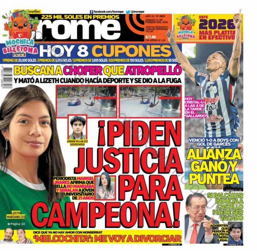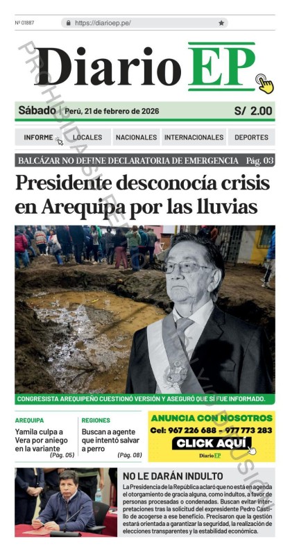 PORTADAS DE PRINCIPALES DIARIOS NACIONALES Y REGIONALES – SÁBADO 21 DE FEBRERO 2026