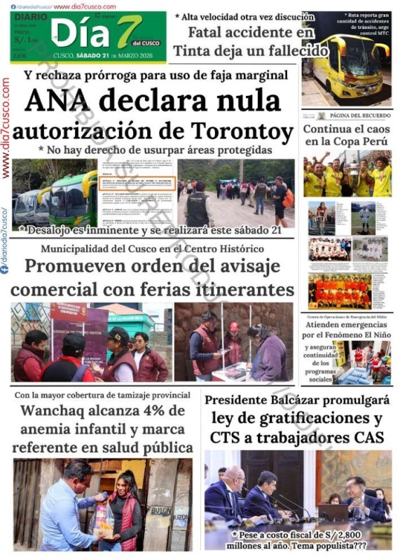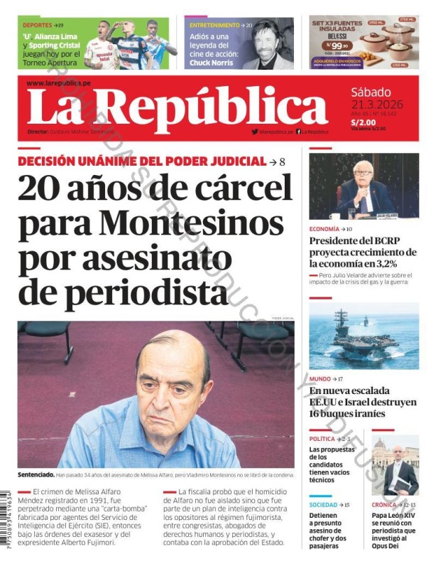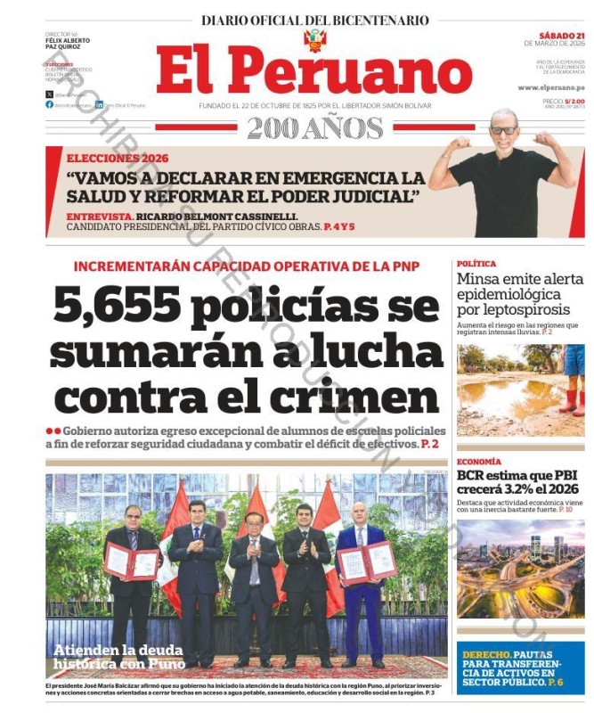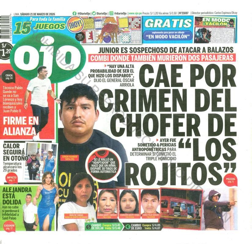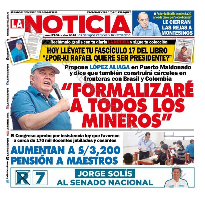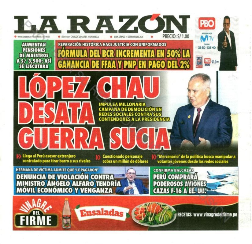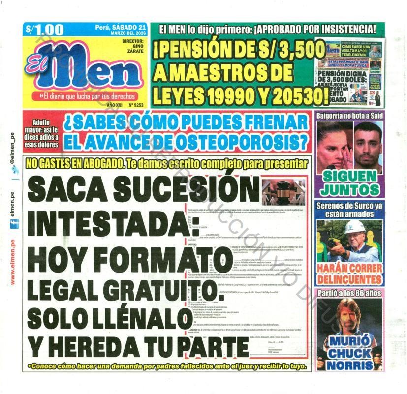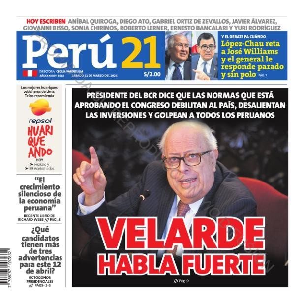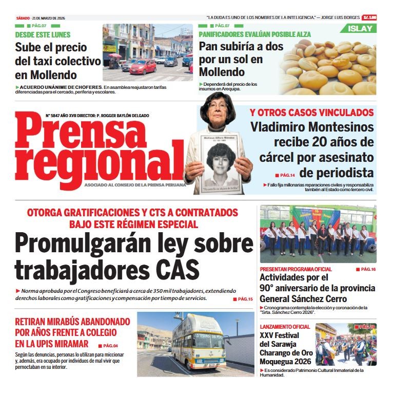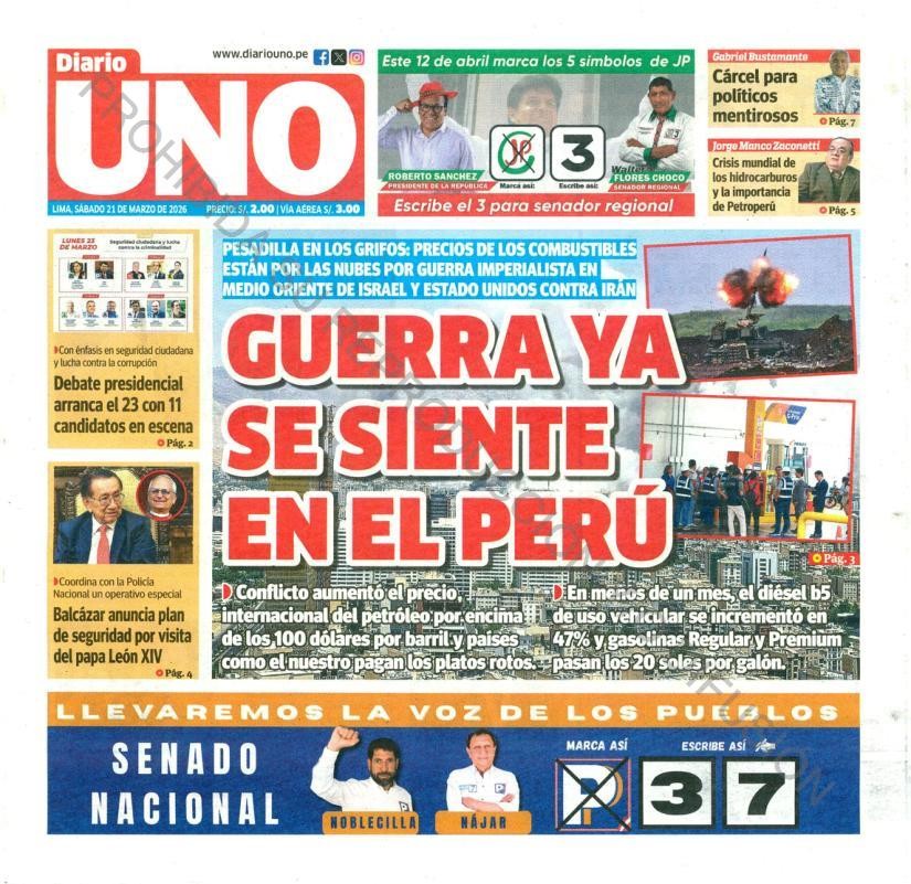 PORTADAS DE PRINCIPALES DIARIOS NACIONALES Y REGIONALES – SÁBADO 21 DE MARZO DE 2026