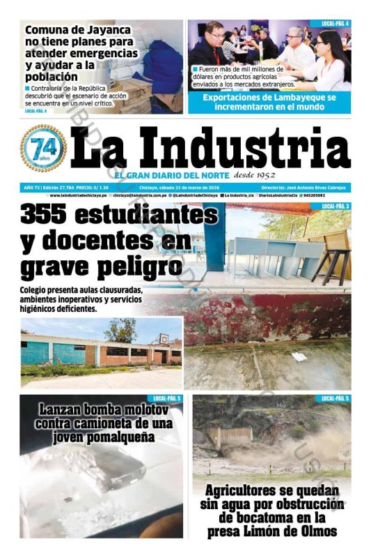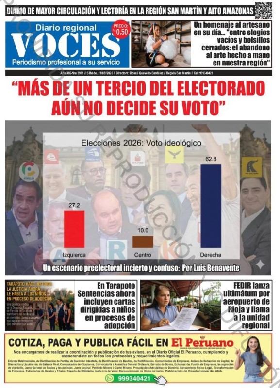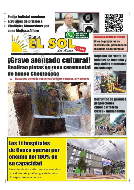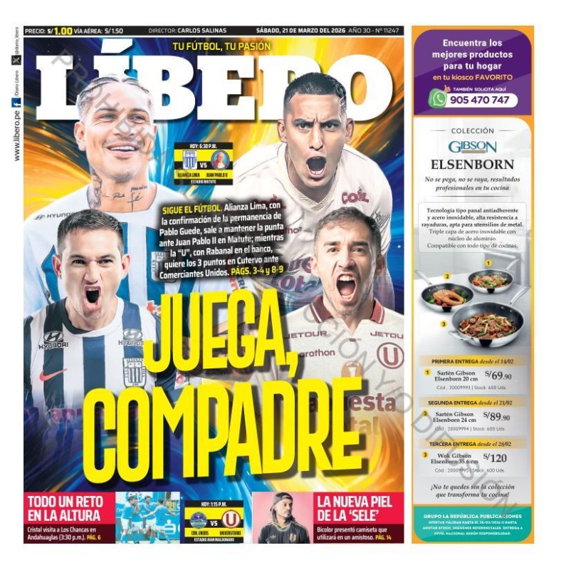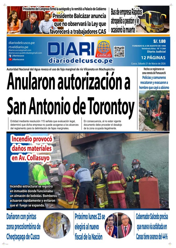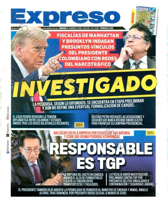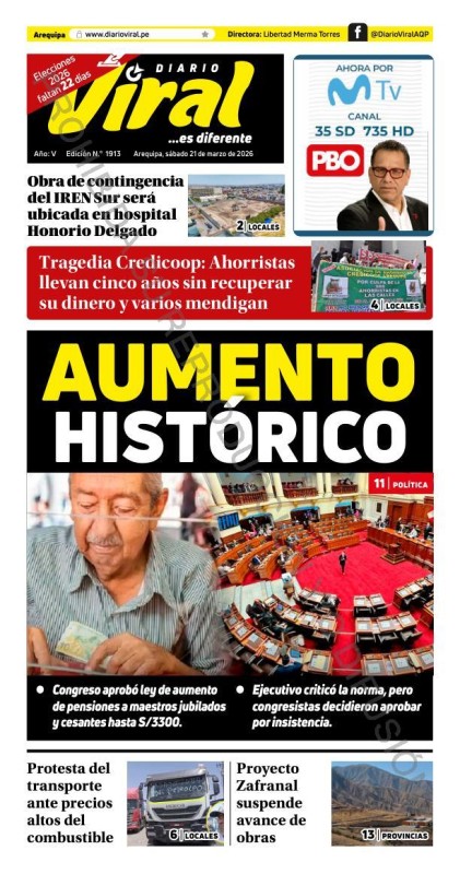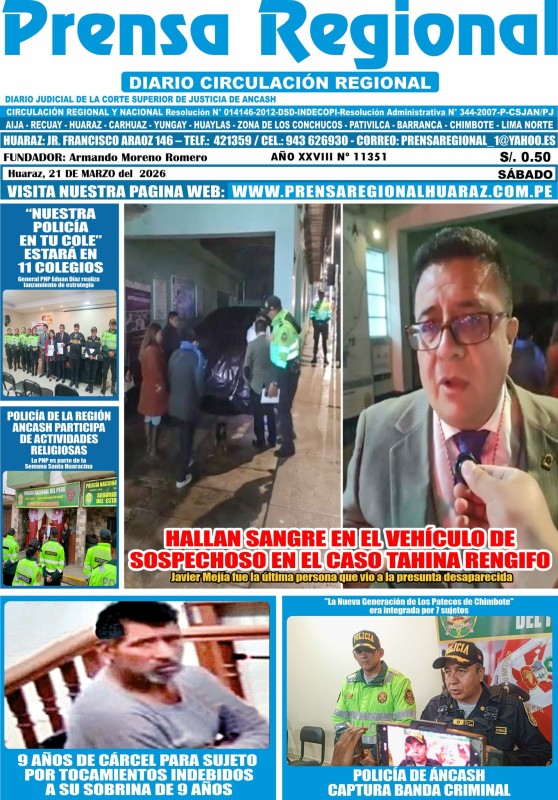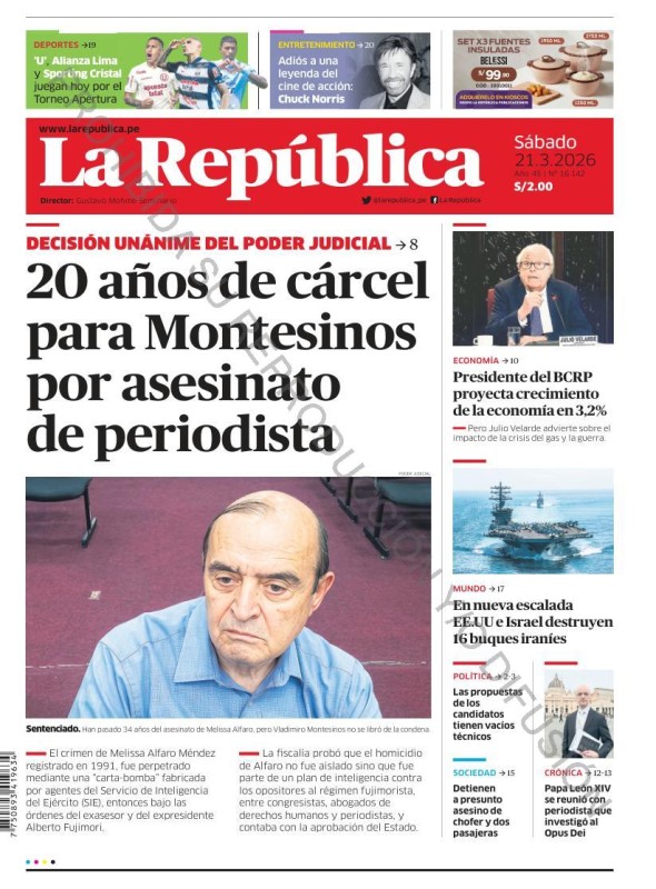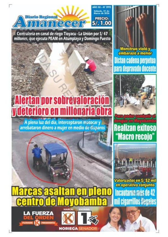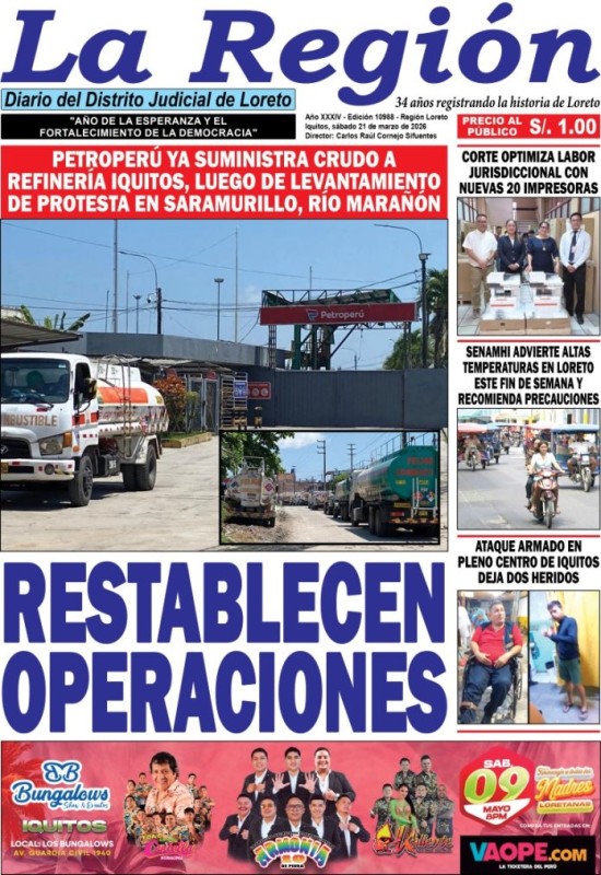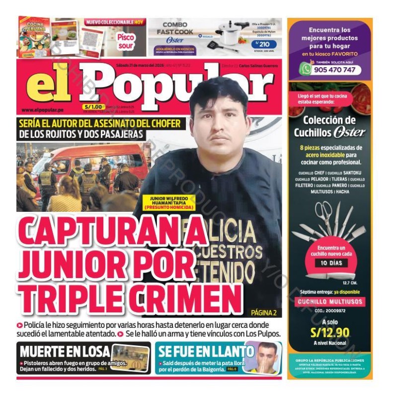 PORTADAS DE PRINCIPALES DIARIOS NACIONALES Y REGIONALES – SÁBADO 21 DE MARZO DE 2026