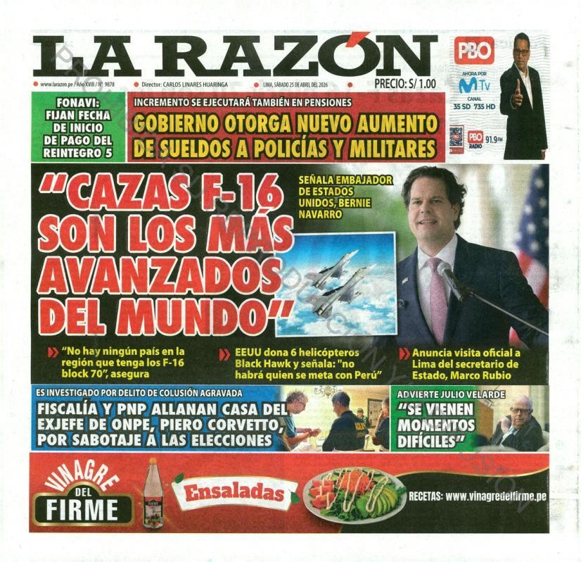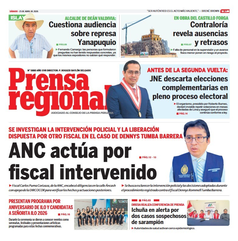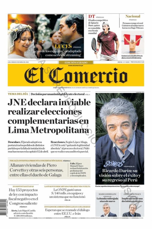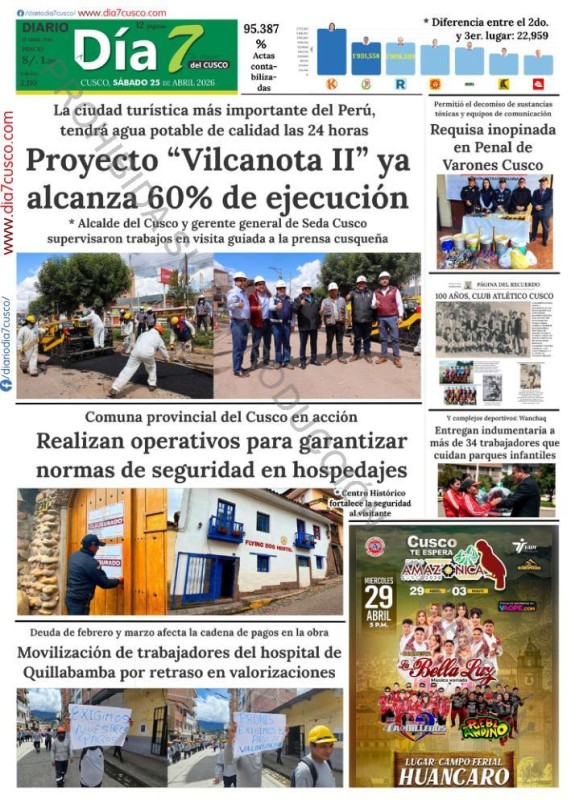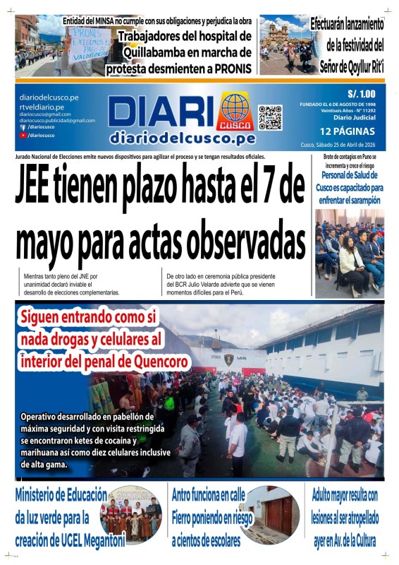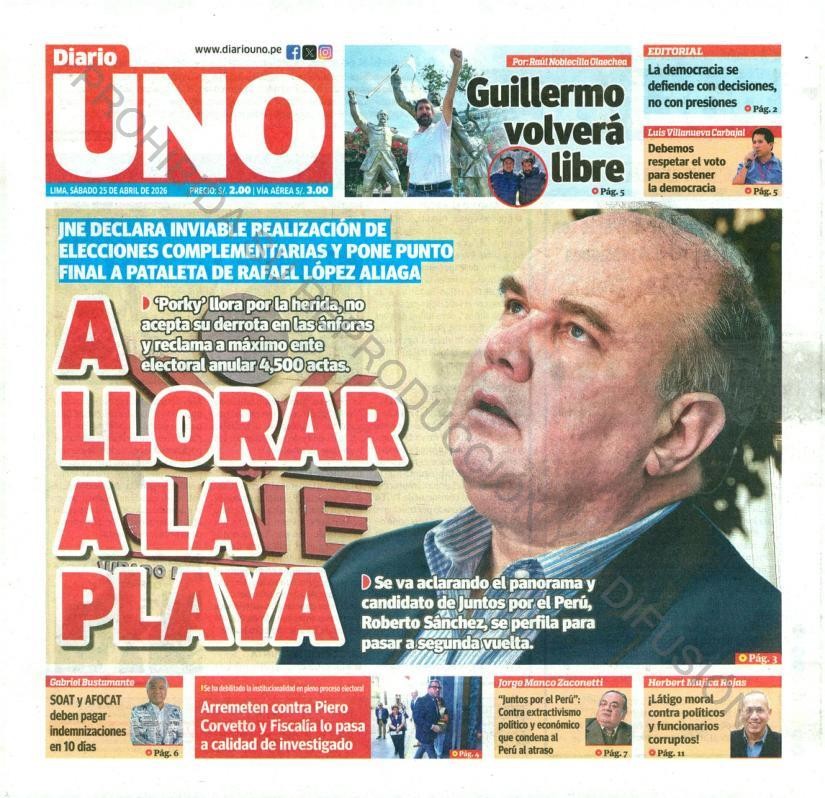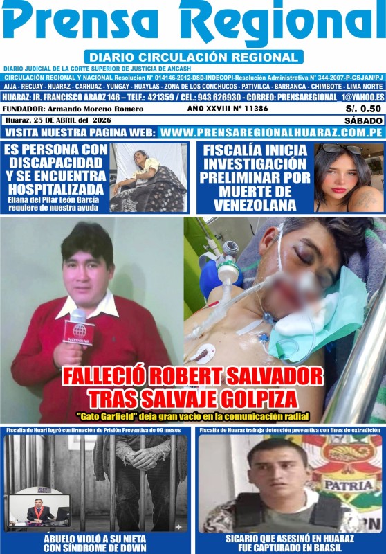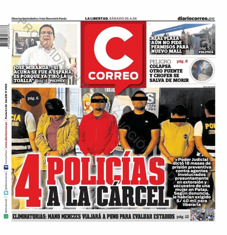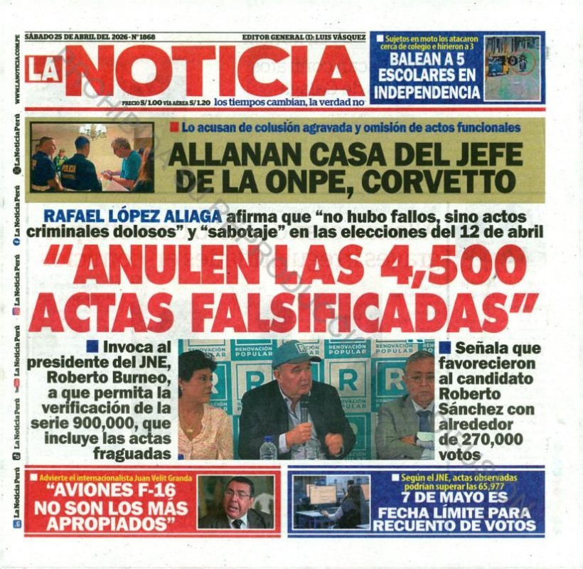 PORTADAS DE PRINCIPALES DIARIOS NACIONALES Y REGIONALES – SÁBADO 25 DE ABRIL DE 2026