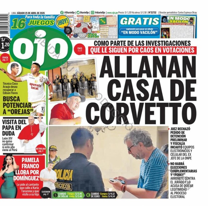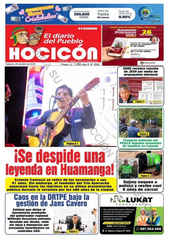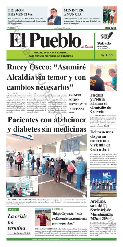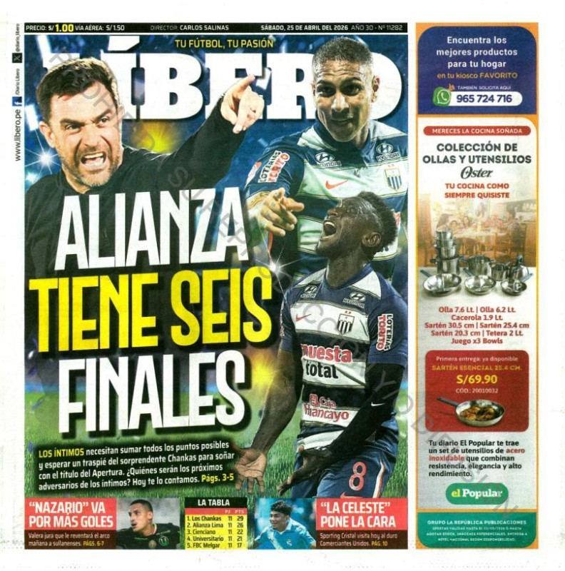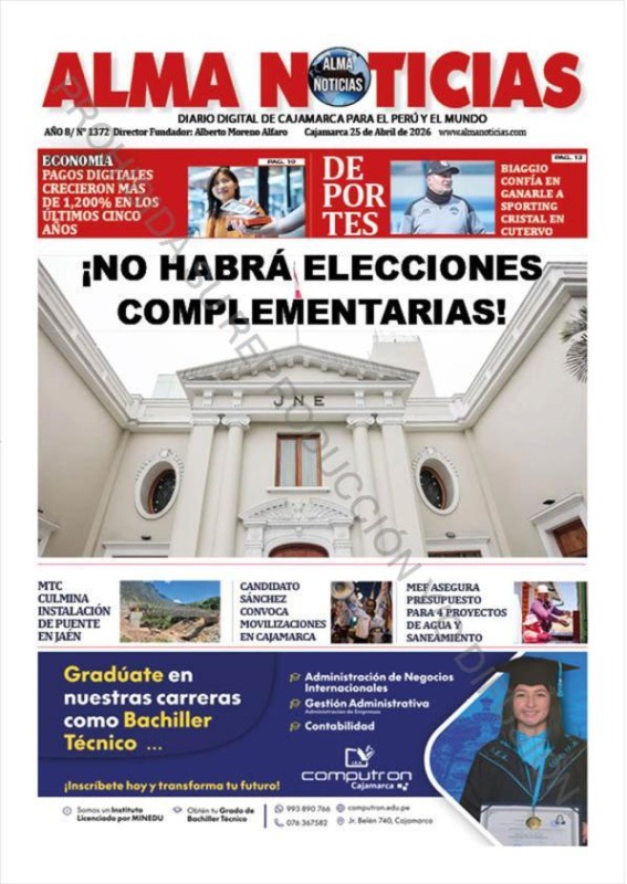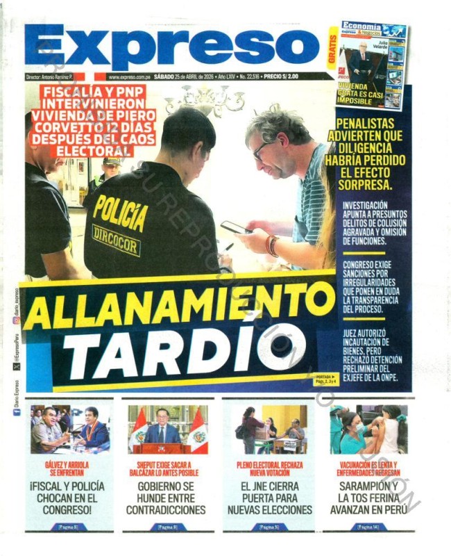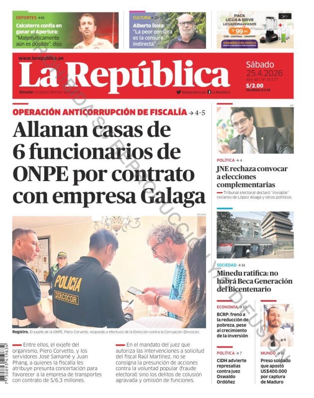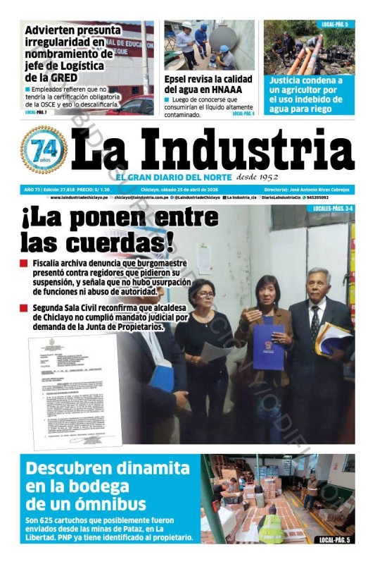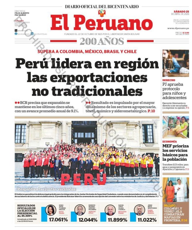 PORTADAS DE PRINCIPALES DIARIOS NACIONALES Y REGIONALES – SÁBADO 25 DE ABRIL DE 2026